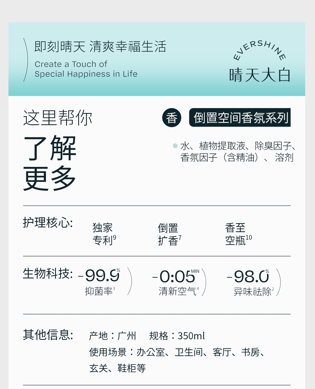 EVERSHINE倒置空间香氛# 专利倒置扩香,60天持久留香,5分钟除臭,98%异味去除率~ 99%除菌率【G】