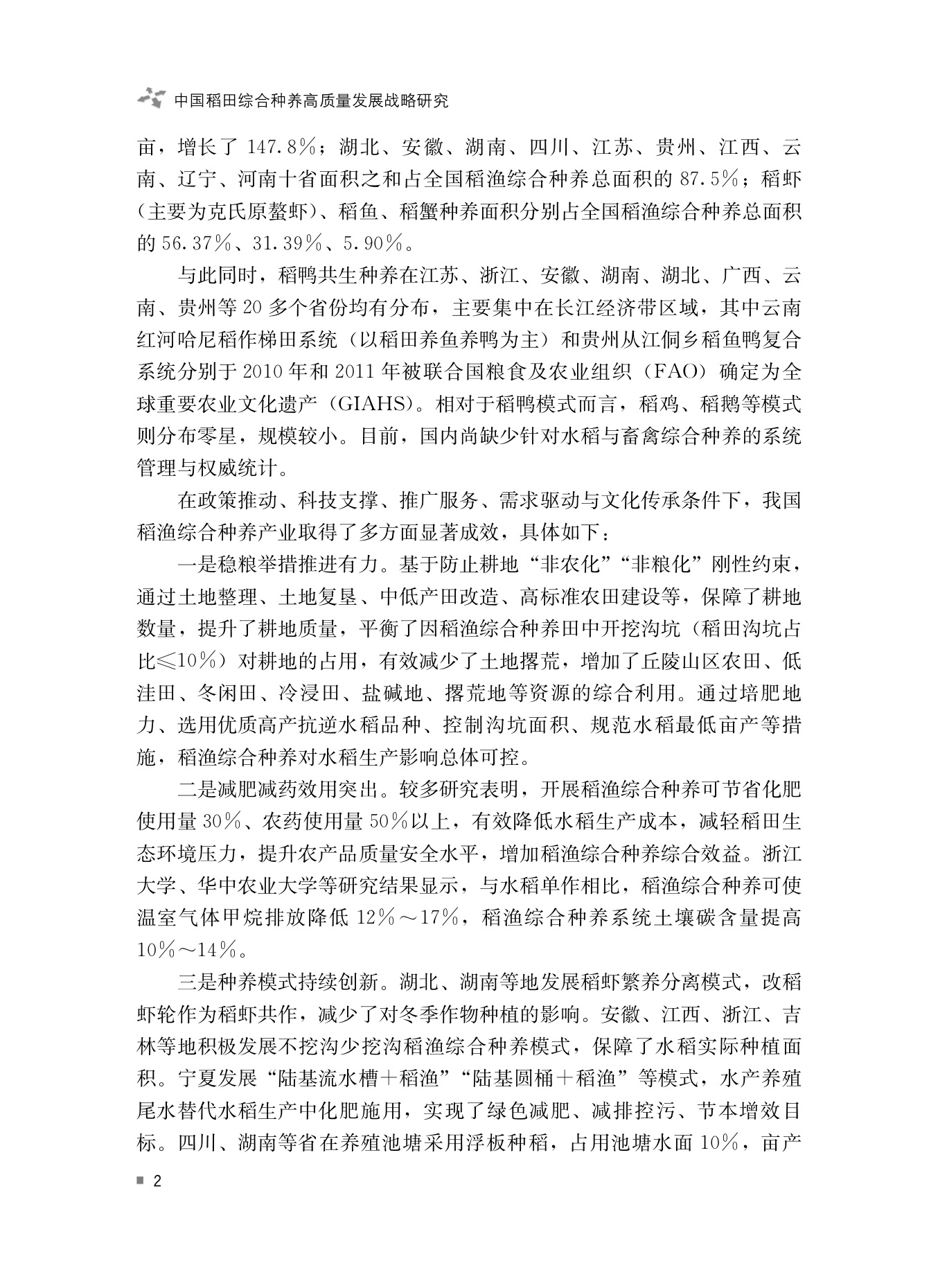 中国稻田综合种养高质量发展战略研究
