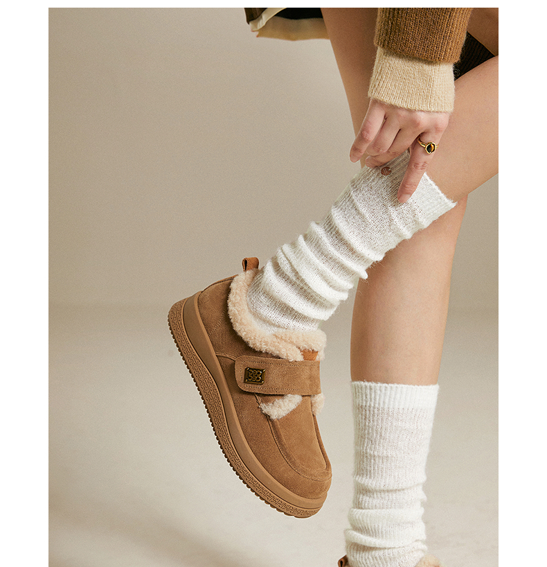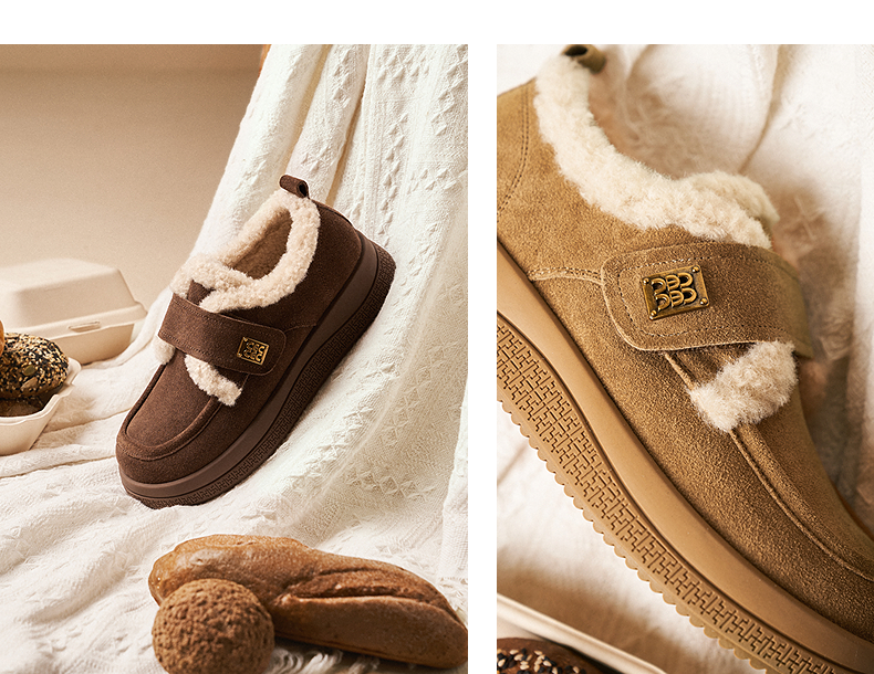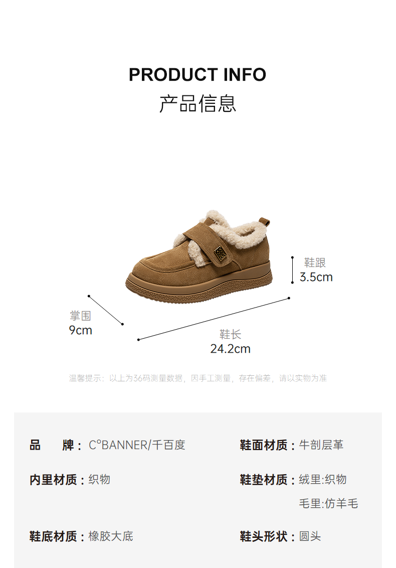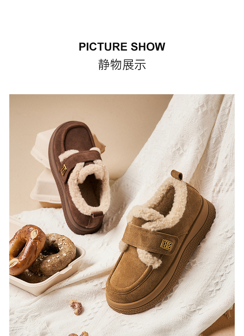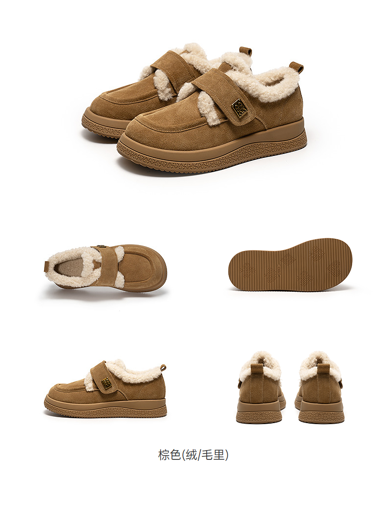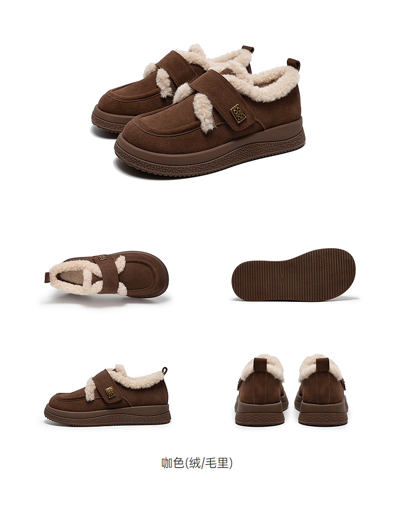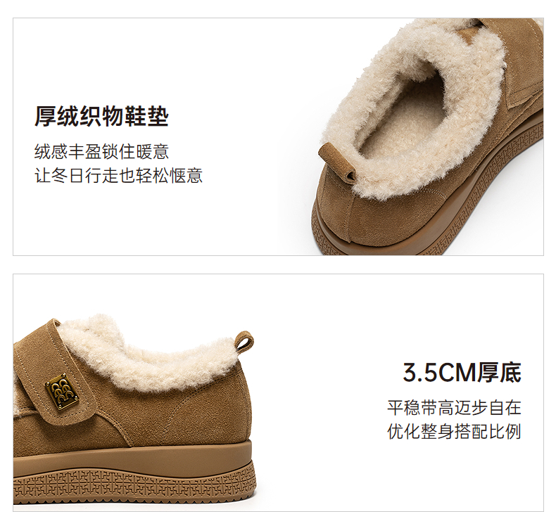 千百度厚底时尚雪地靴女加绒保暖休闲魔术贴暖暖短靴A25602118