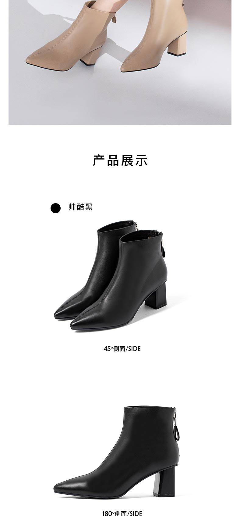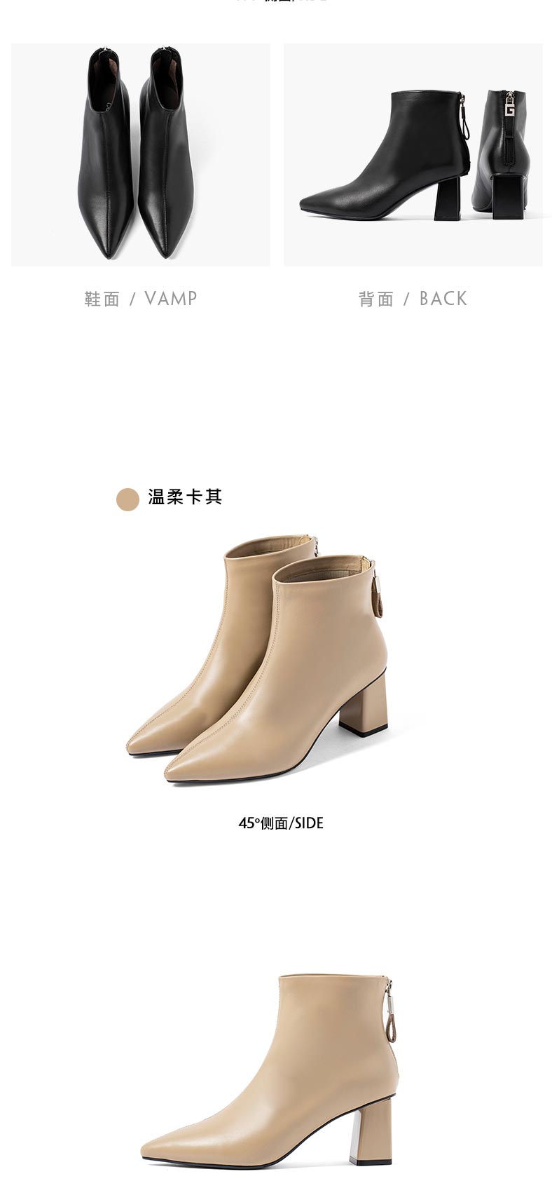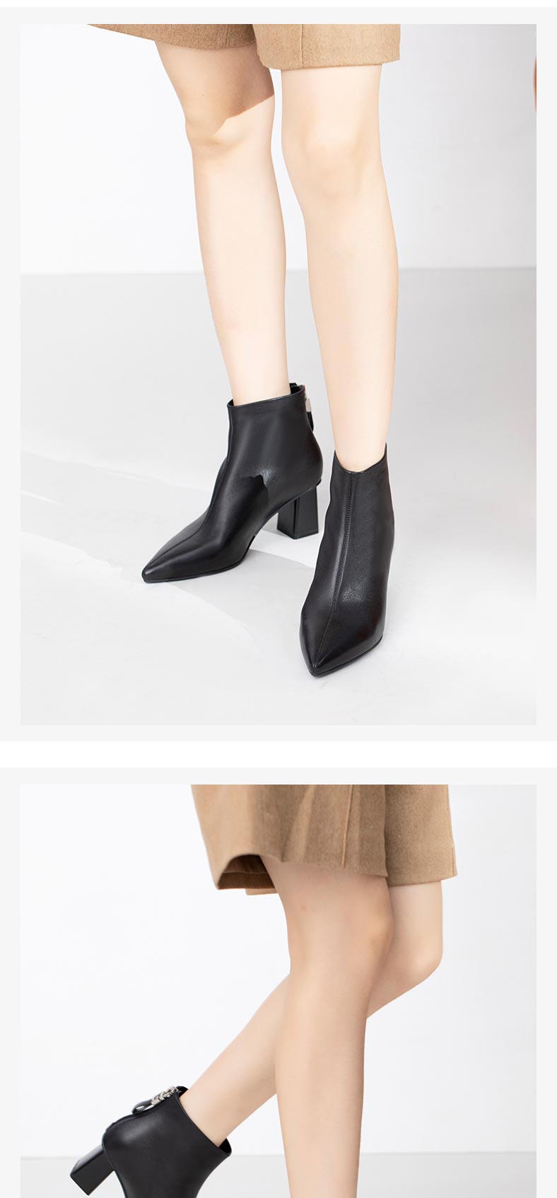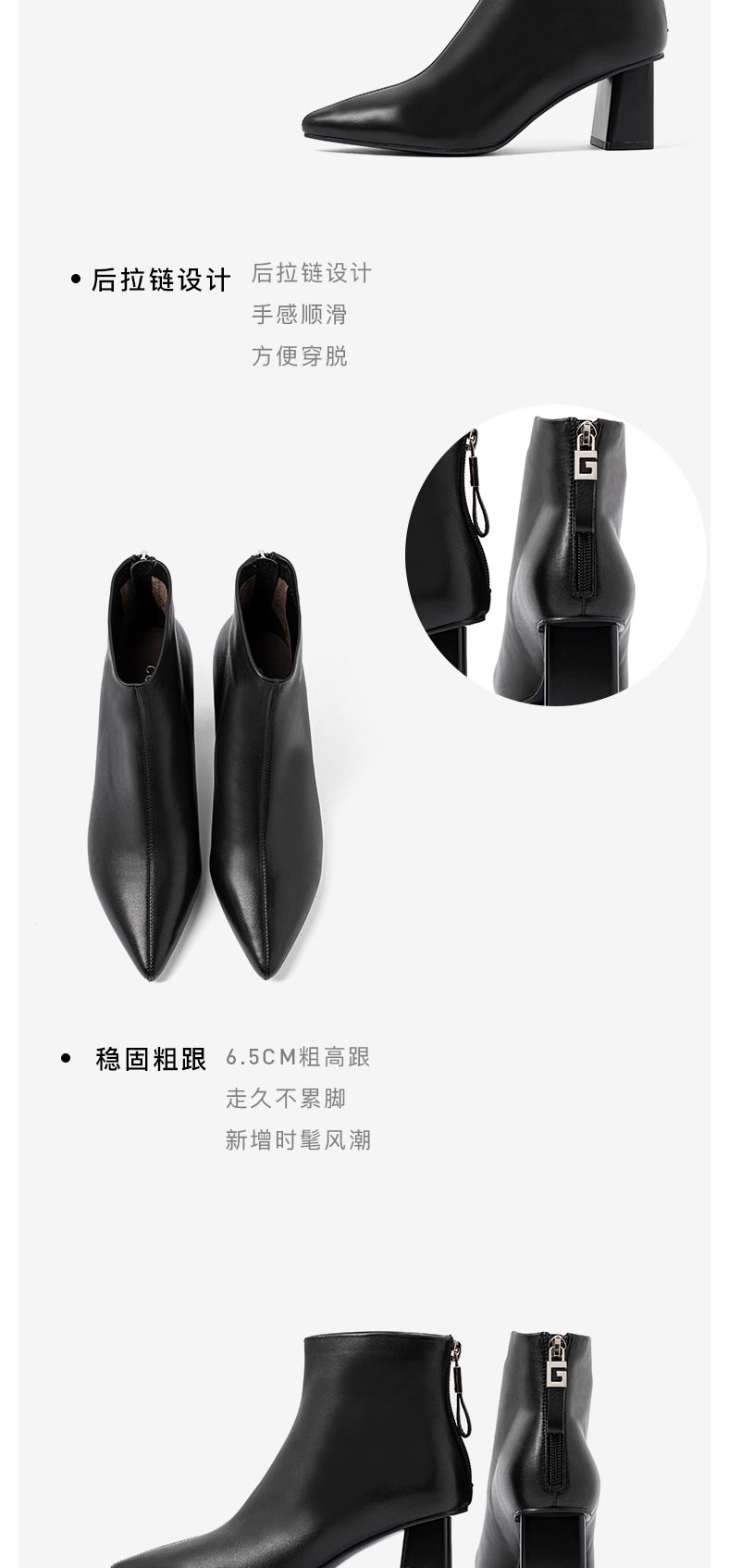 康莉2021年冬季新款时装靴女粗跟尖头羊皮短筒高跟瘦瘦靴 KYQ18522DU01DD1