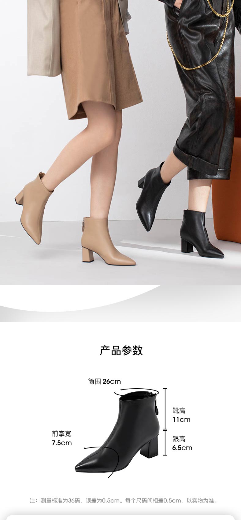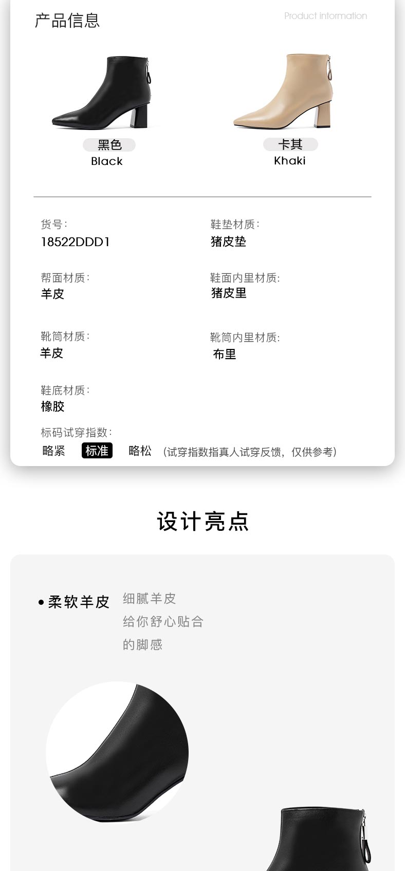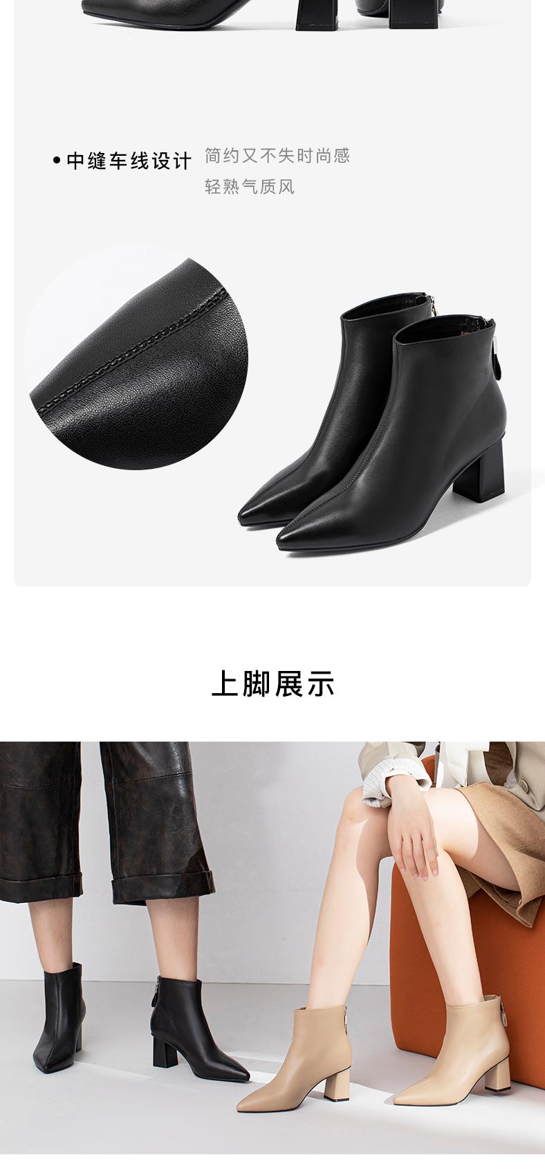 康莉2021年冬季新款时装靴女粗跟尖头羊皮短筒高跟瘦瘦靴 KYQ18522DU01DD1