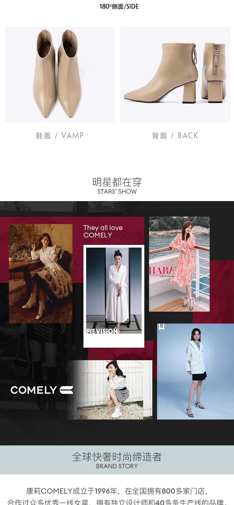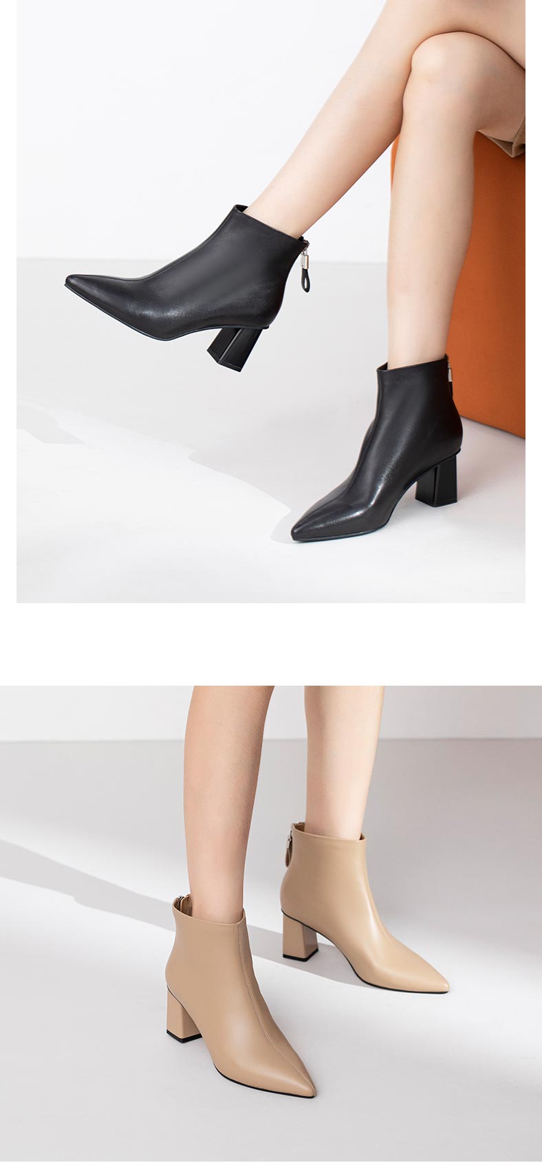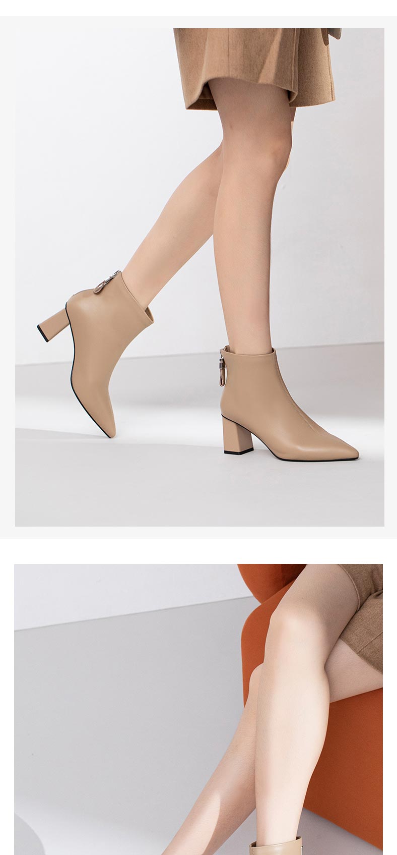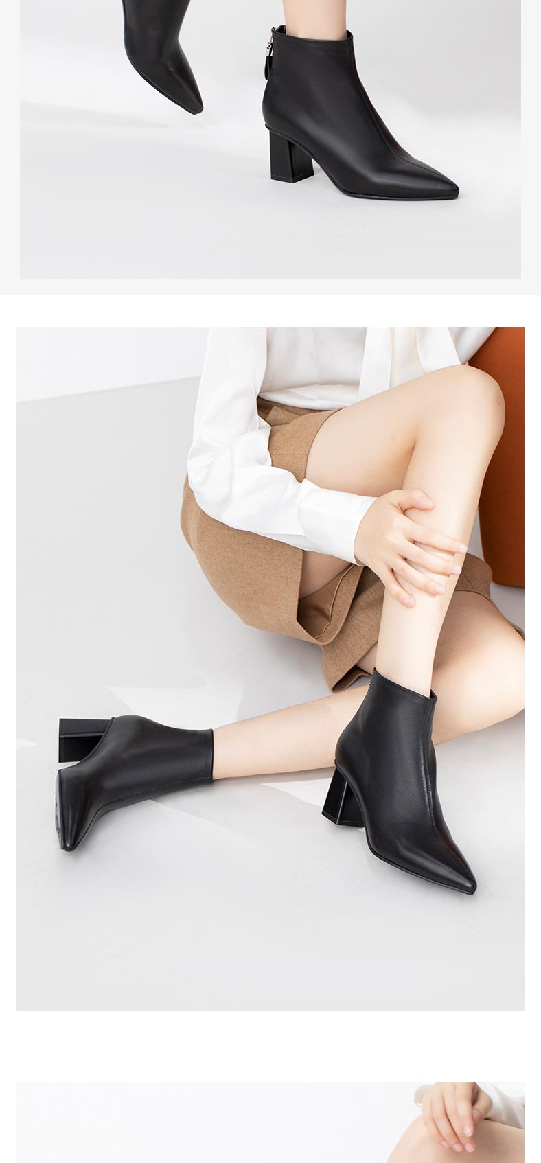 康莉2021年冬季新款时装靴女粗跟尖头羊皮短筒高跟瘦瘦靴 KYQ18522DU01DD1