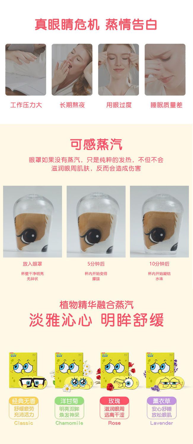 萱草海绵宝宝蒸汽眼罩睡眠男女遮光睡觉发热敷眼贴护眼缓解眼疲劳