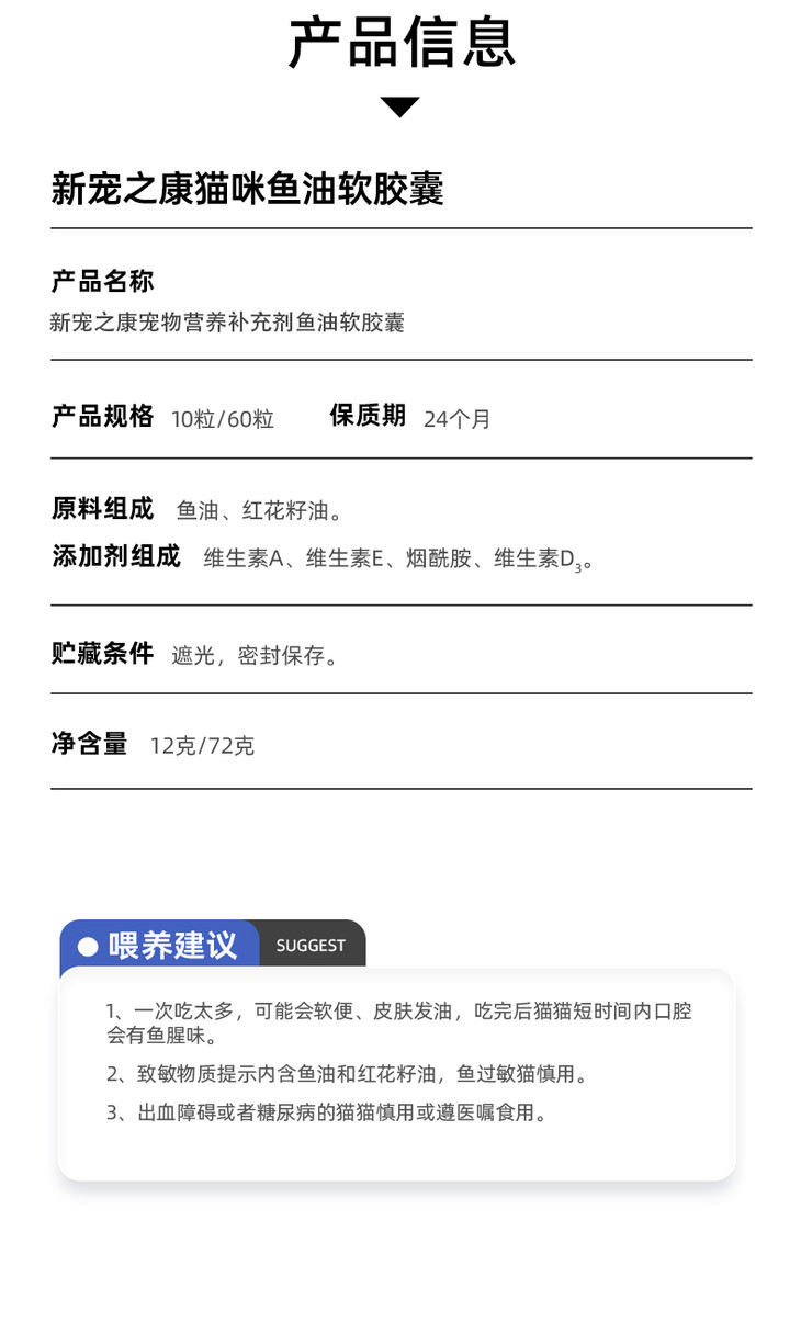 新宠之康 深海鱼油犬猫通用 60粒 美毛护肤