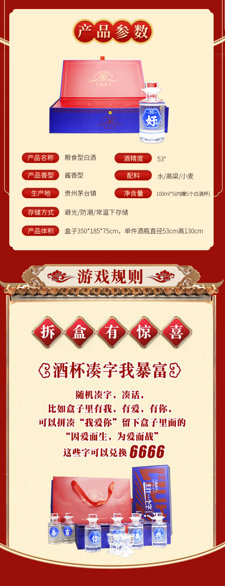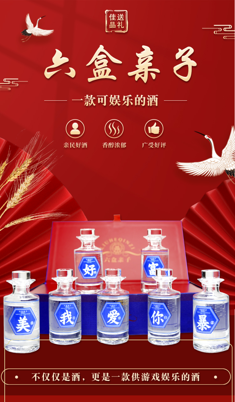 六盒亲子主打一个字盲盒酒 酱香型53度茅台镇粮食酒100ml*5盒