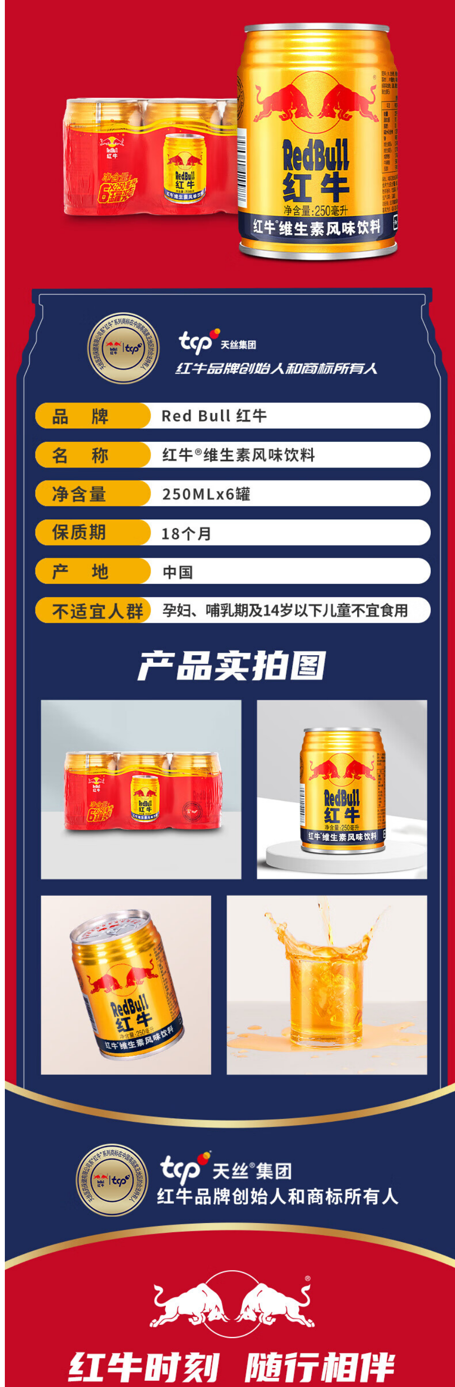 红牛维生素风味饮料 250ml*6罐 国产 运动能量饮品 100044098167