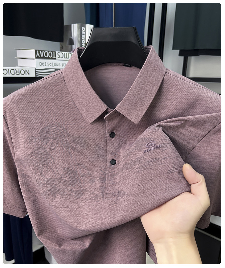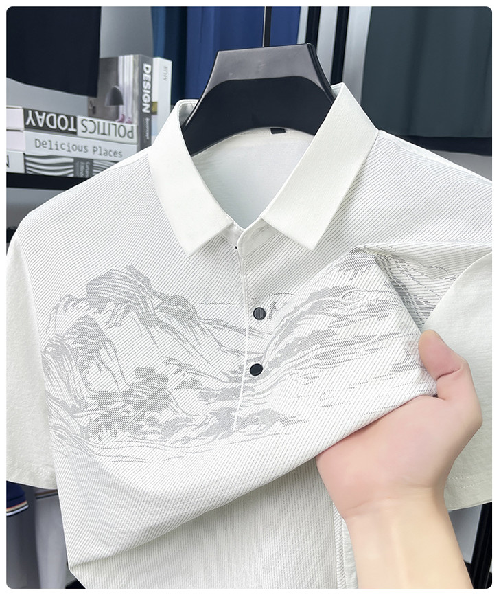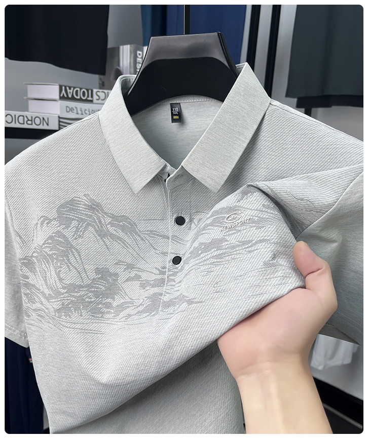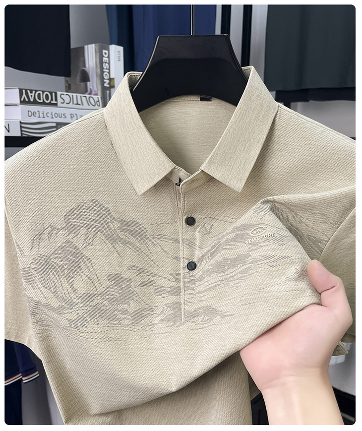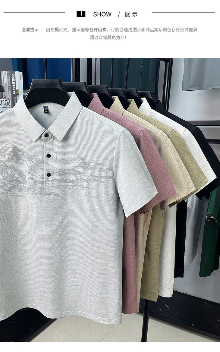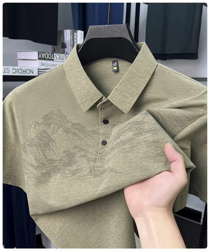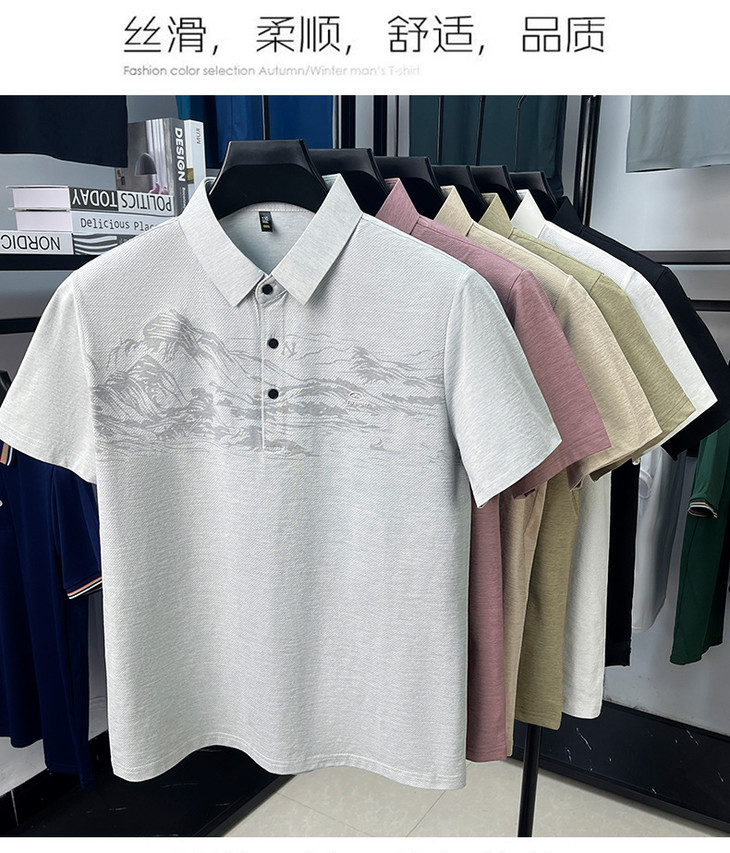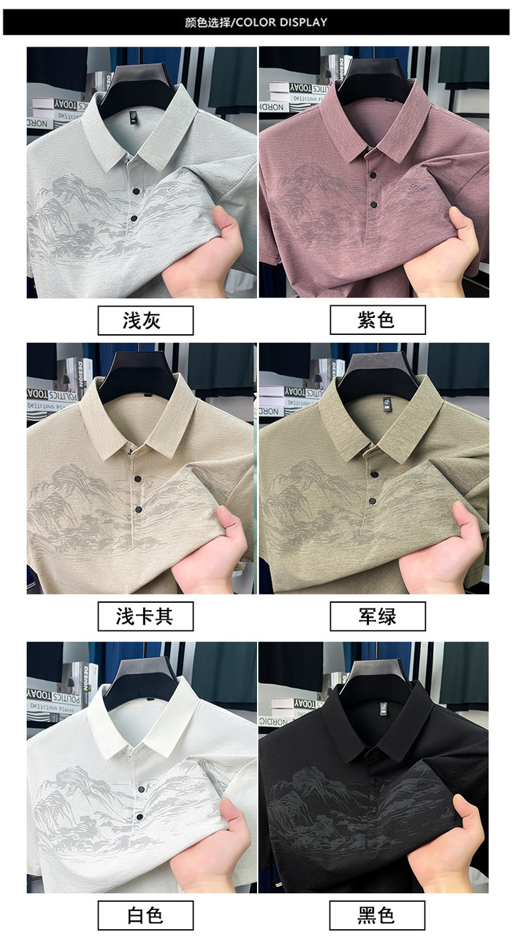 【夏季新款冰丝Polo衫短袖】男t恤国风潮流时尚翻领薄款宽松男士t恤