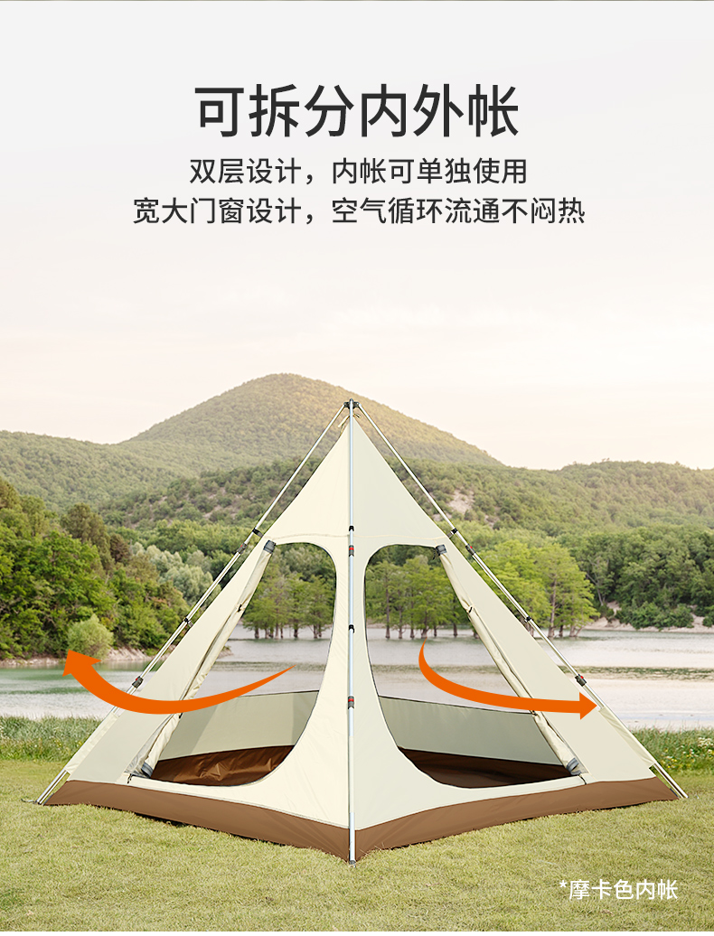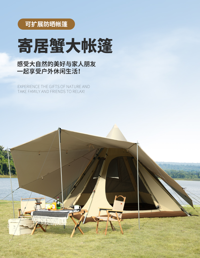 【寄居蟹】骆驼户外精致露营防晒挡雨防蚊印第安金字塔野营帐篷 1J32261161