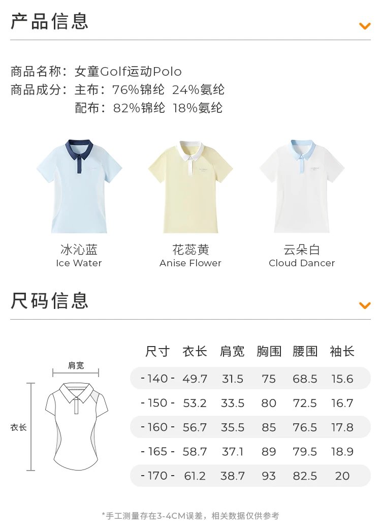 【24年夏新品】【高尔夫系列】moodytiger女童运动polo衫24年春新款拼接透气上衣41214105