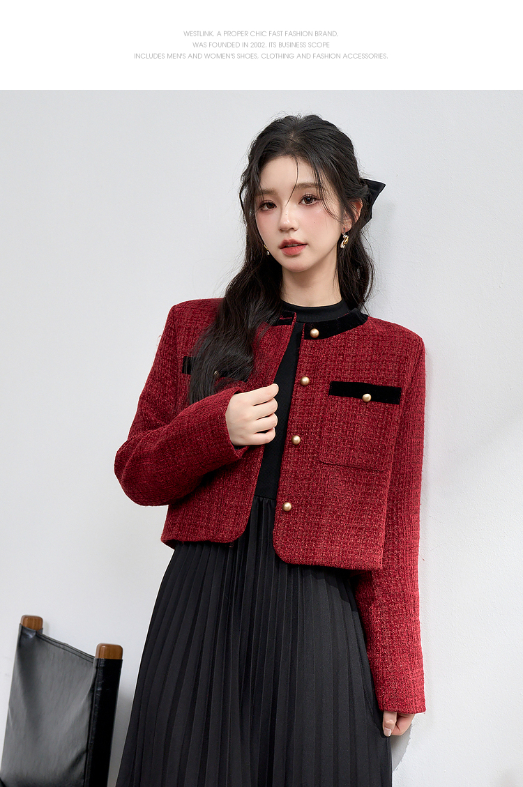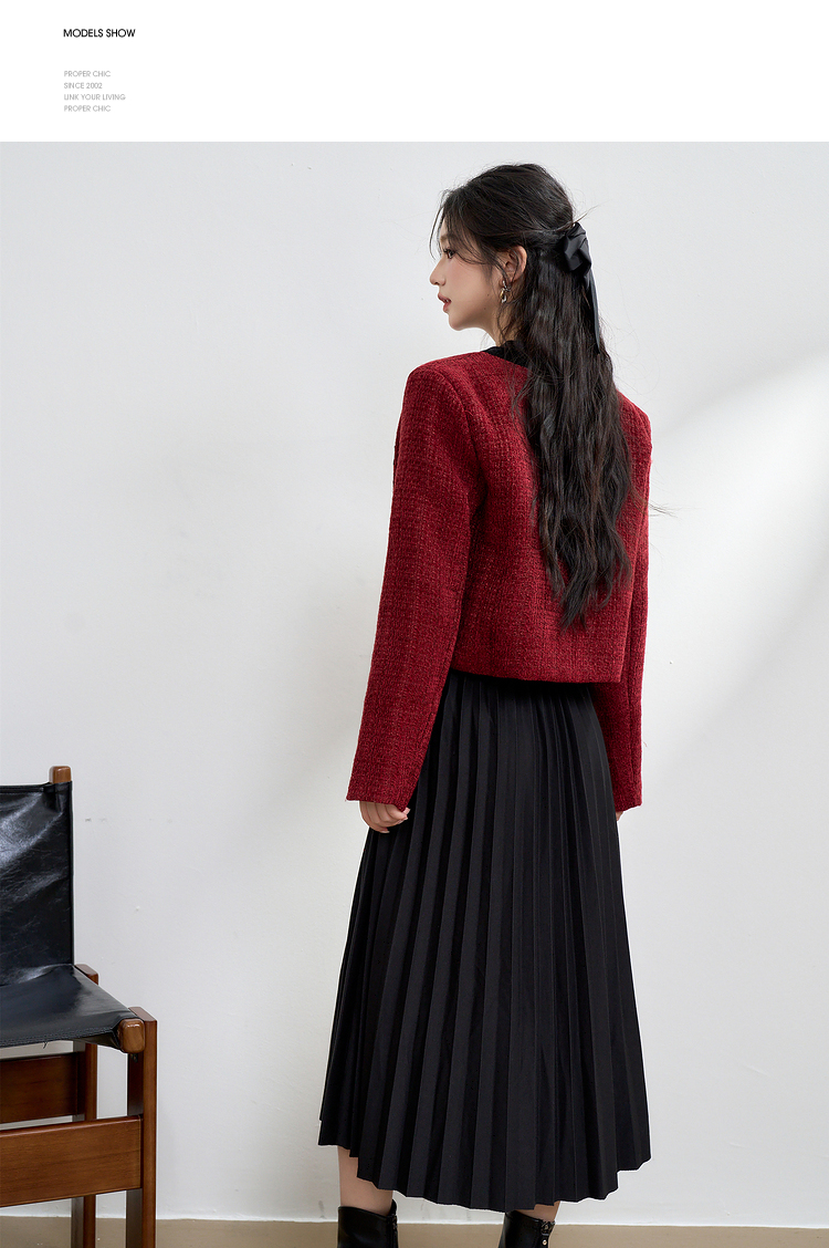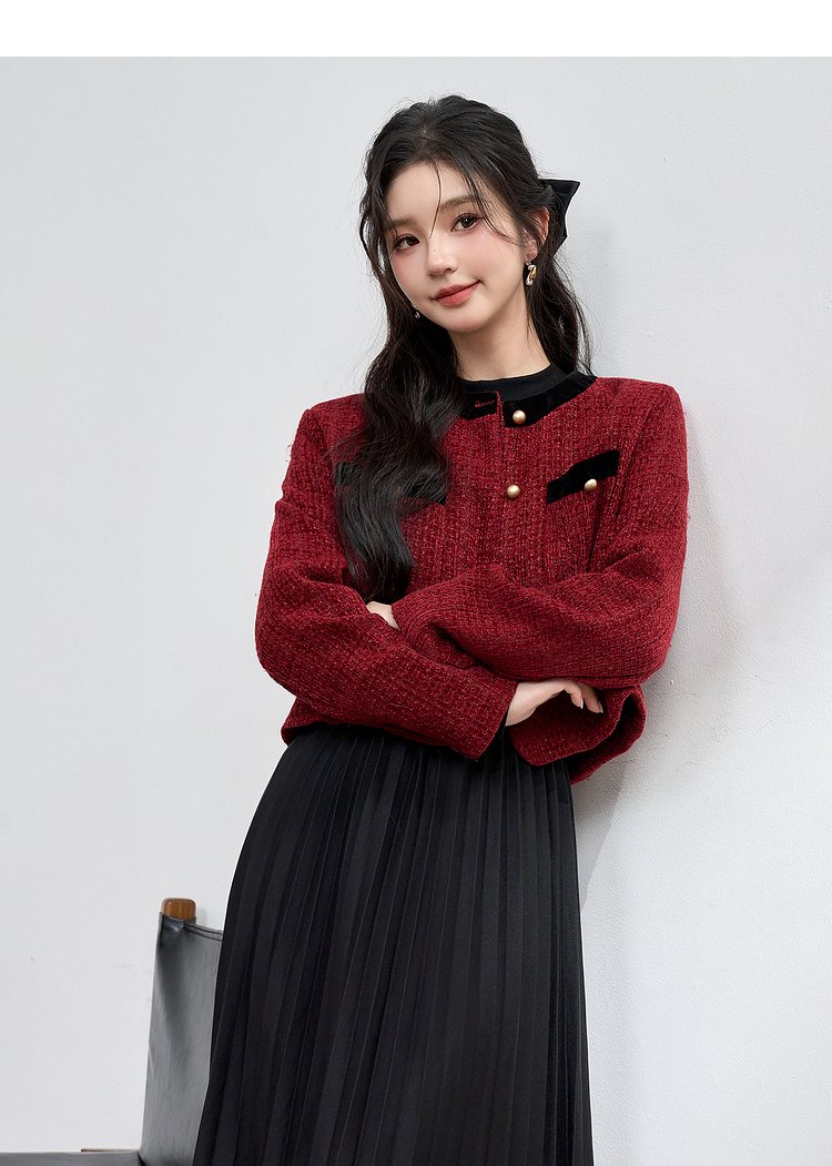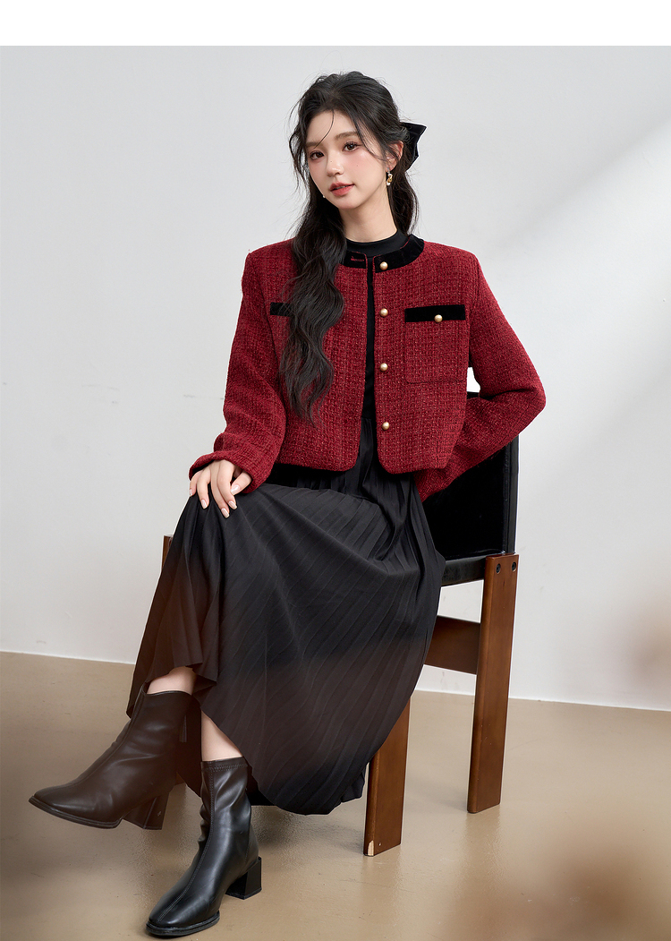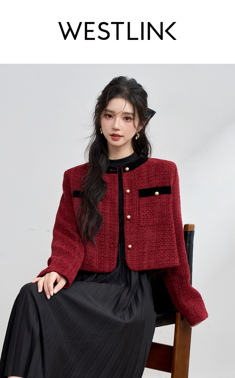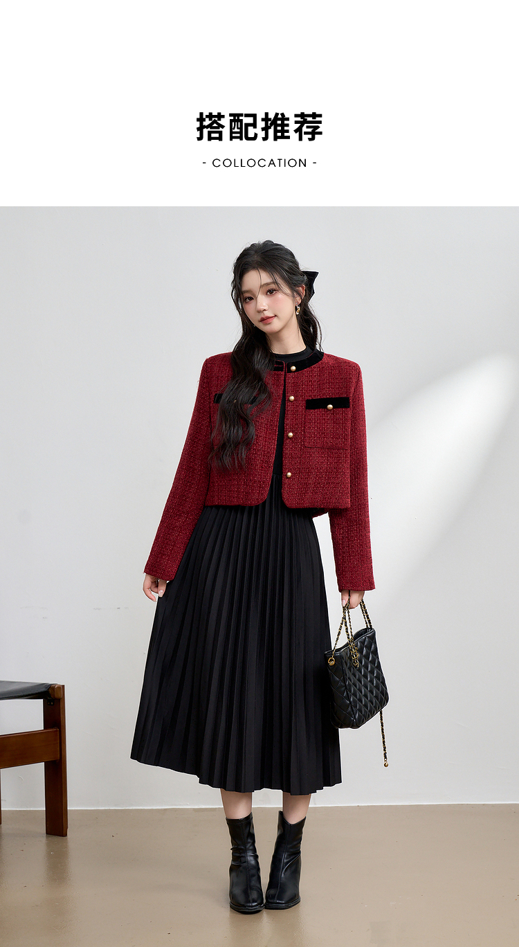 西遇法式千金洋气红色套装女早春赫本风黑色长裙小香风两件套M0043161/V0044180