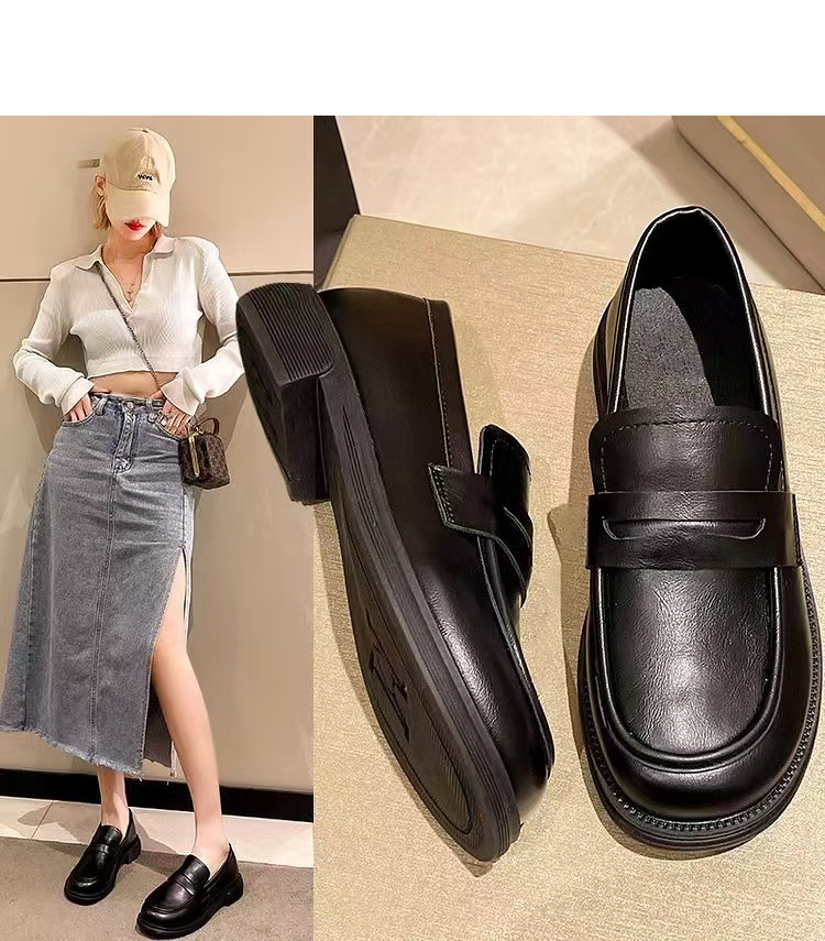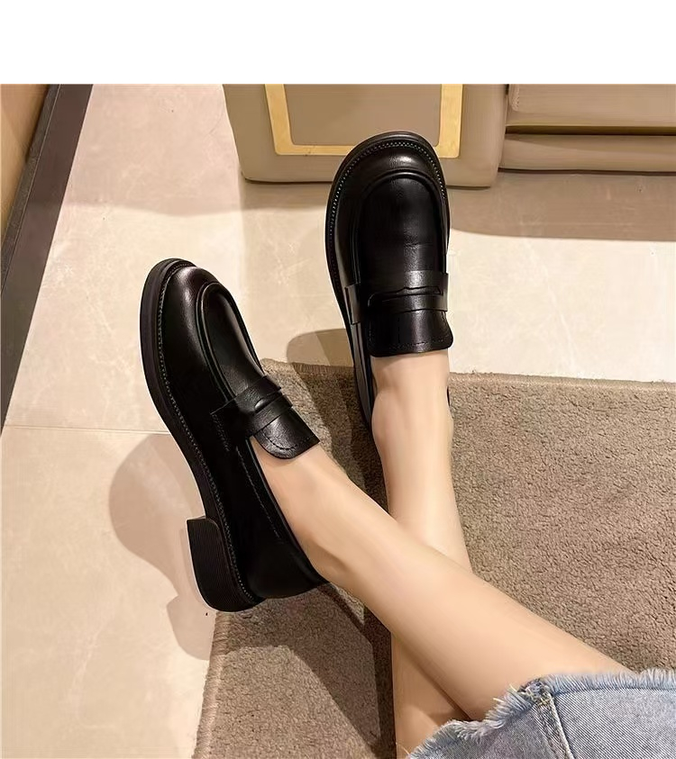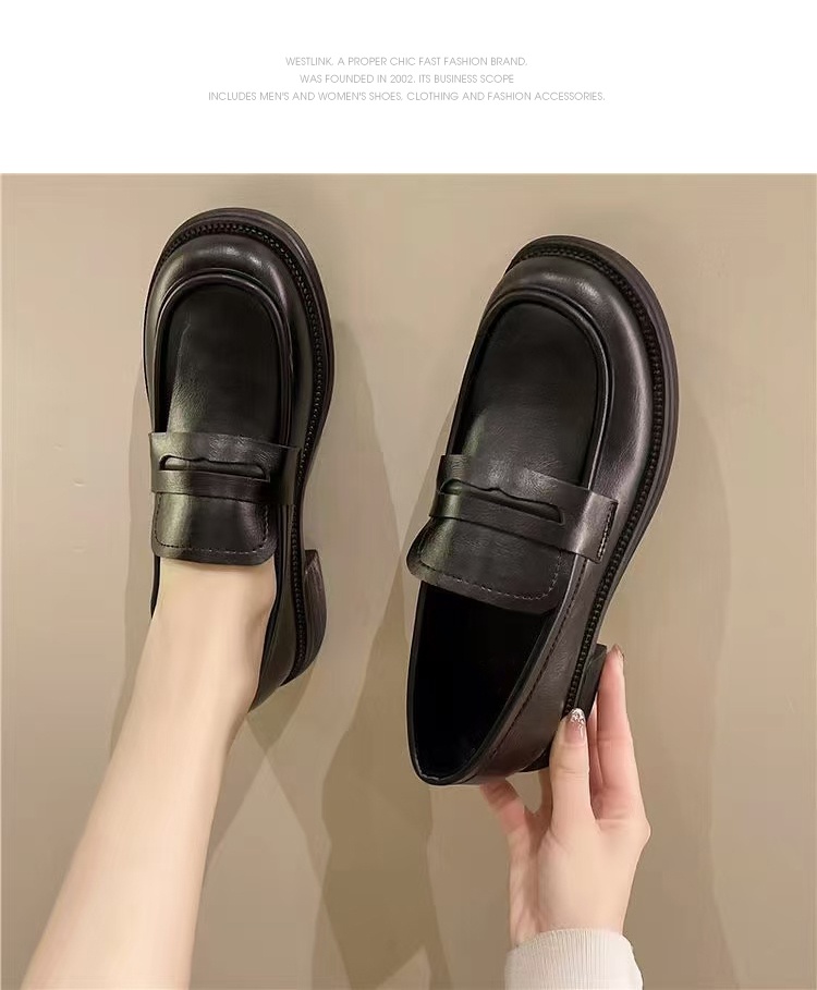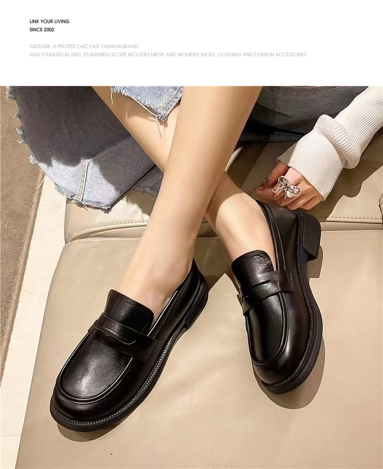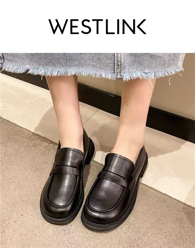 西遇通勤乐福鞋女新款早春瘦版舒适软皮黑色单鞋低跟小皮鞋P0047512