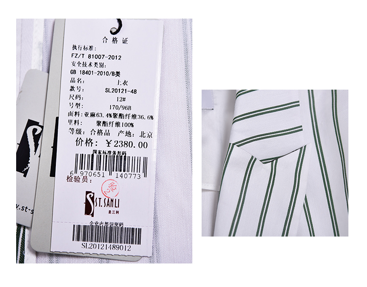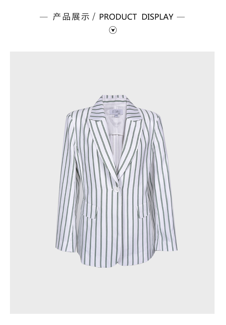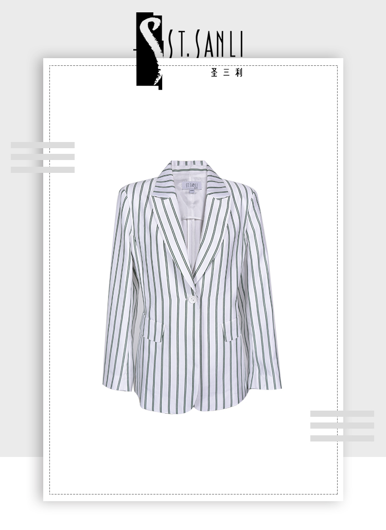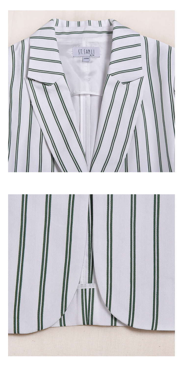 圣三利女装 新款翻领轻薄绿色条纹时尚西服外套SL2012148