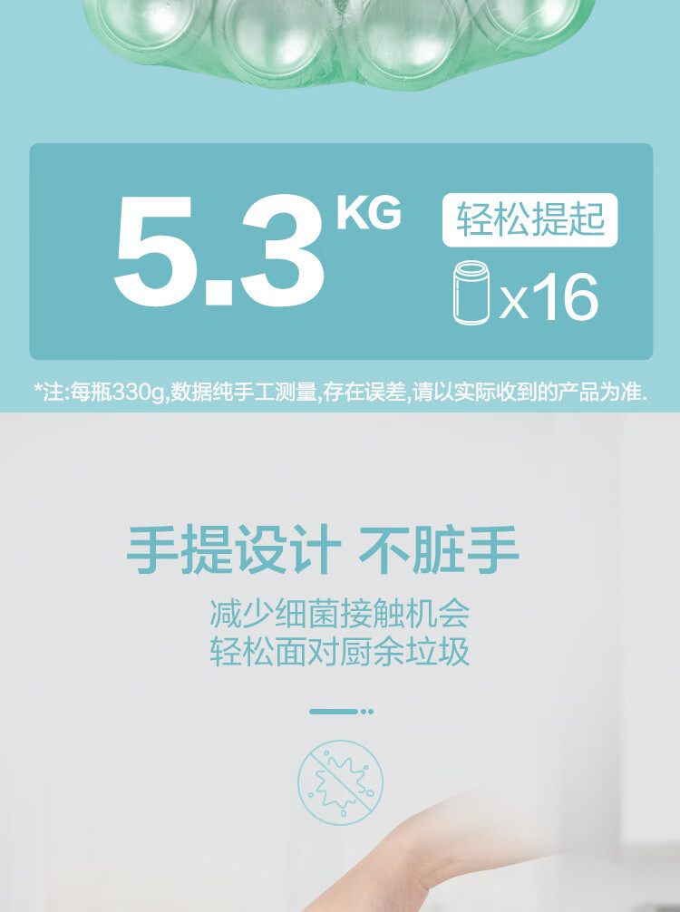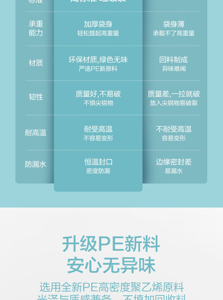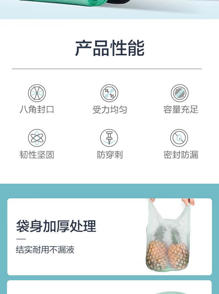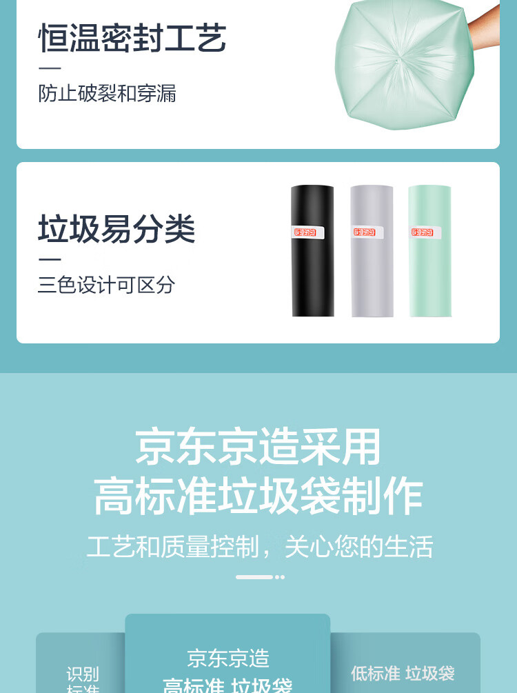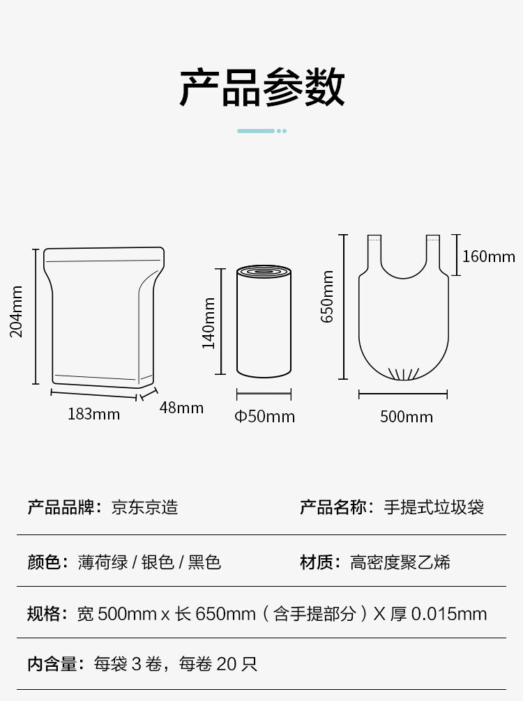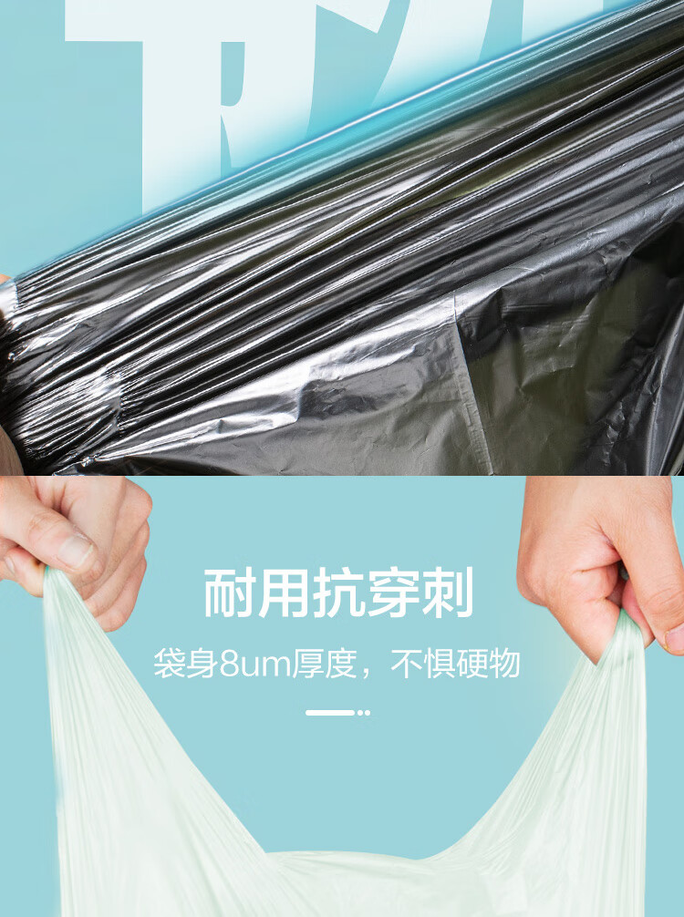 京东京造 大号50*65cm手提垃圾袋15um厚60只厨房客厅卫生间防刺破 100003922247