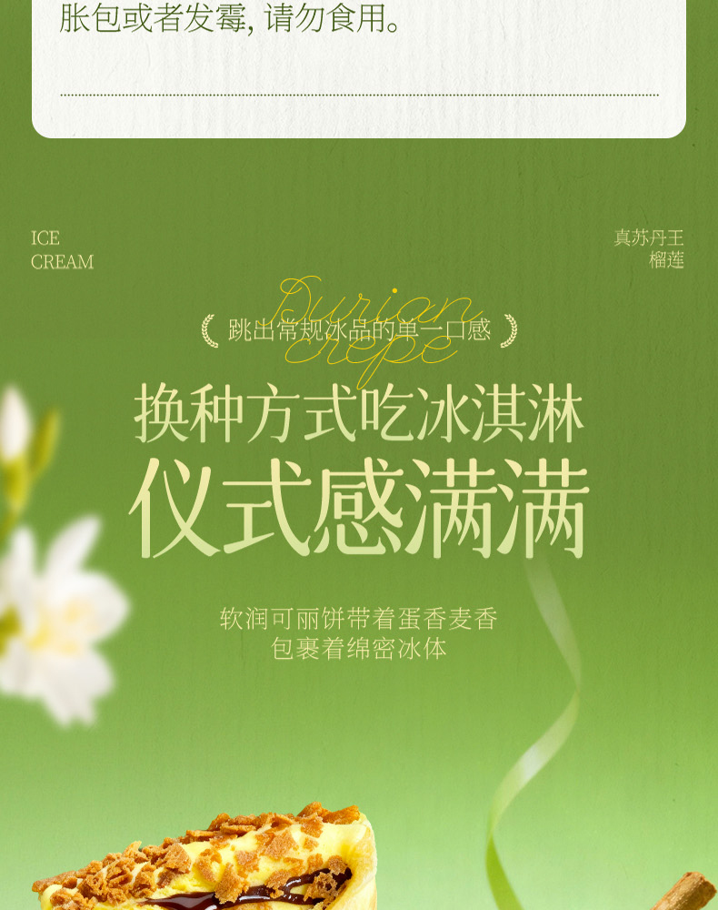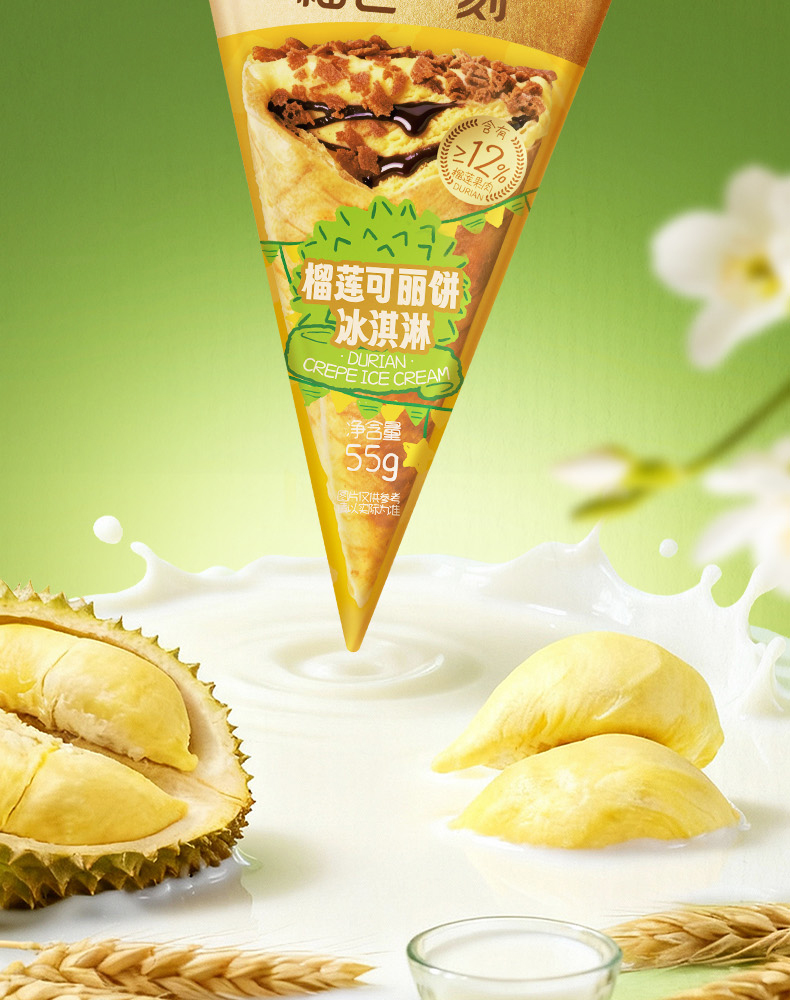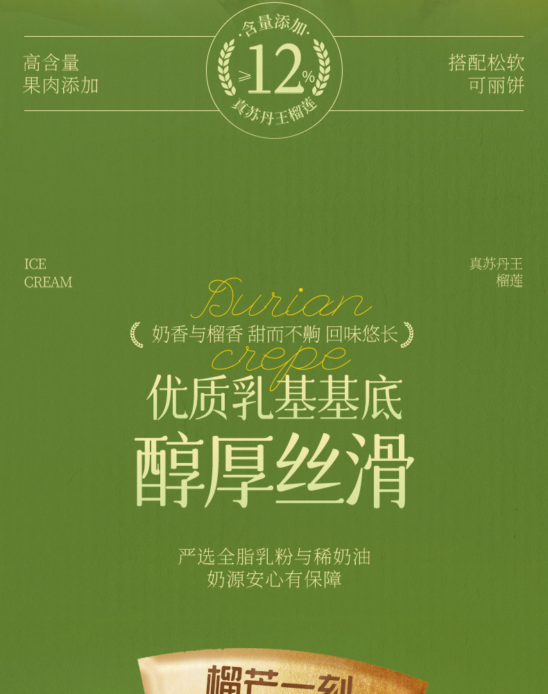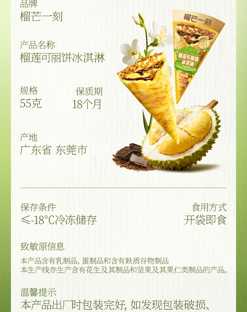 榴芒一刻 榴莲可丽饼冰淇淋440g(55g×8支)