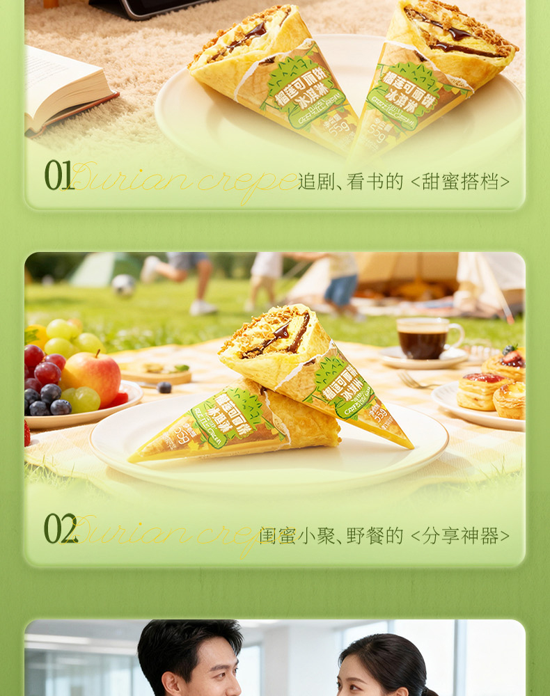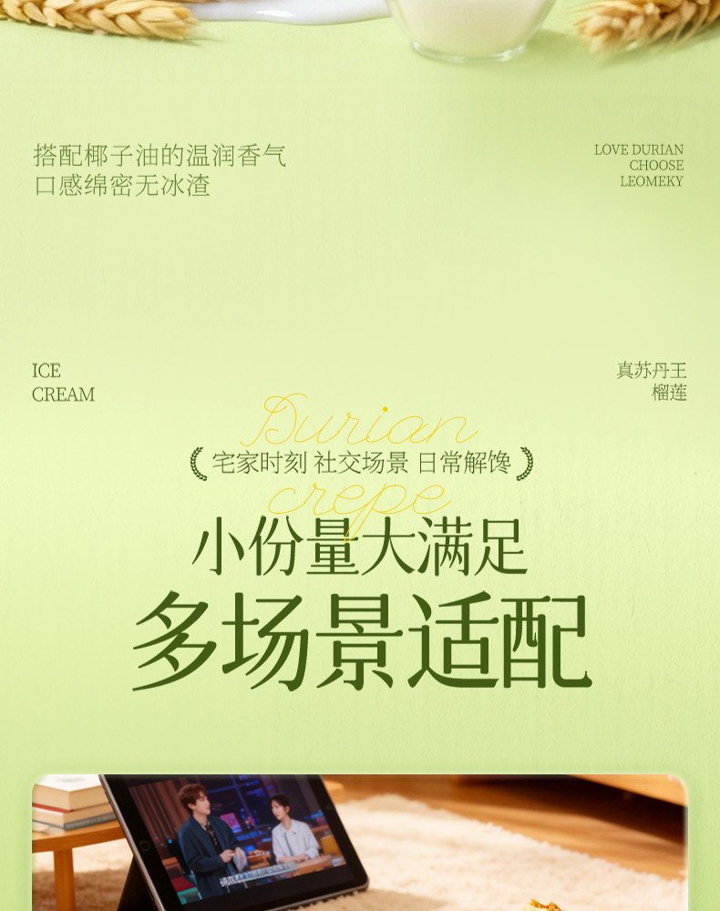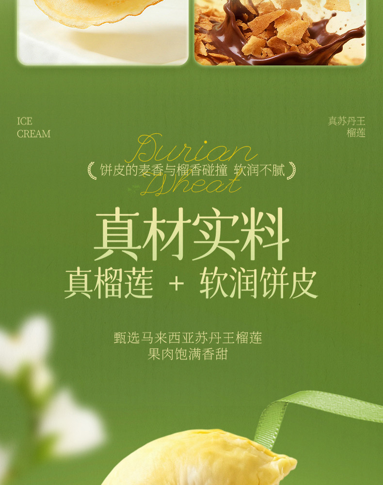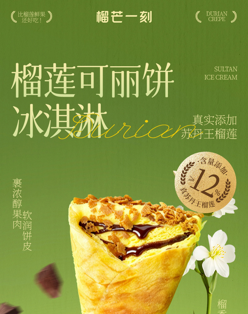 榴芒一刻 榴莲可丽饼冰淇淋440g(55g×8支)