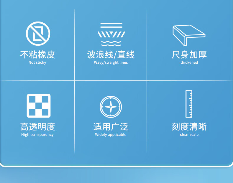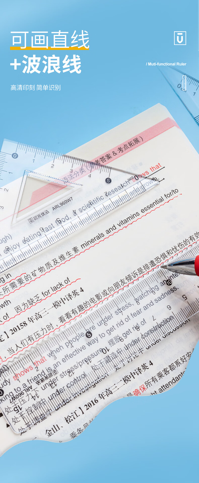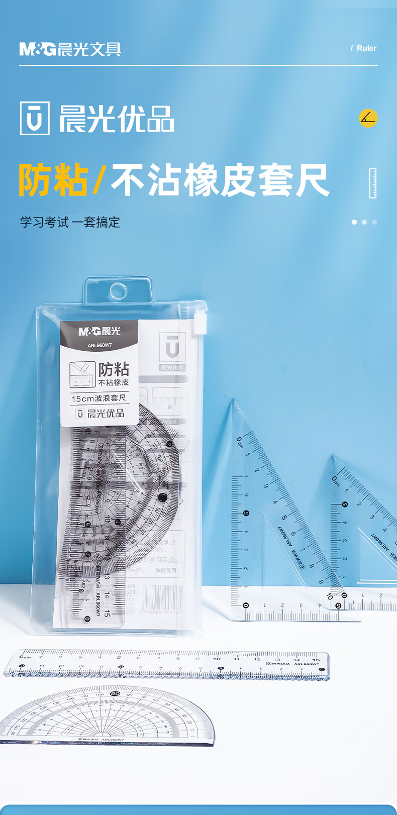 ARL960W7晨光优品不粘橡皮15CM波浪套尺