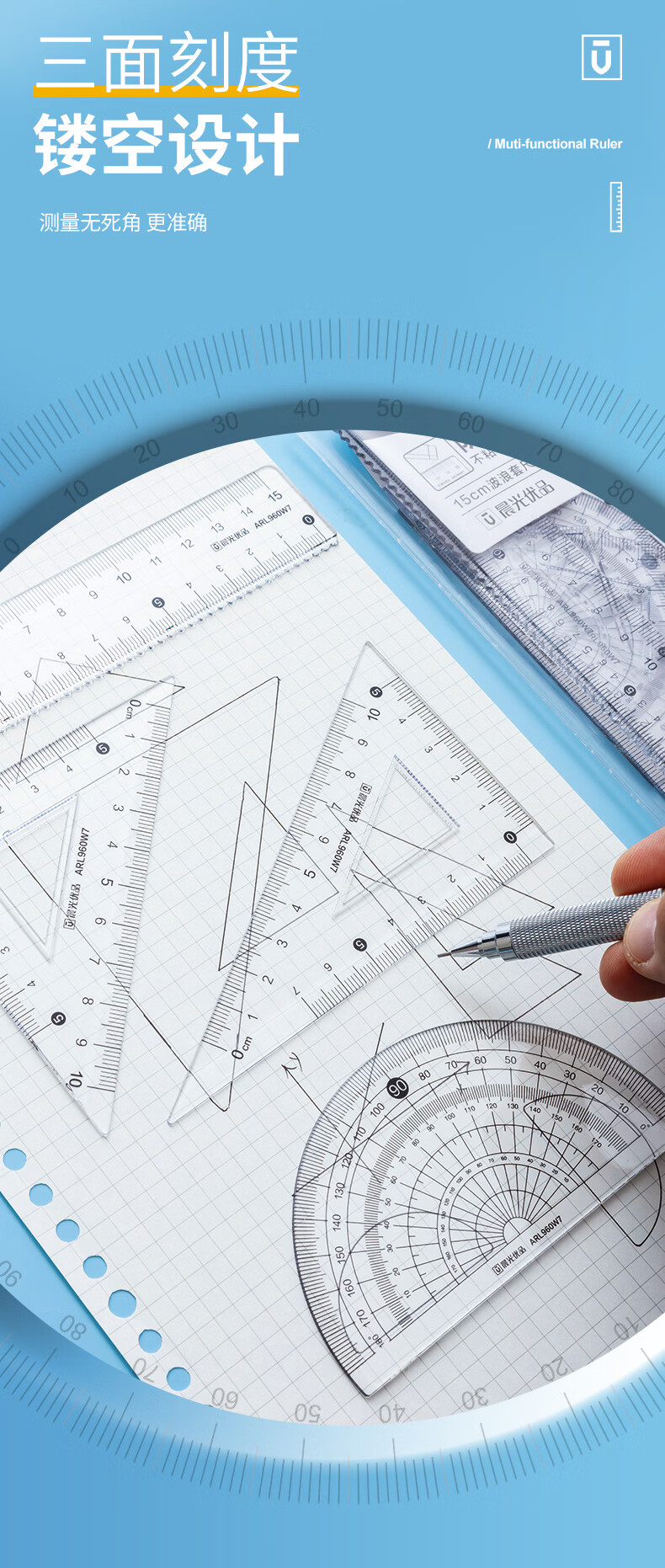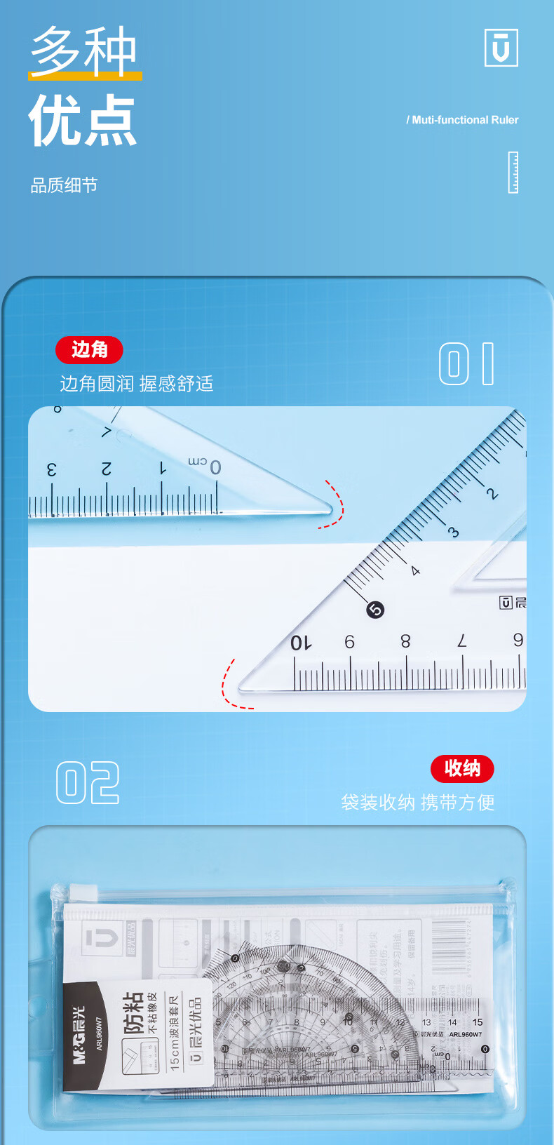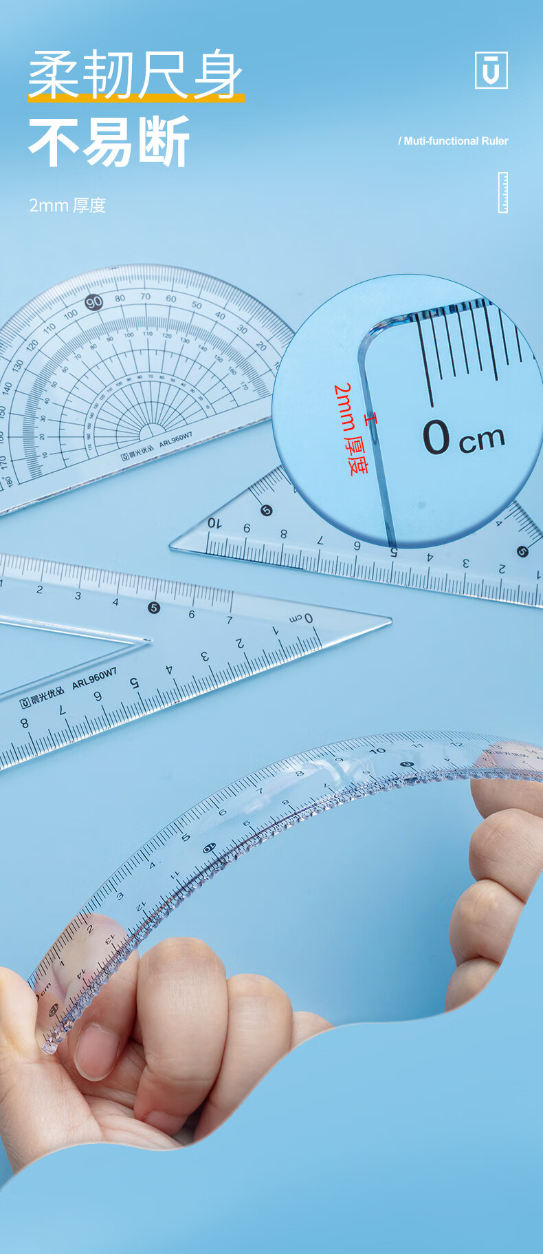 ARL960W7晨光优品不粘橡皮15CM波浪套尺