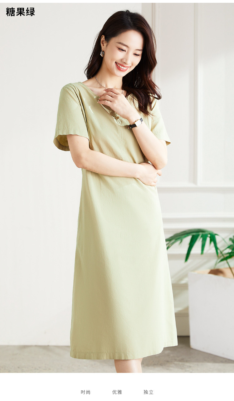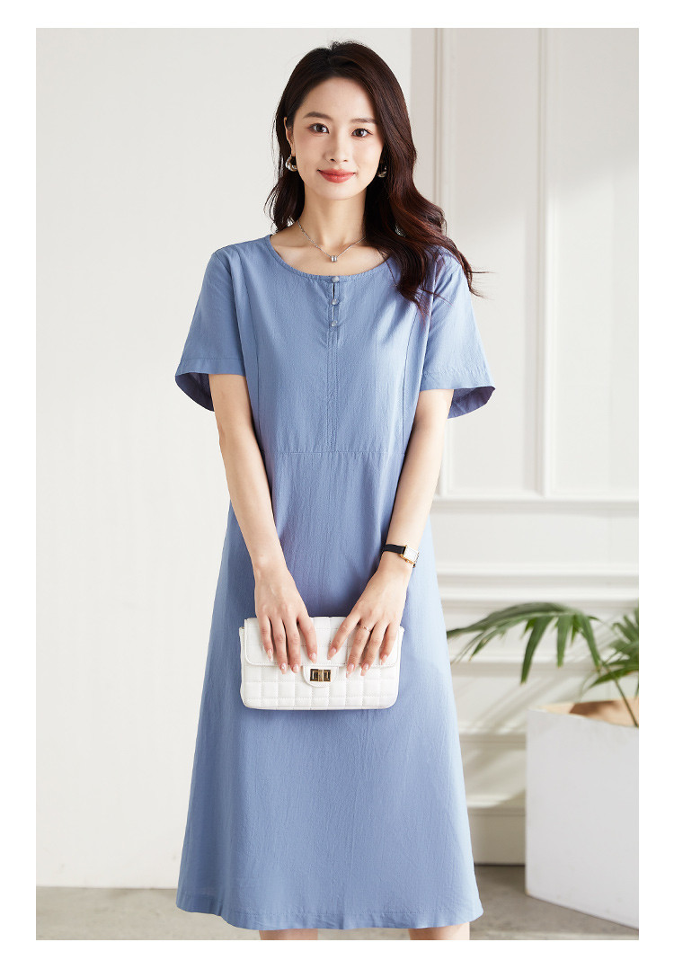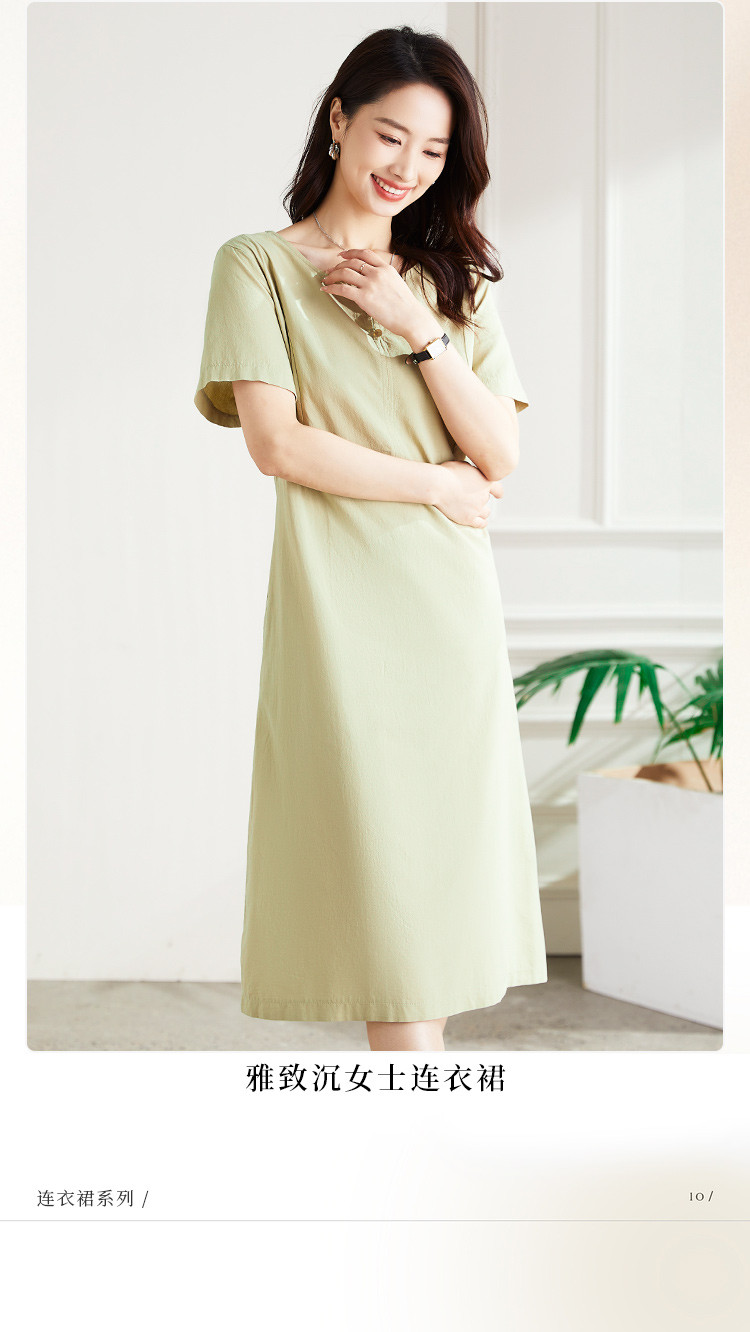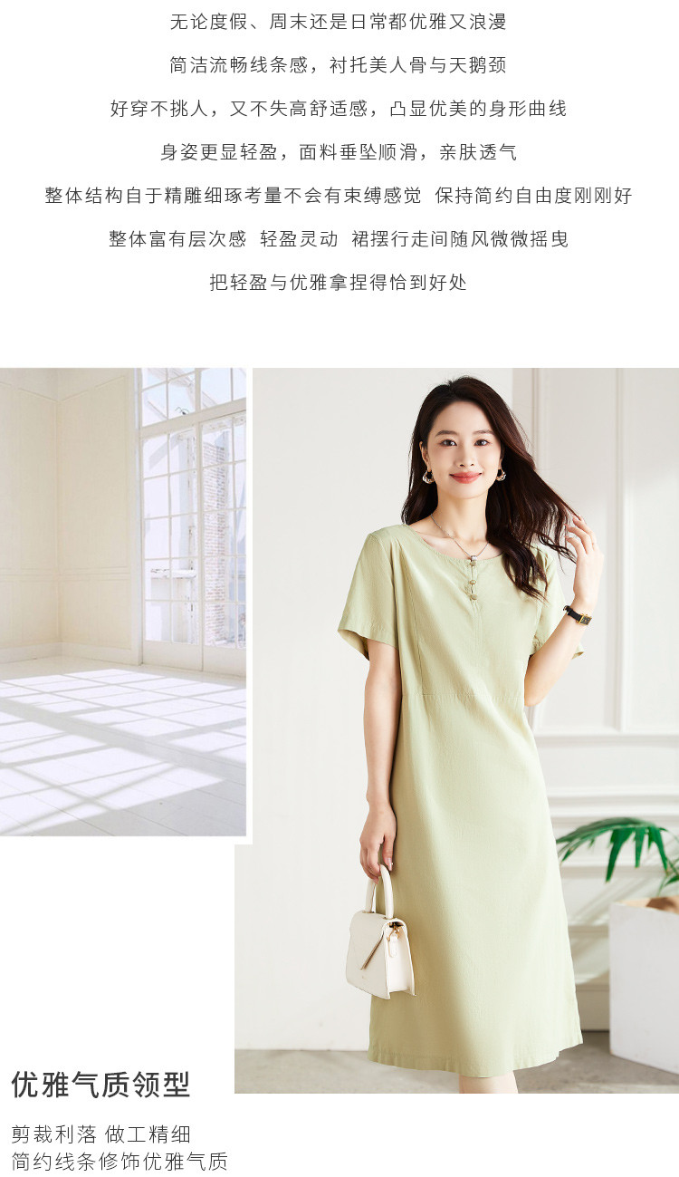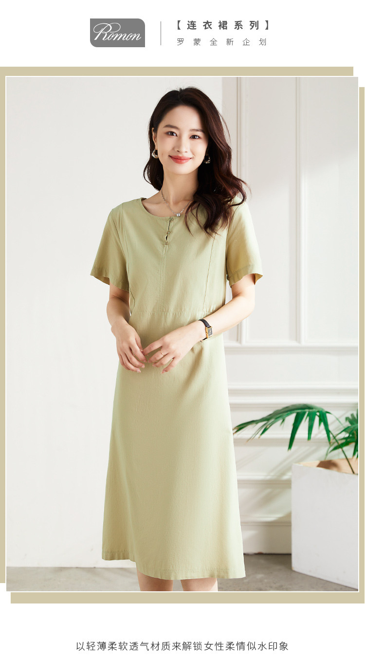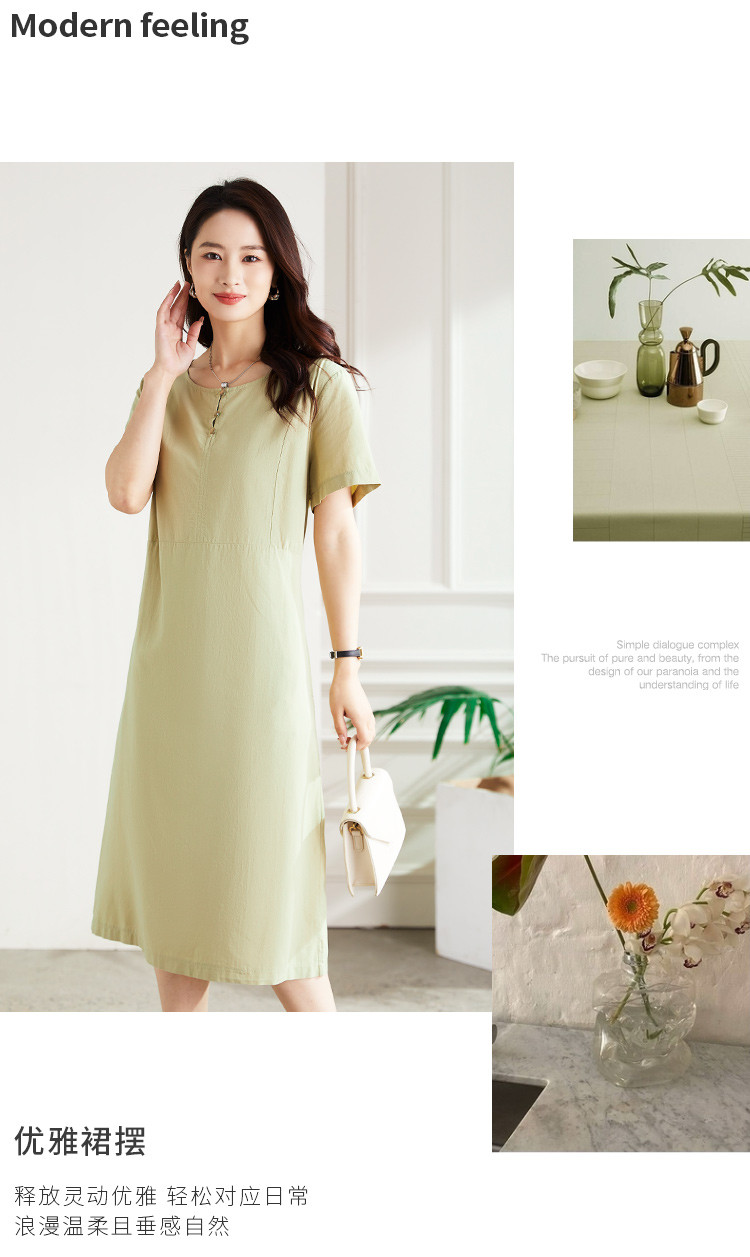 【多色可选】罗蒙夏季短袖连衣裙女士长款休闲百搭宽松收腰日常简约棉质裙子女