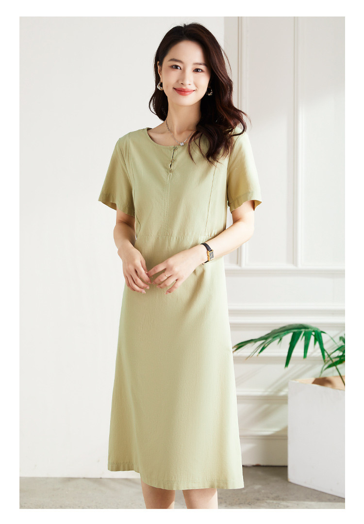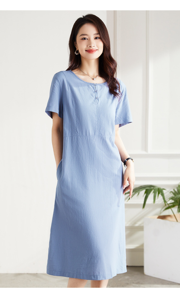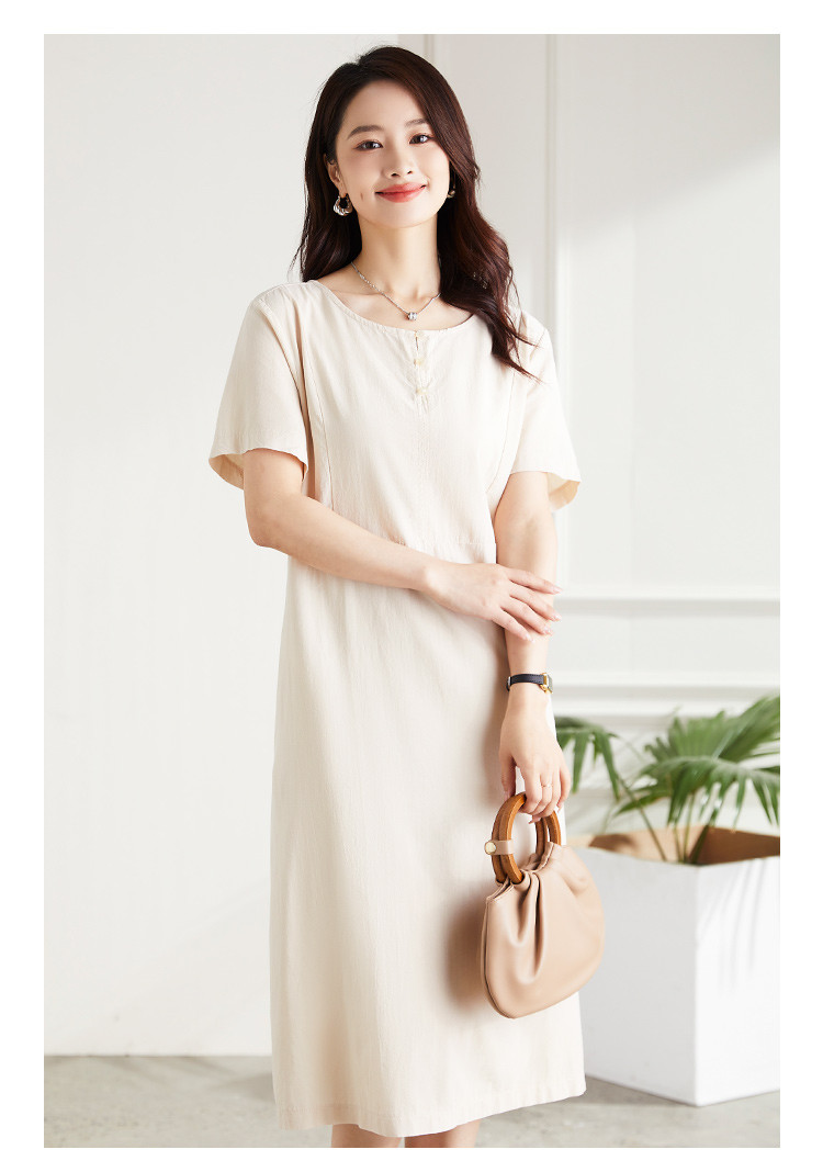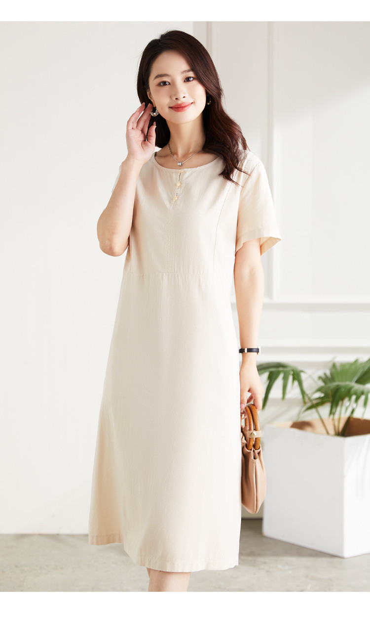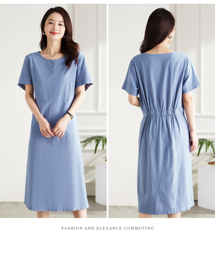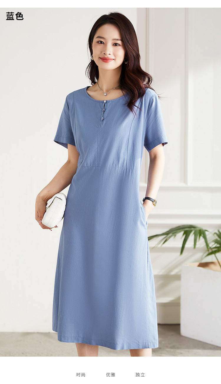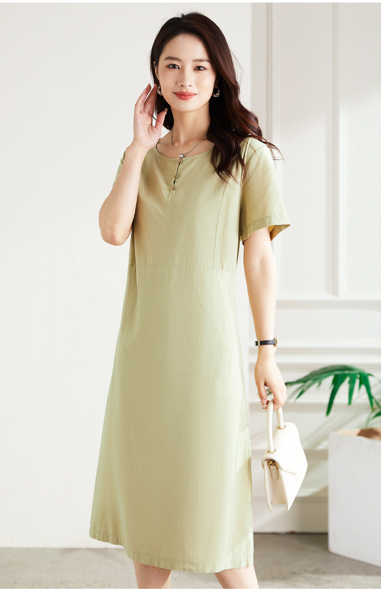 【多色可选】罗蒙夏季短袖连衣裙女士长款休闲百搭宽松收腰日常简约棉质裙子女
