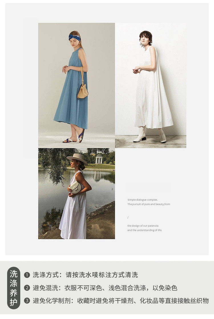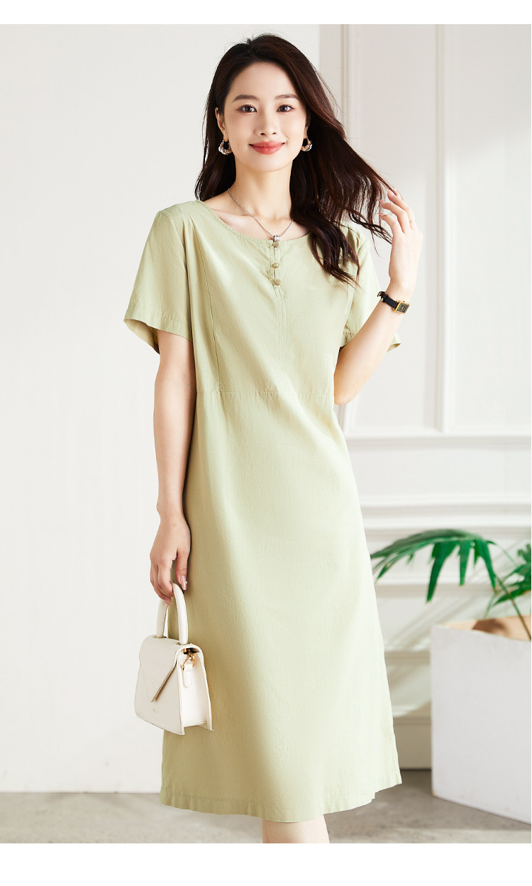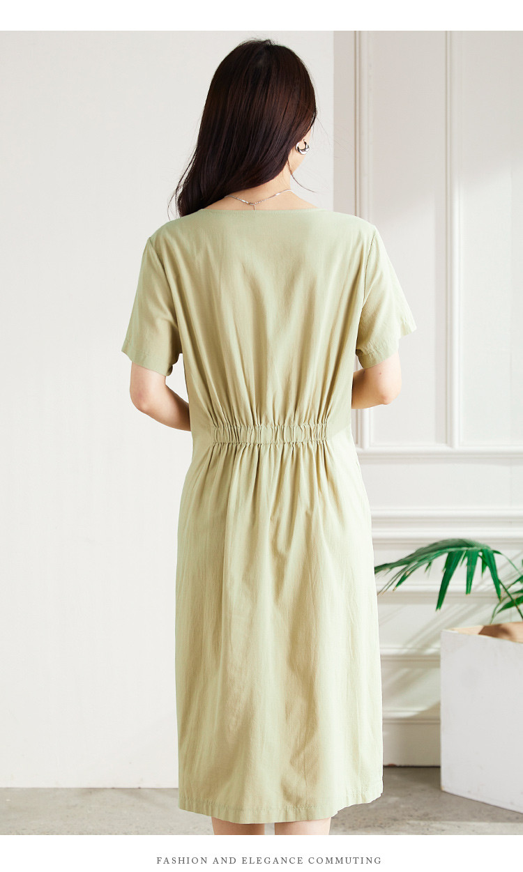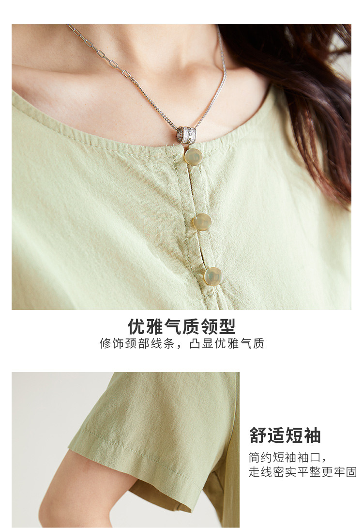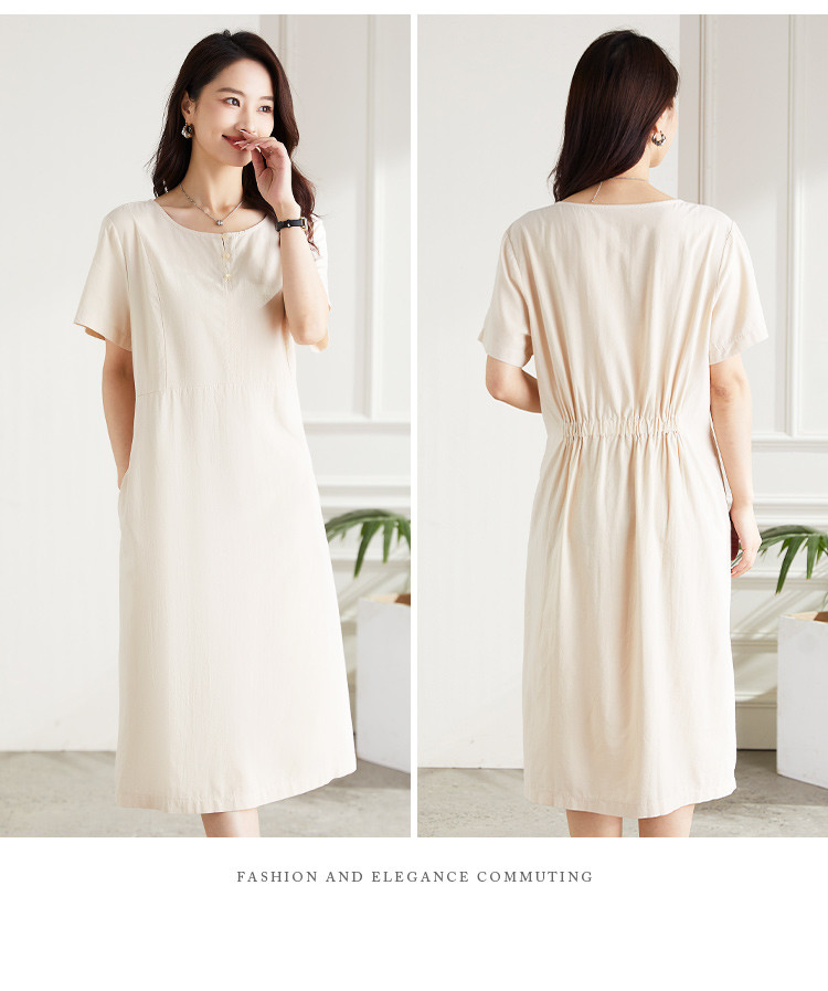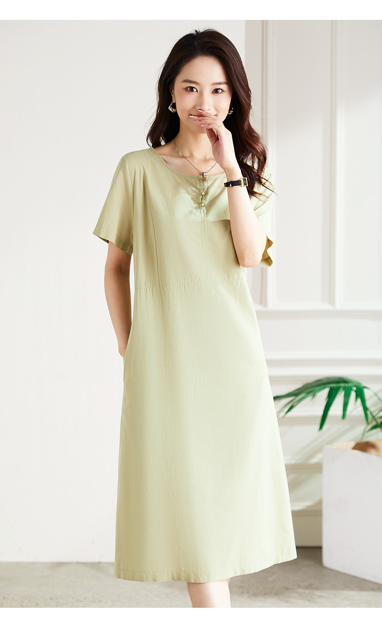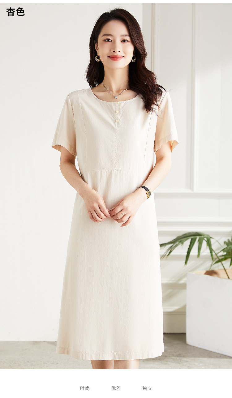【多色可选】罗蒙夏季短袖连衣裙女士长款休闲百搭宽松收腰日常简约棉质裙子女