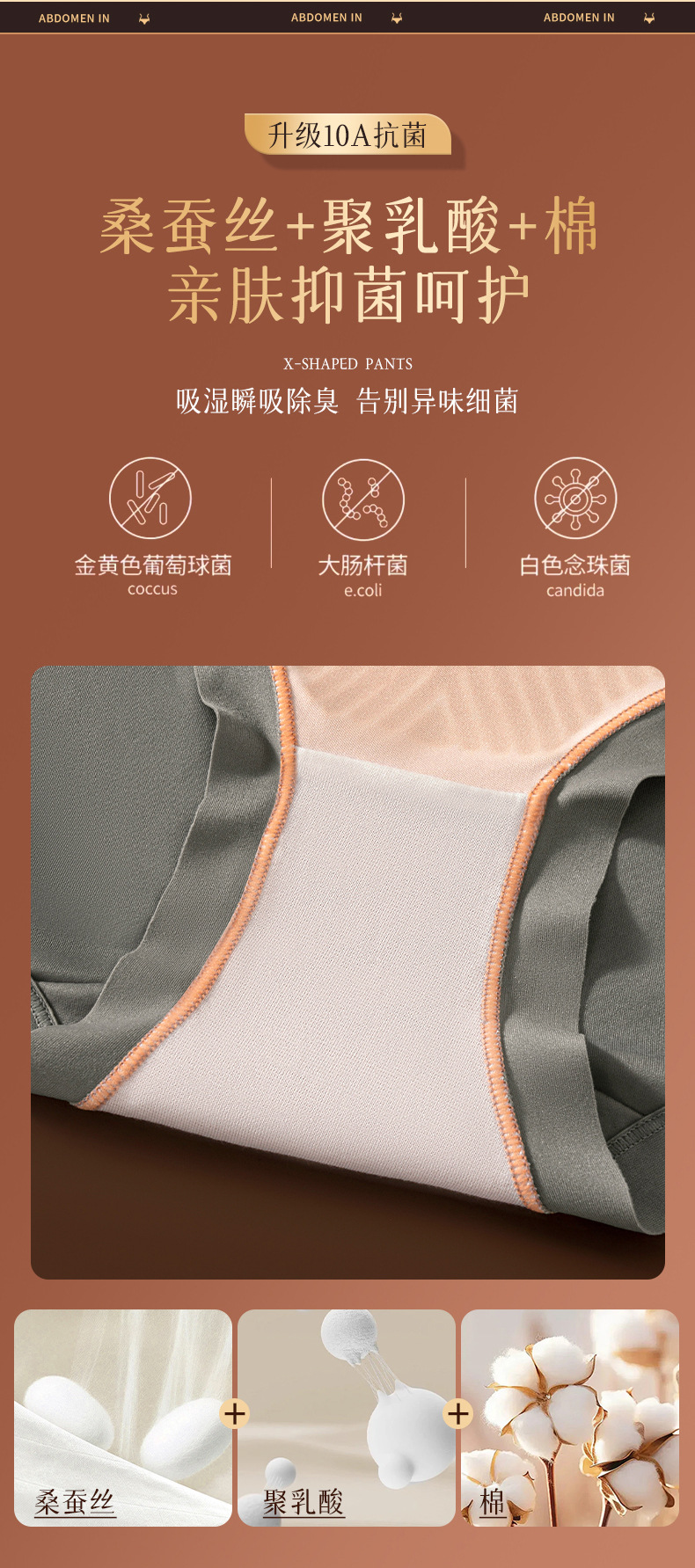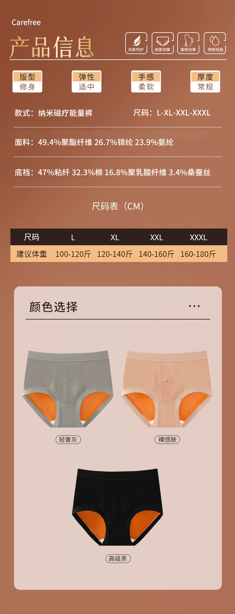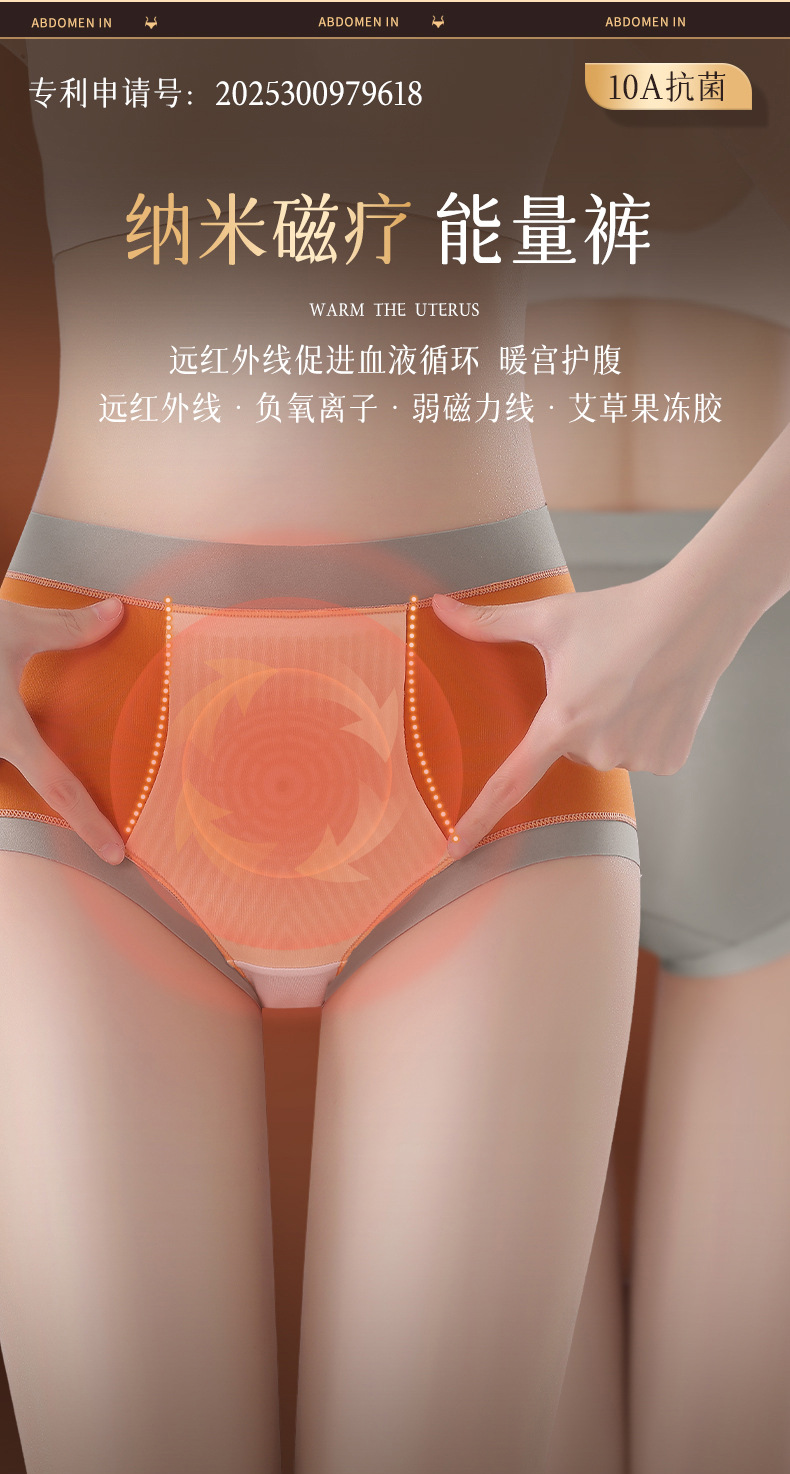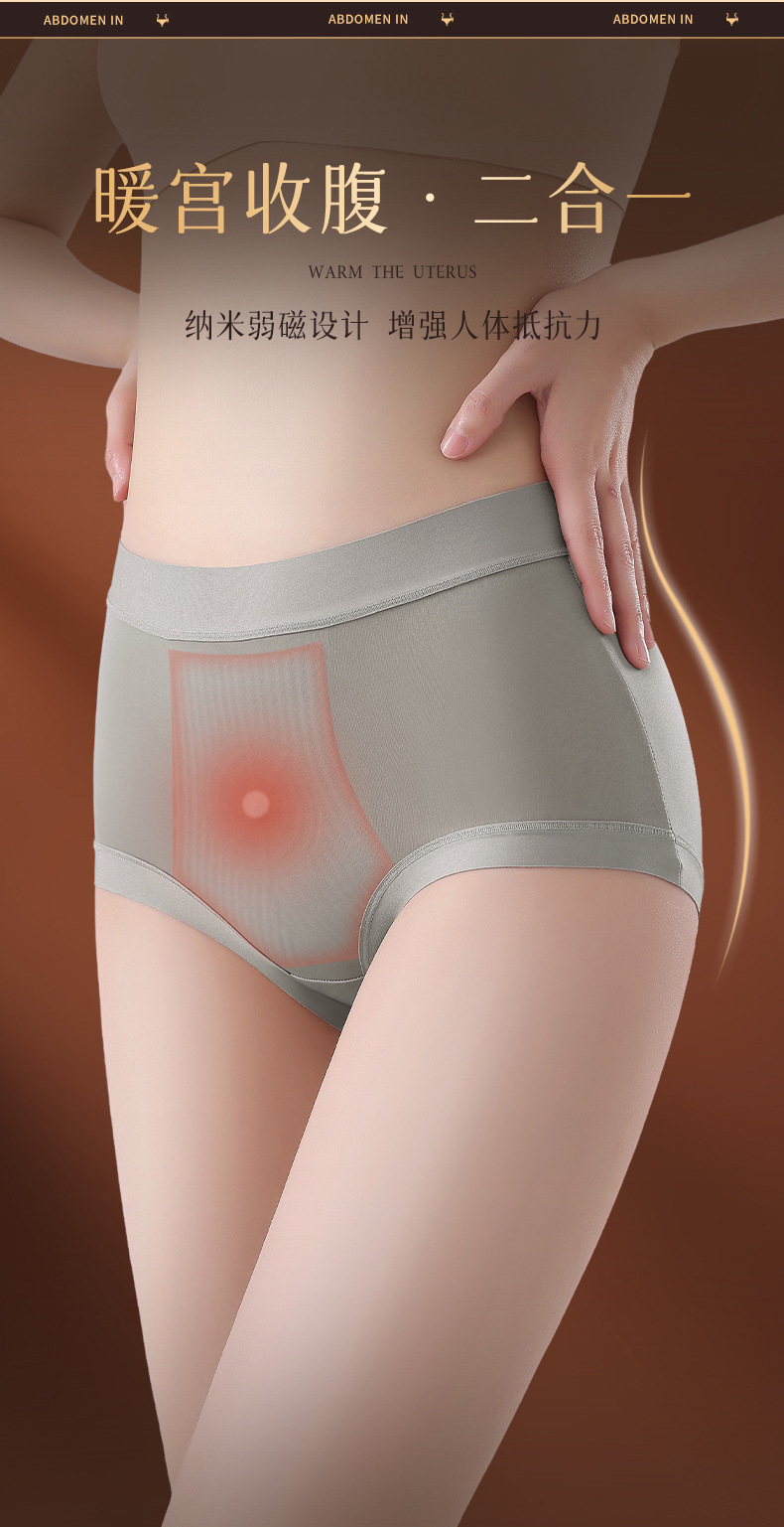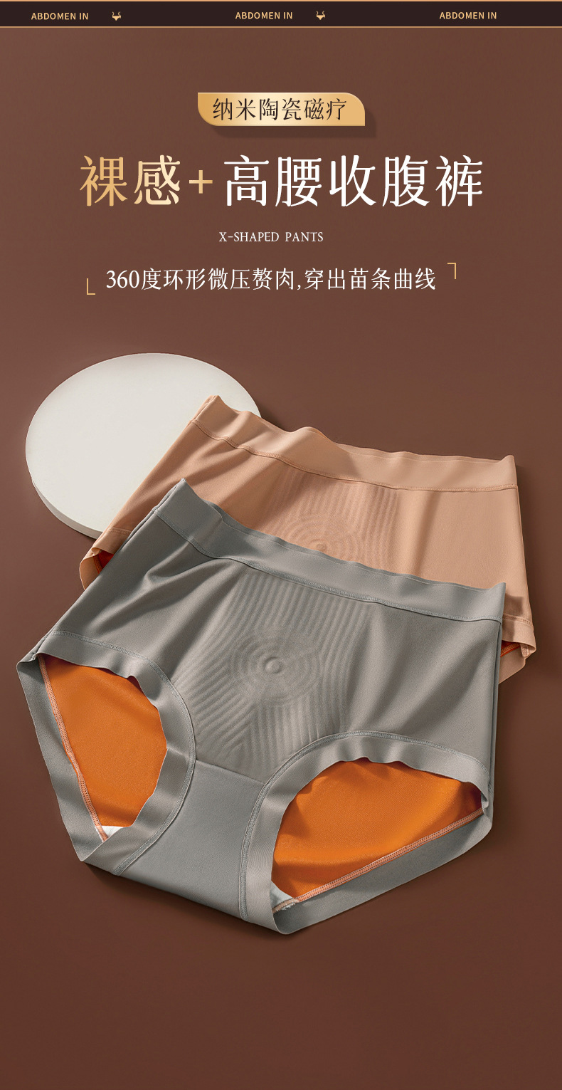 【裸感&高腰收腹裤❗️3条礼盒装】暖宫收腹&二合一纳米磁能量裤 山蚕丝护腹女士无痕内裤蓄热驱寒内裤 10A抗菌底档三角内裤