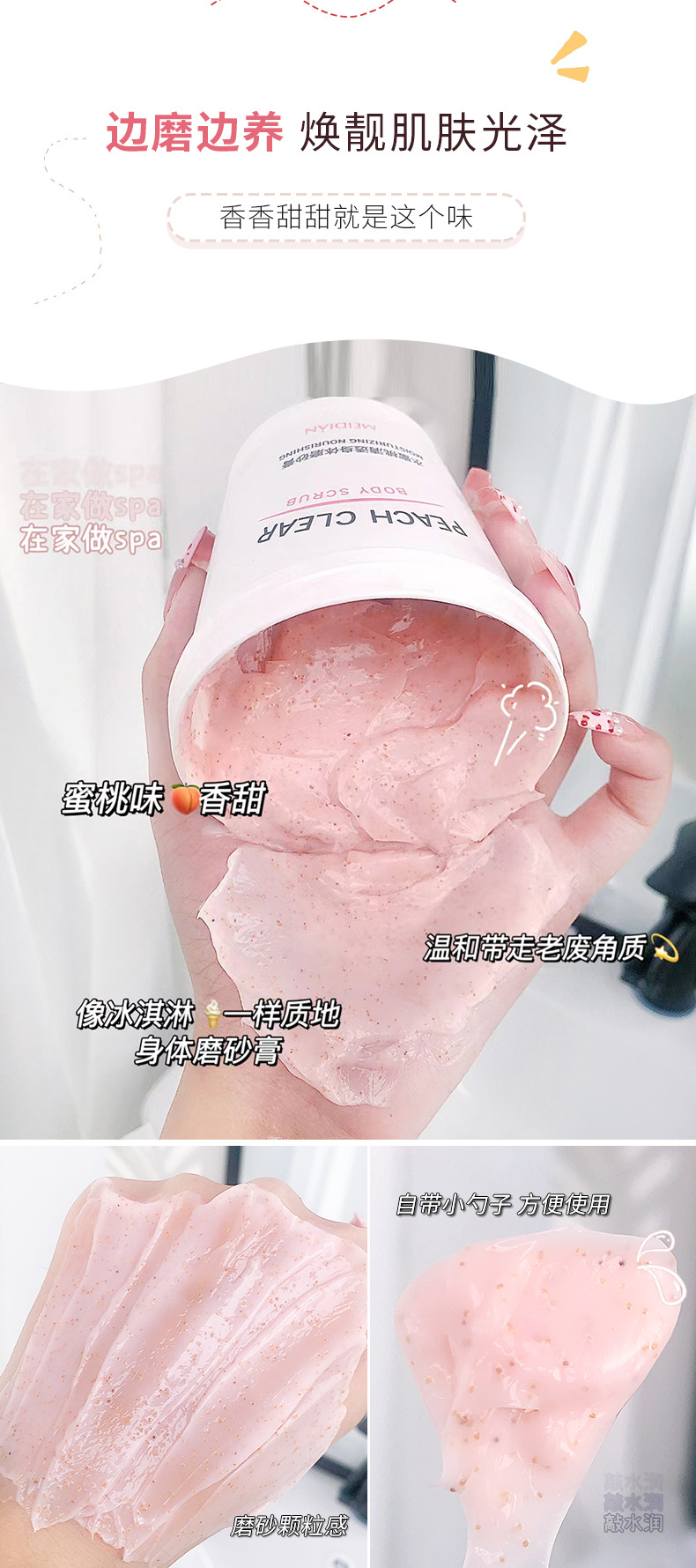 「拍1发2!9.9元包邮」魅点水蜜桃身体磨砂膏 去角质去鸡皮死皮清洁冰淇淋磨砂膏