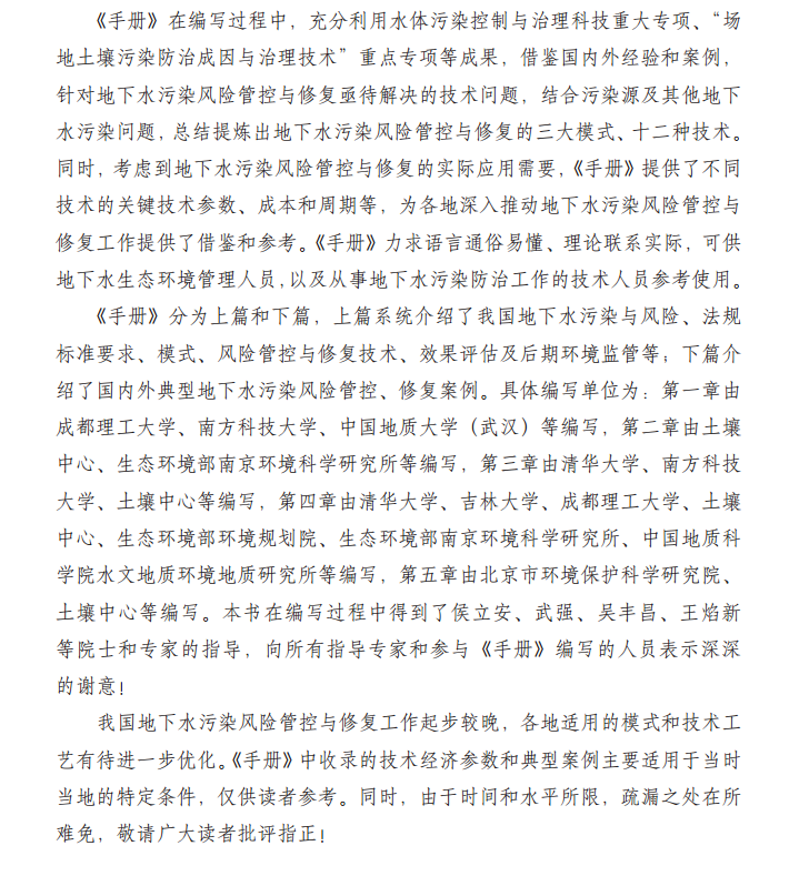 书名:地下水污染风险管控与修复技术手册