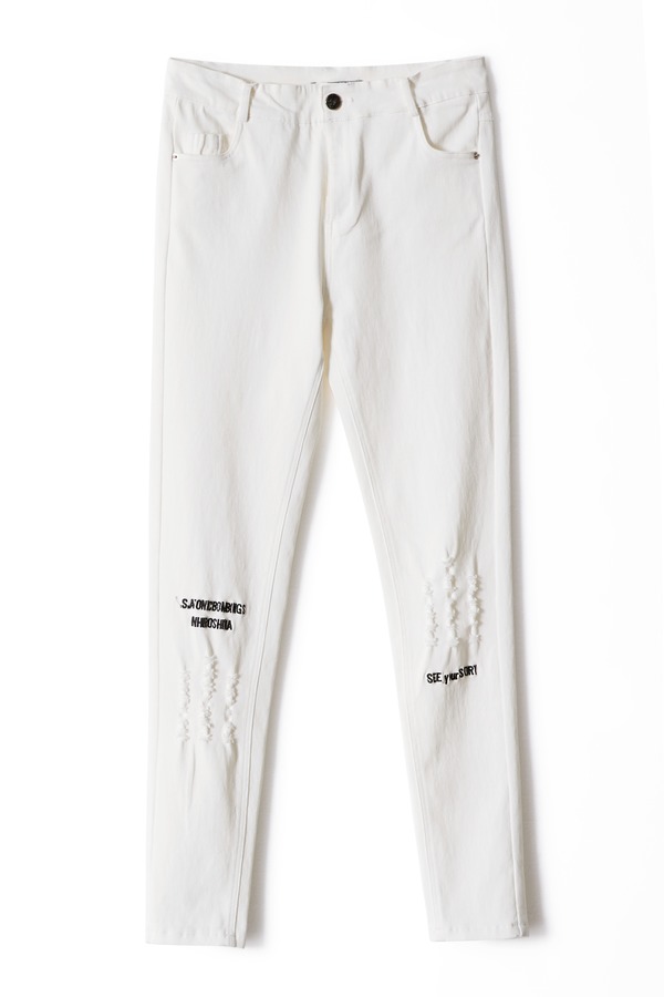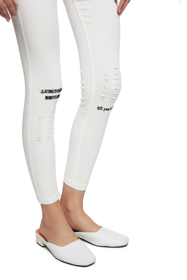 OCTAVIA 字母刺绣白色紧身裤 6527