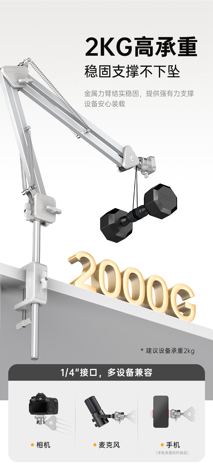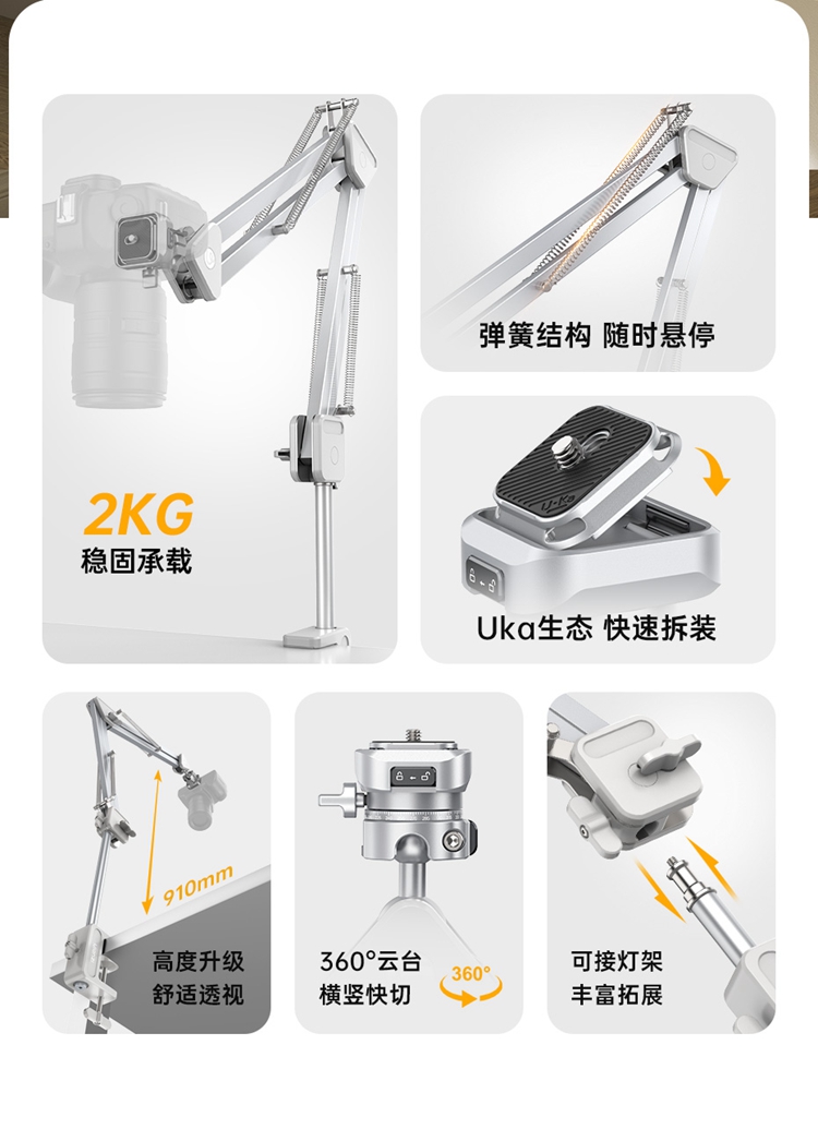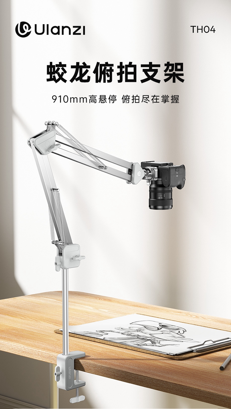 Ulanzi优篮子TH04蛟龙相机俯拍支架手机单反麦克风悬臂支架桌面拍摄直播平板多功能万向拓展补光灯金属支架