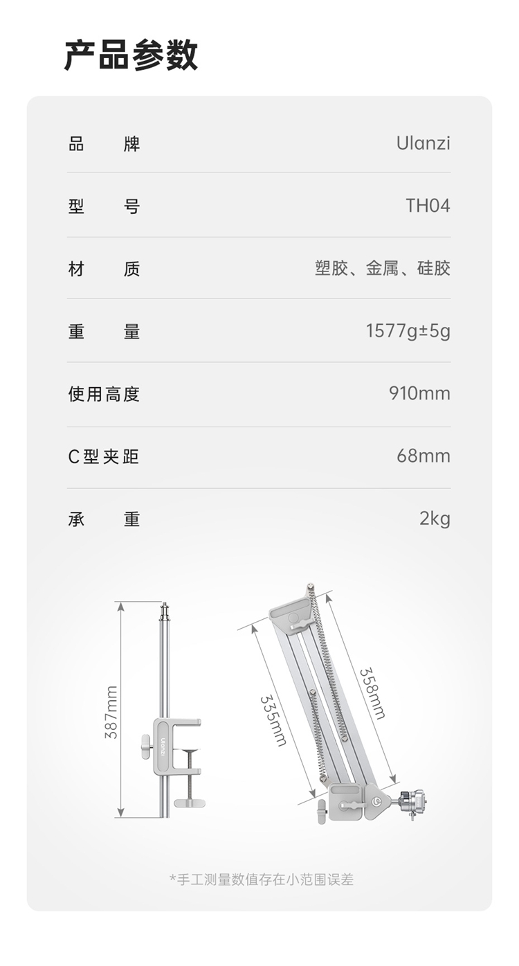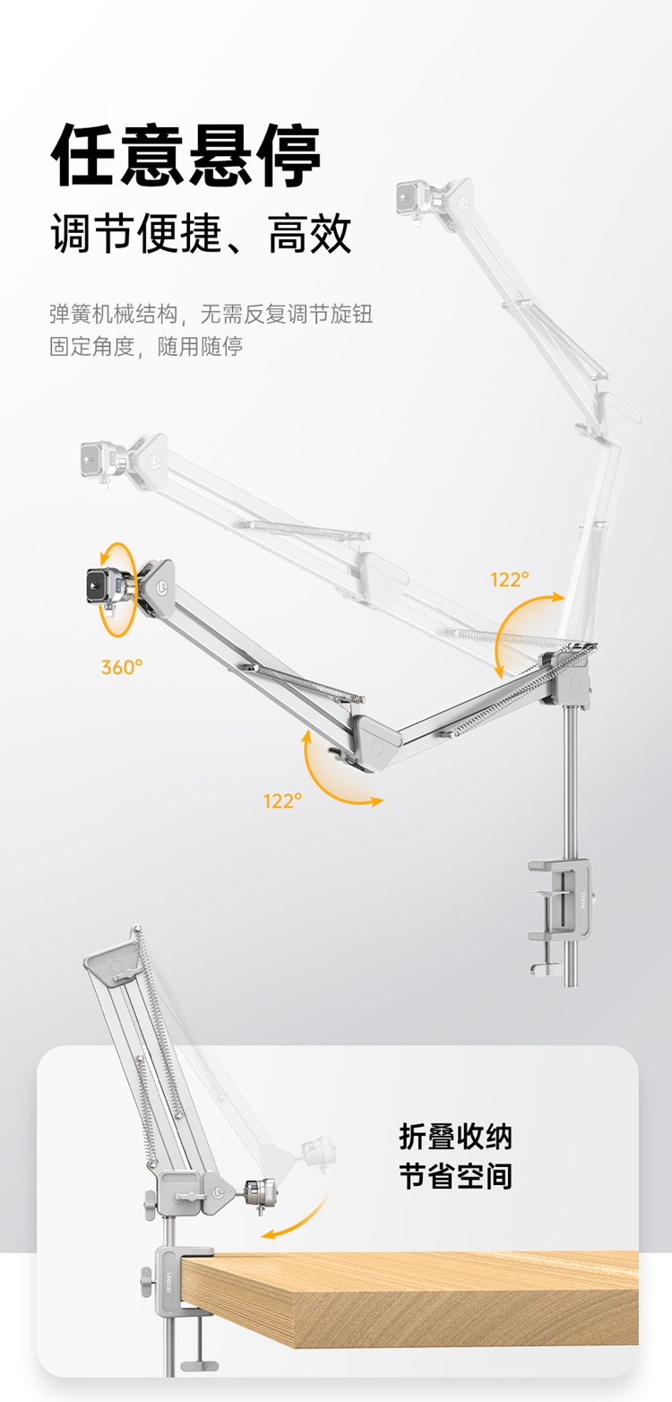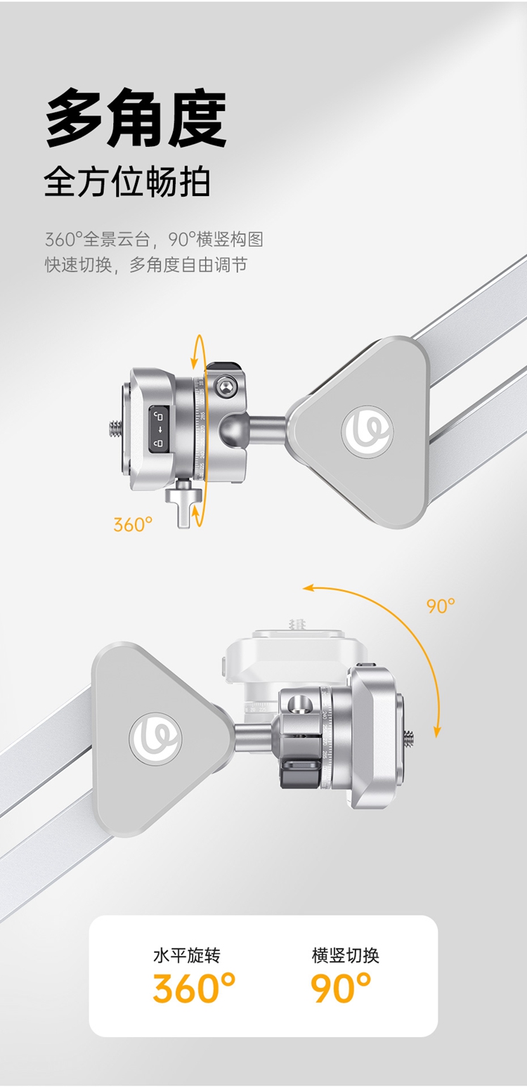 Ulanzi优篮子TH04蛟龙相机俯拍支架手机单反麦克风悬臂支架桌面拍摄直播平板多功能万向拓展补光灯金属支架