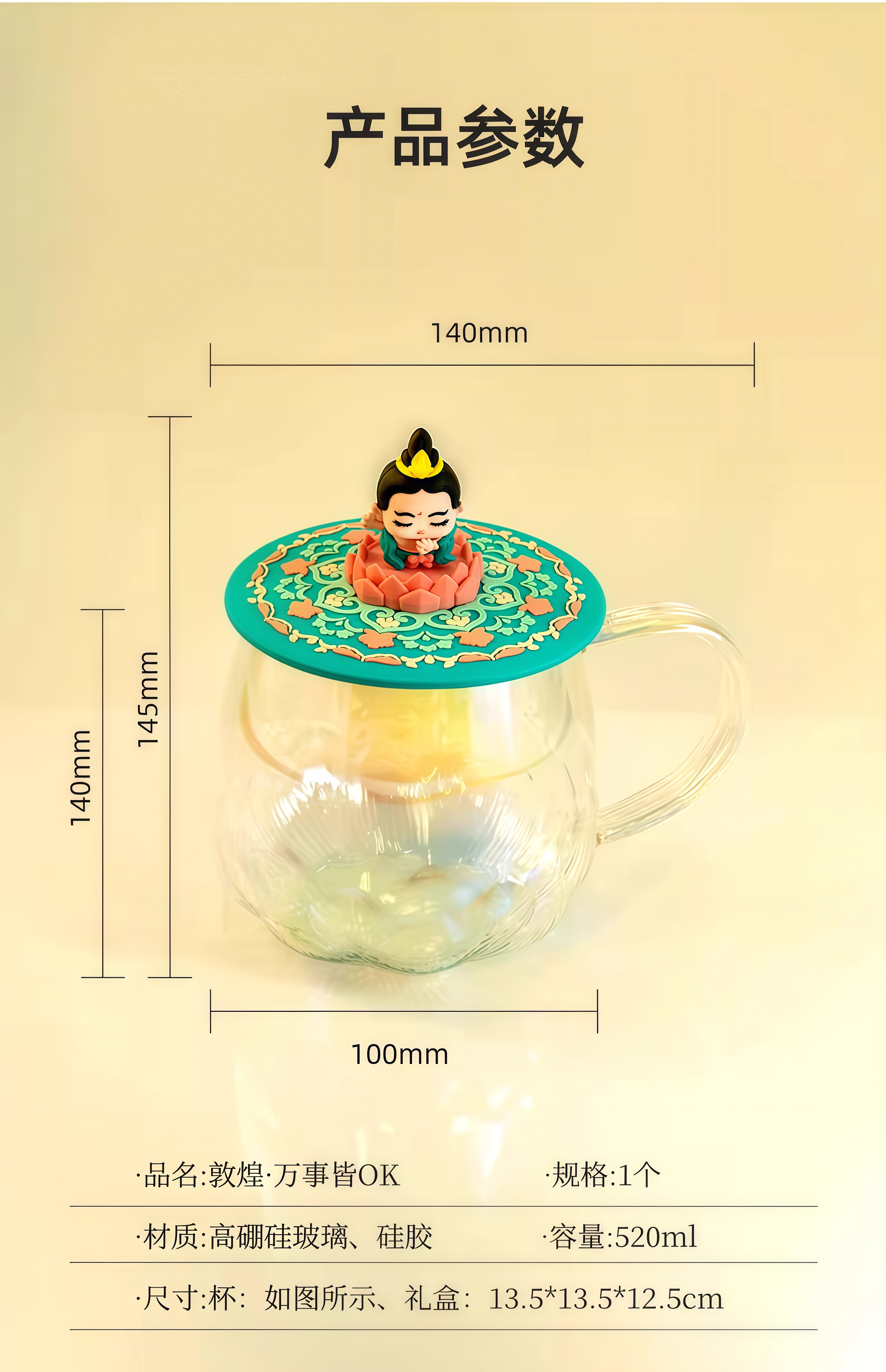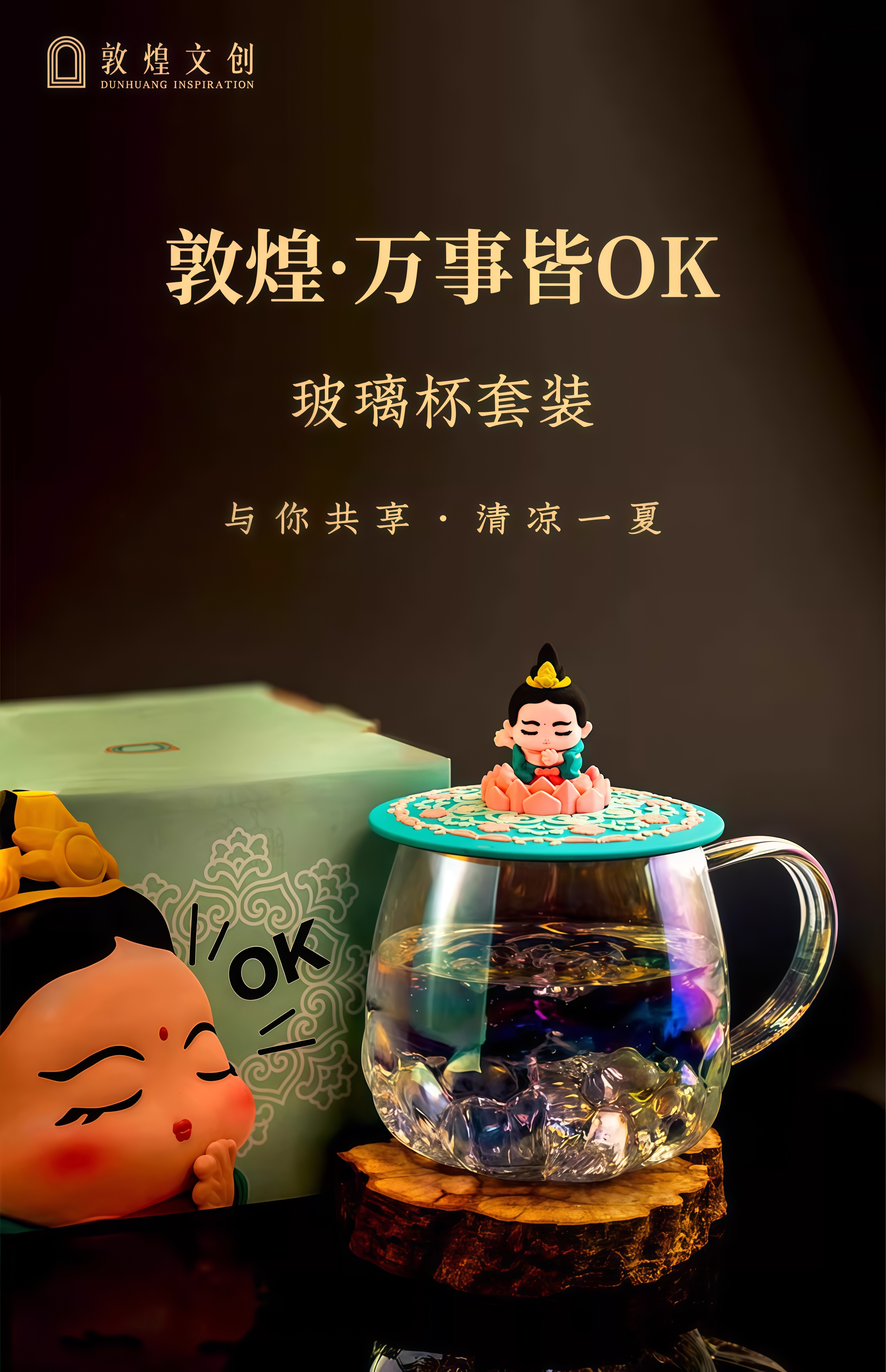 敦煌文创 万事皆OK玻璃杯