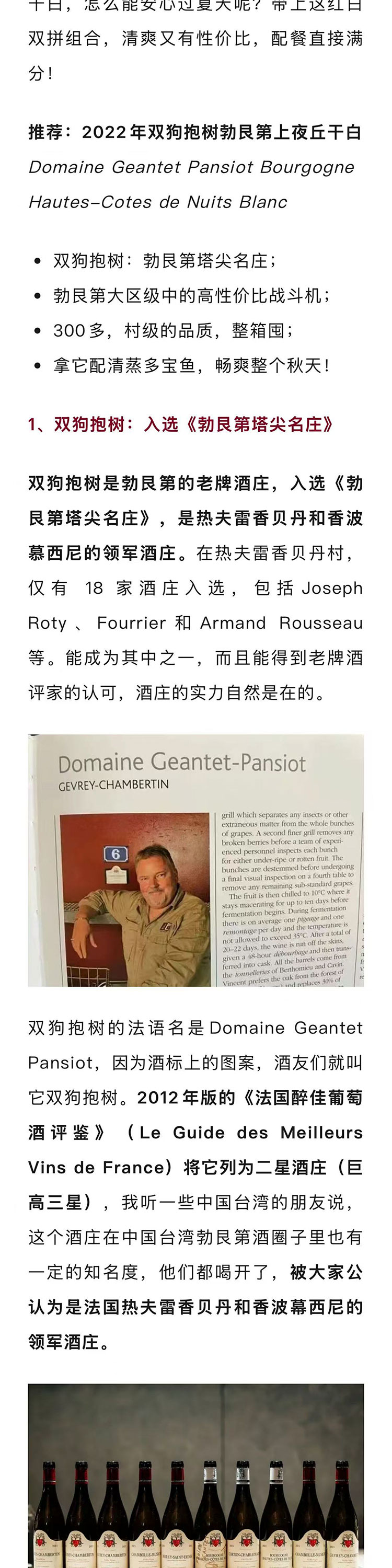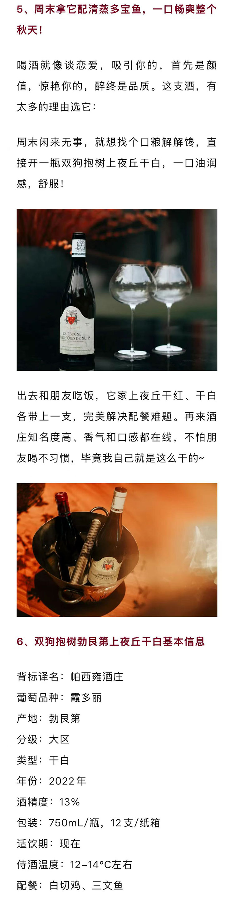 【性价比战斗机】法国勃艮第双狗抱树勃艮第上夜丘霞多丽干白