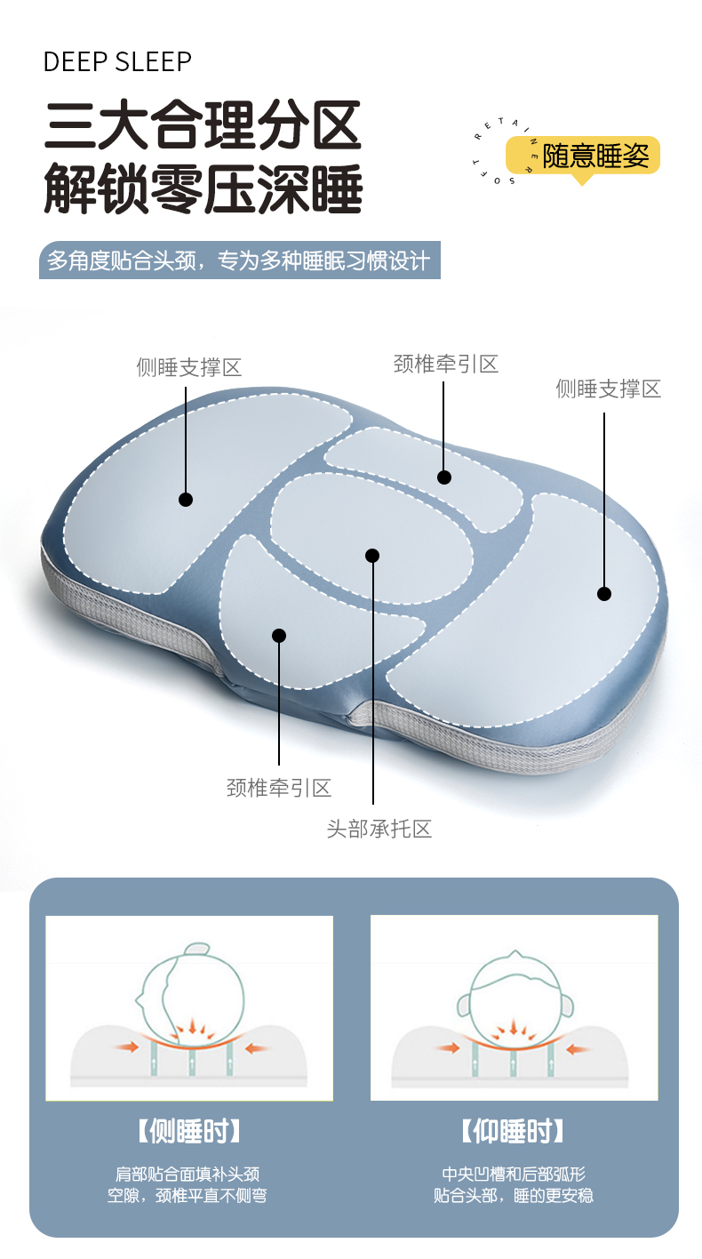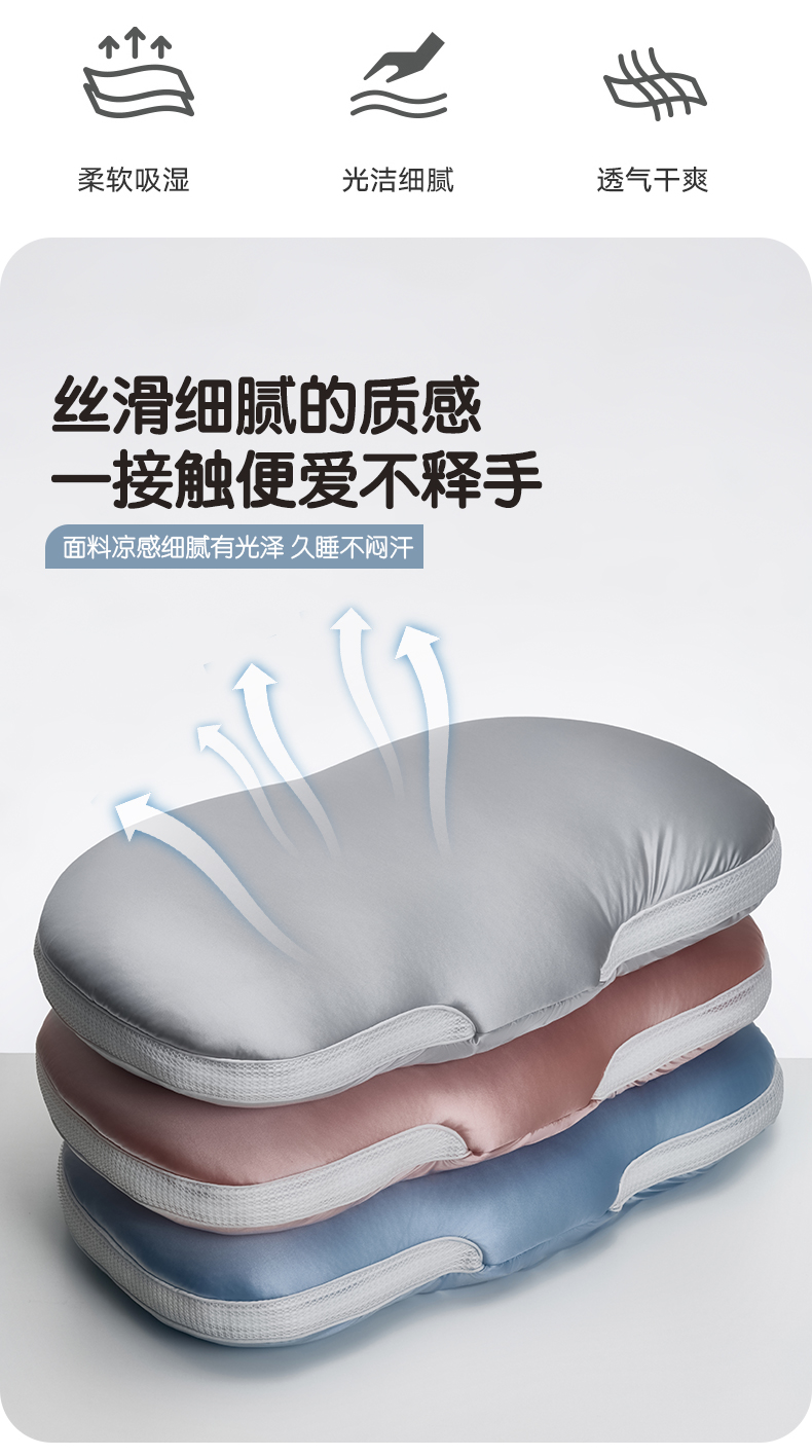 自然醒丝光绵豆枕单人云朵释压深睡枕头睡觉免压助睡眠枕芯异型护颈椭圆成人分区XK