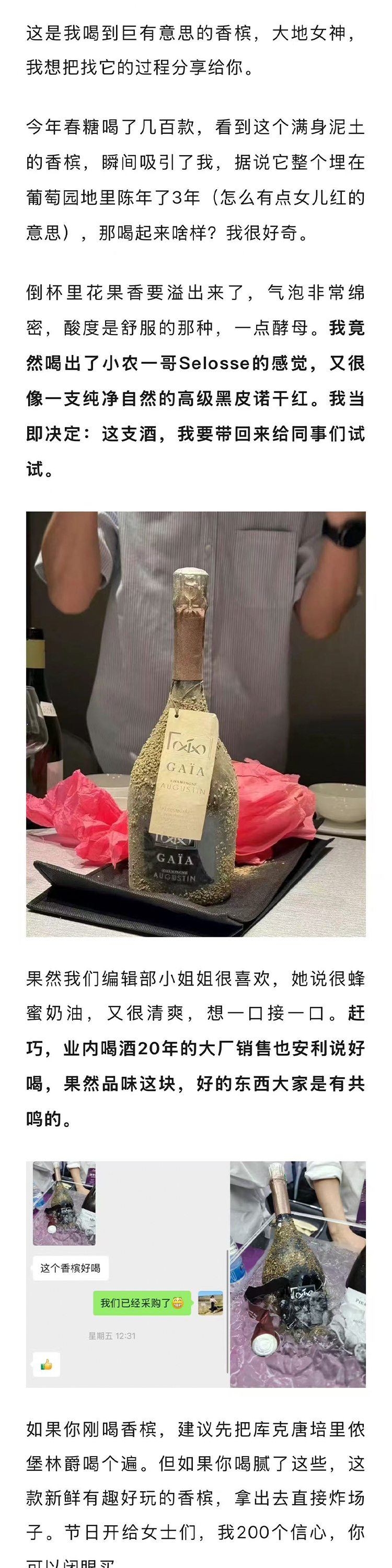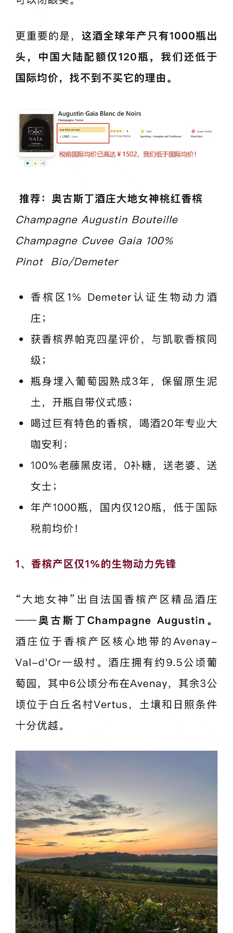 【国内仅120瓶】法国奥古斯丁酒庄大地女神黑皮诺桃红香槟