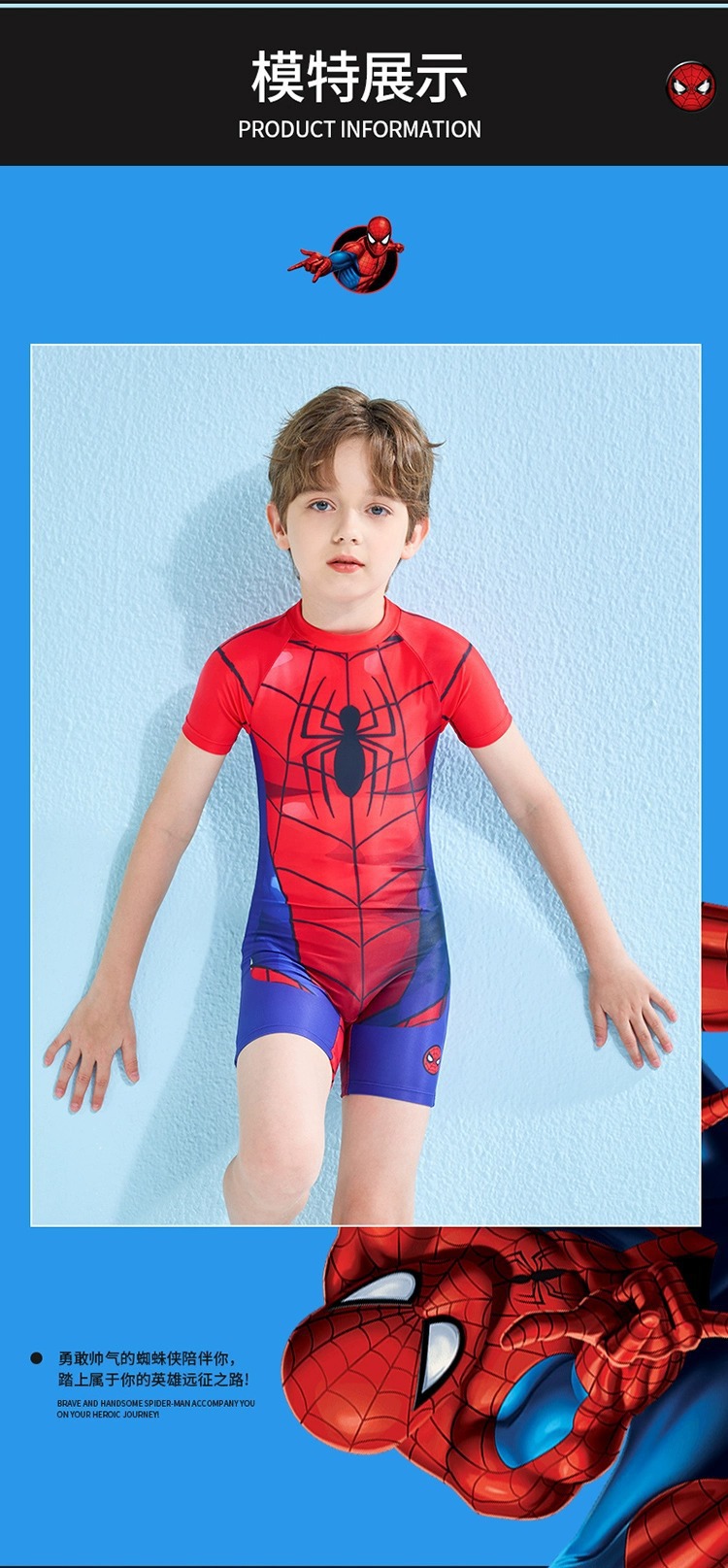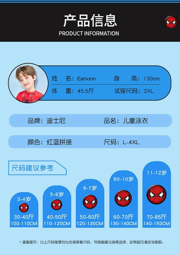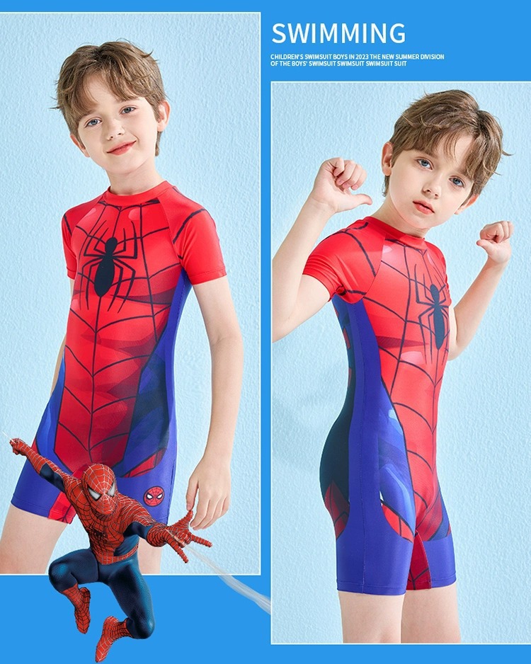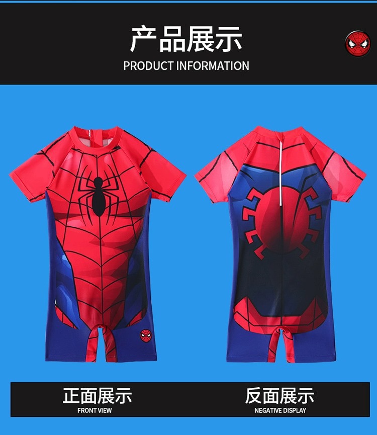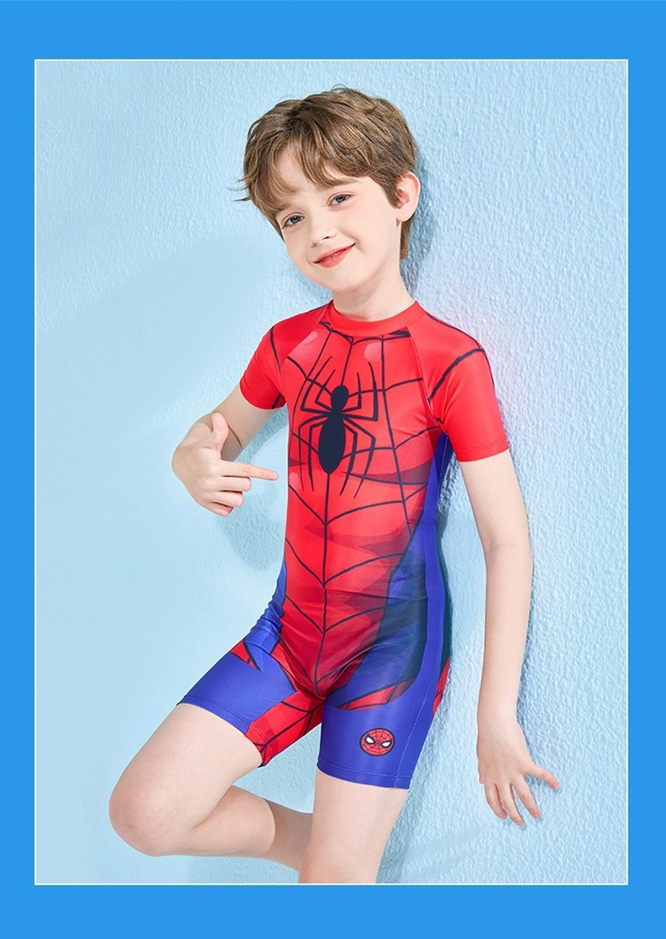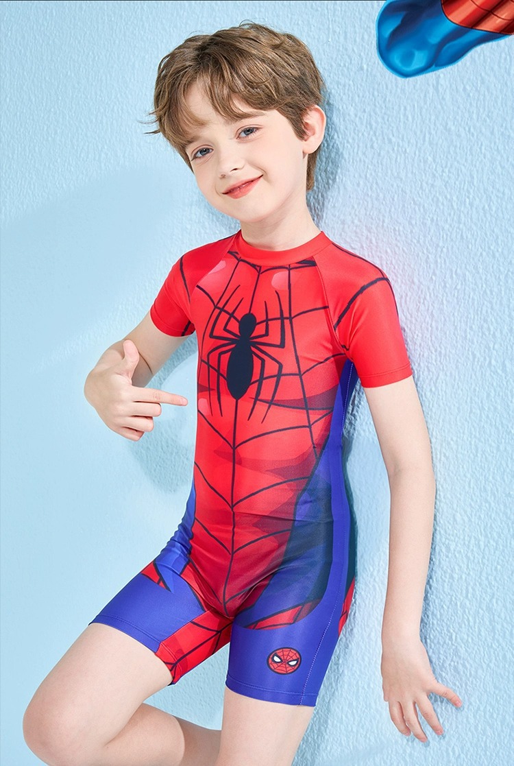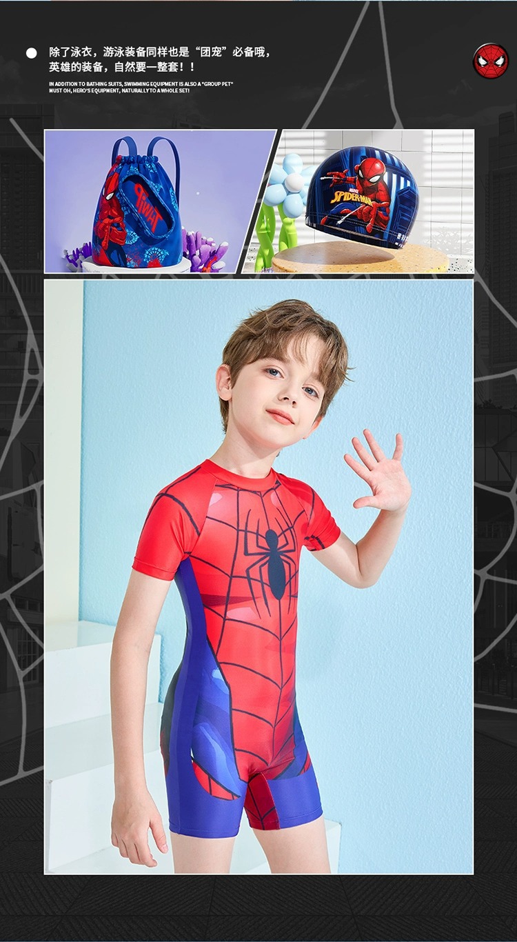 儿童泳衣男孩夏新款迪士尼系列蜘蛛侠连体游泳衣中大童游泳衣批发