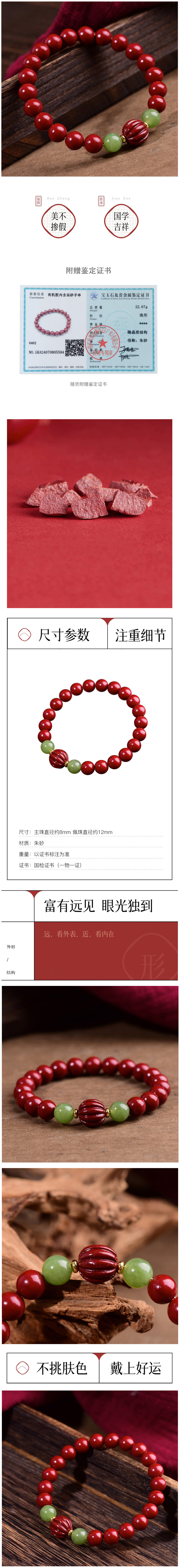 【经典】天然和田玉紫金砂国潮文玩手串8mm 经典百搭款朱砂手串天然正品手链带证书