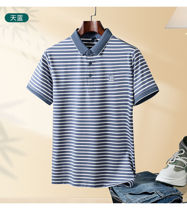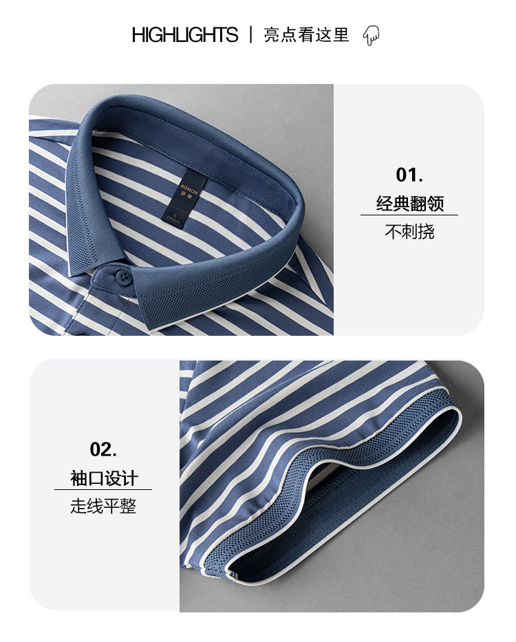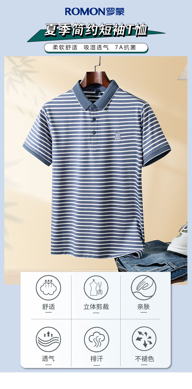 【含桑蚕丝】罗蒙男士夏季休闲商务男士Polo衫短袖男时尚polo衫短袖男
