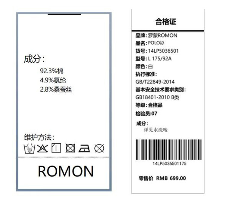 面料:92.3%棉 4.9%氨纶 2.8%桑蚕丝