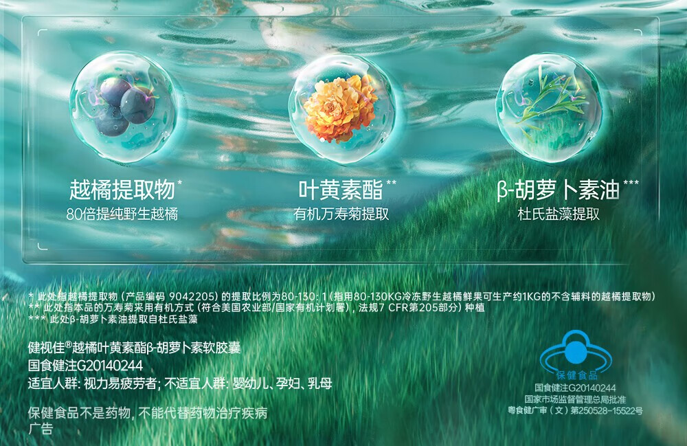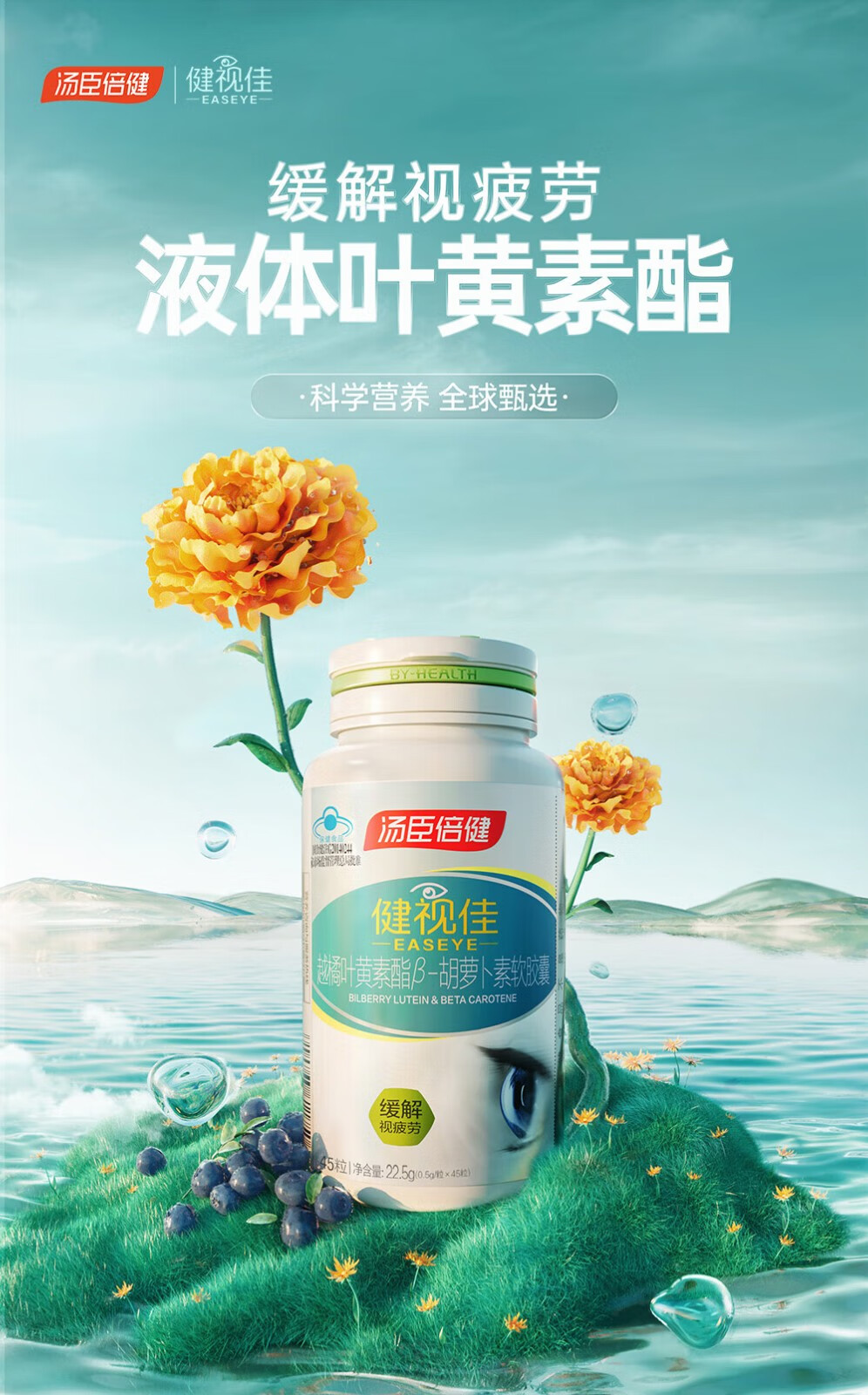 汤臣倍健 健视佳越橘叶黄素酯β-胡萝卜素软胶囊缓解视疲劳维生素 45粒*2(90粒礼盒装)