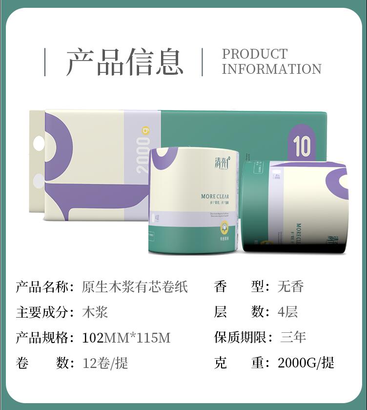 清亮一度 有芯卷纸166克/卷 12卷/提
