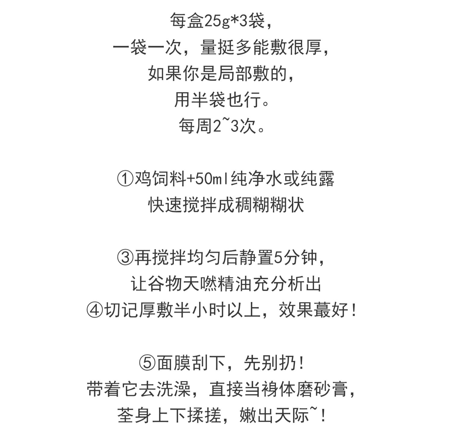 【品名】nuinui油敷谷物鸡饲料谷物面膜单片装