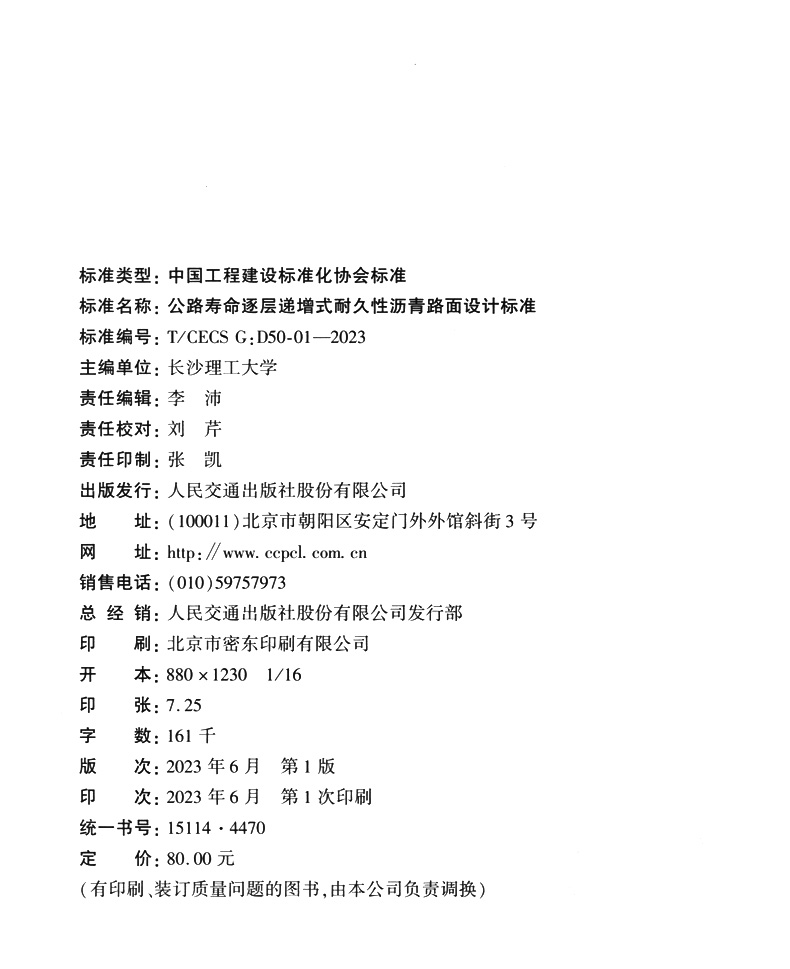 书名:公路寿命逐层递增式耐久性沥青路面设计标准(T/CECS G:D50-01—2023)