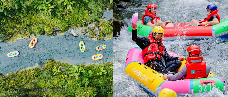 前半段3米落差的“魔幻洞”超爽!后半段平缓区可以打水仗,嗨到爆!两岸全是原始森林,像在绿野仙踪里划船~