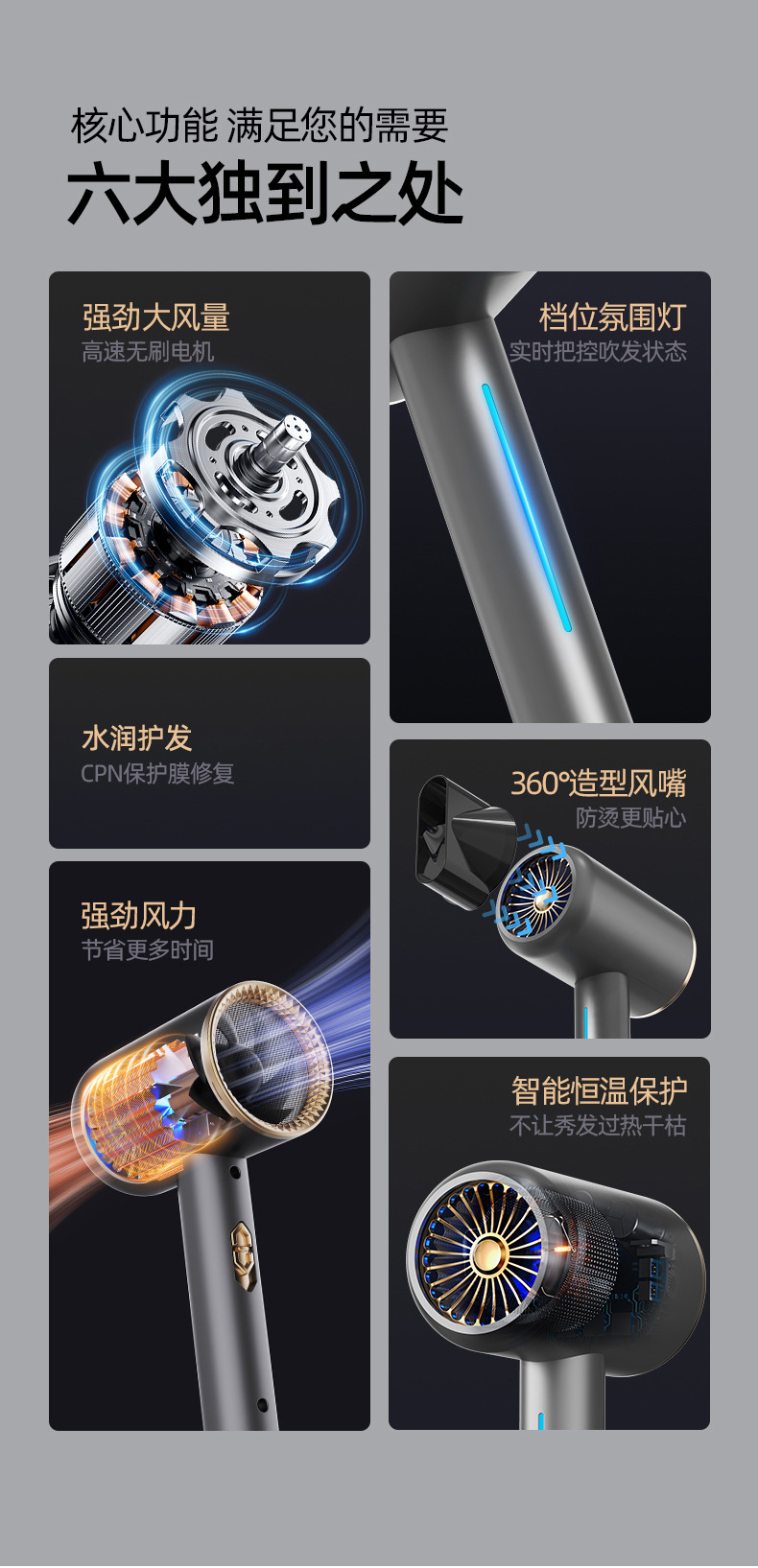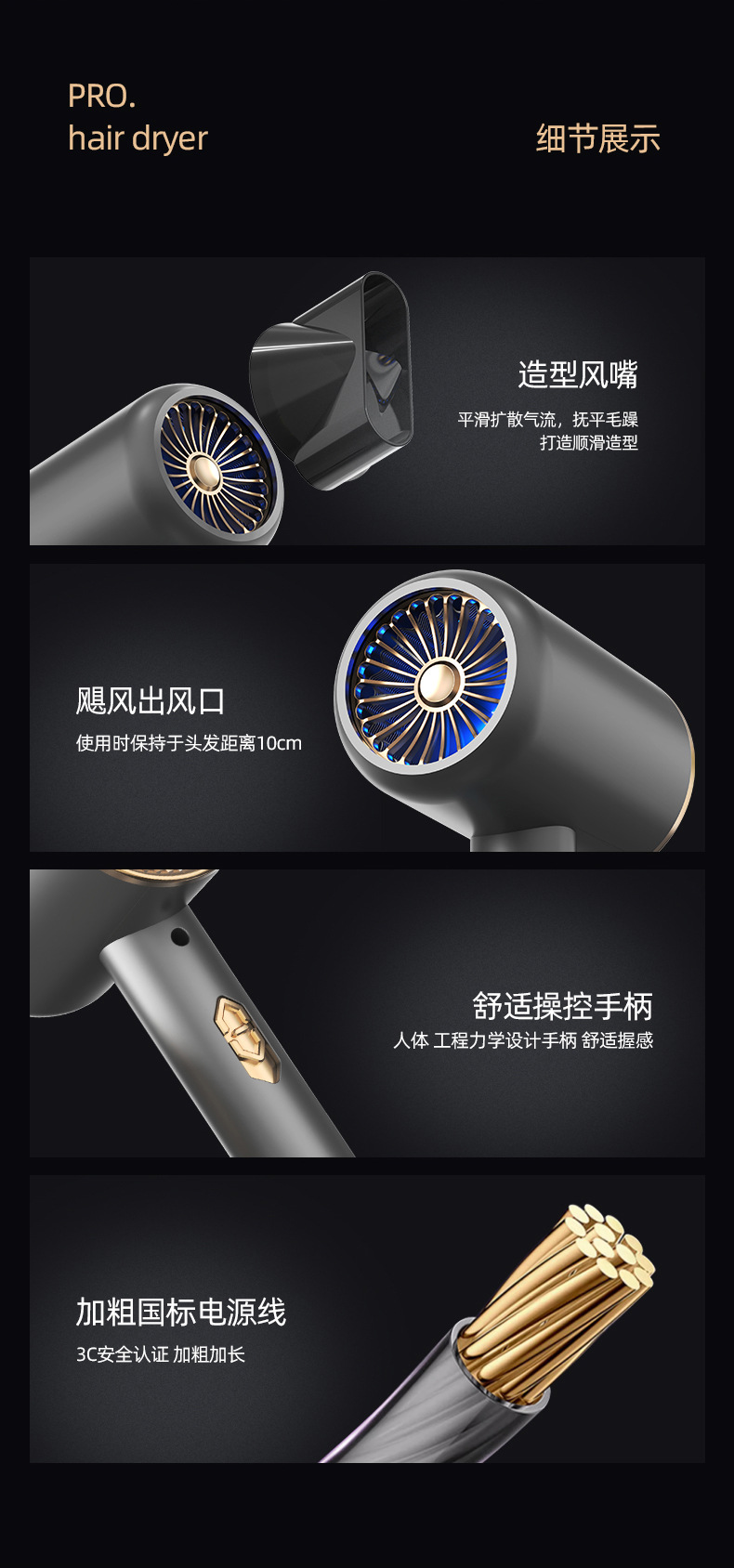 新款TOP高速吹风机 畅享恒温速干的温柔呵护 大功率带档位灯光氛围灯吹风筒