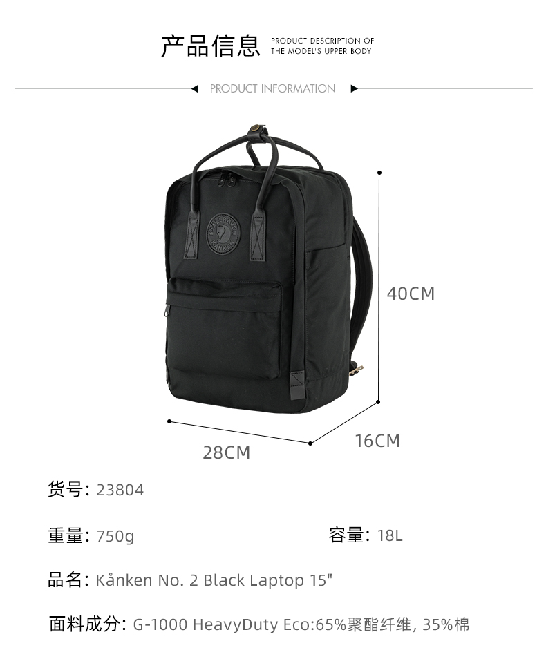 北极狐笔记本电脑包kanken no.2 15寸新升级G-1000双肩背包 23804