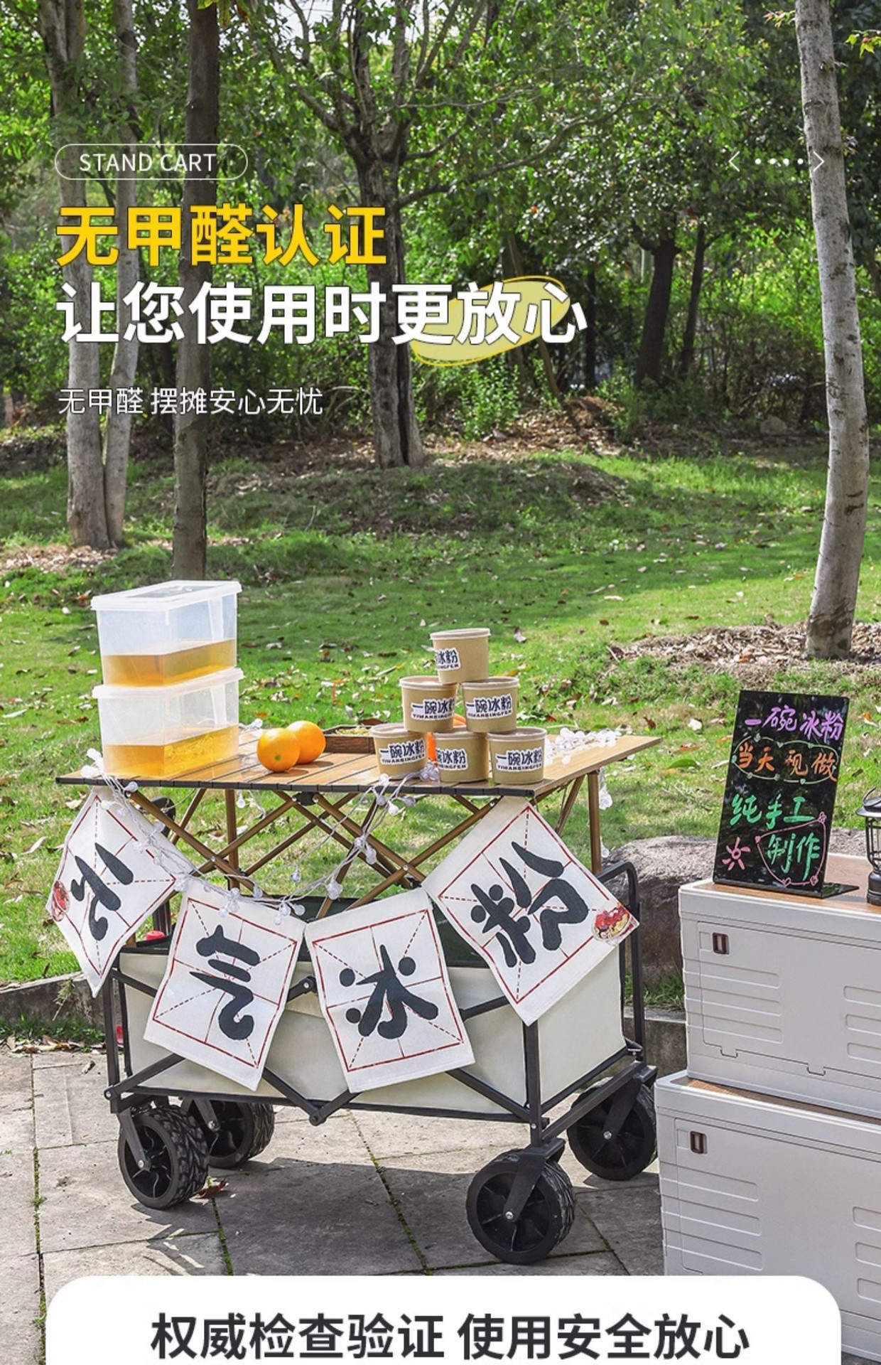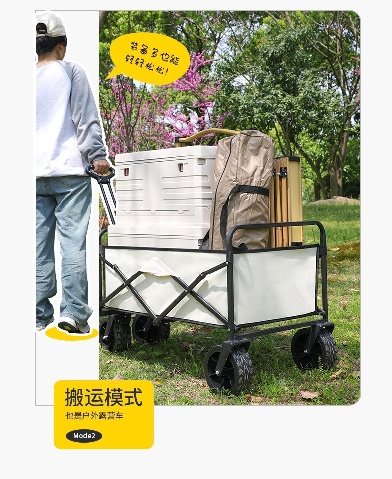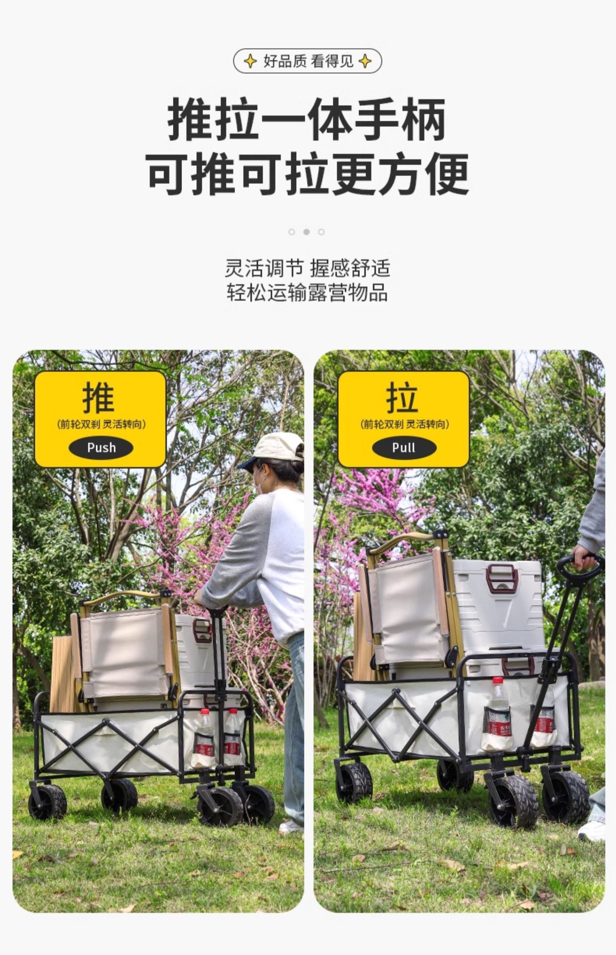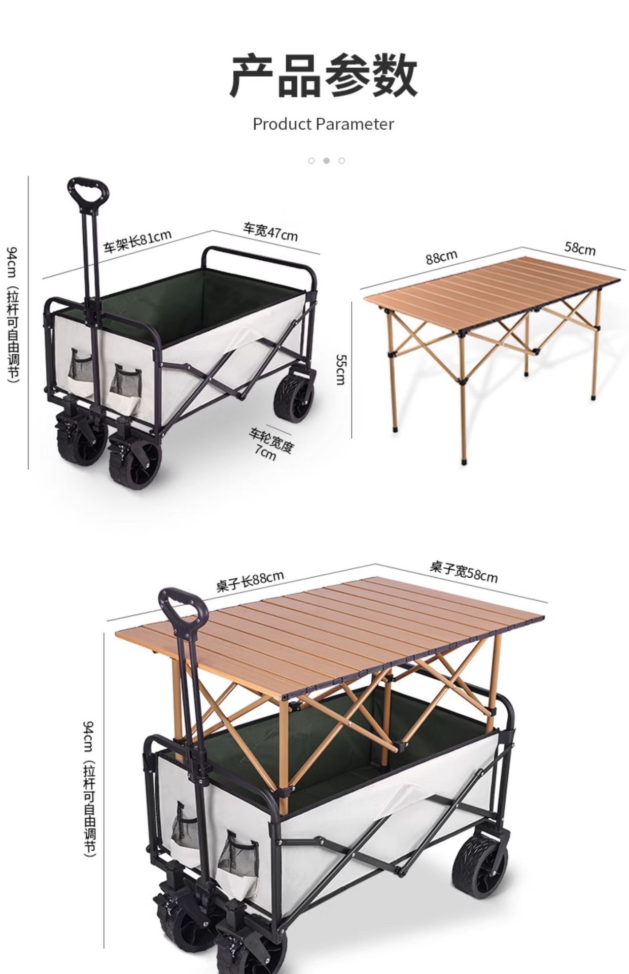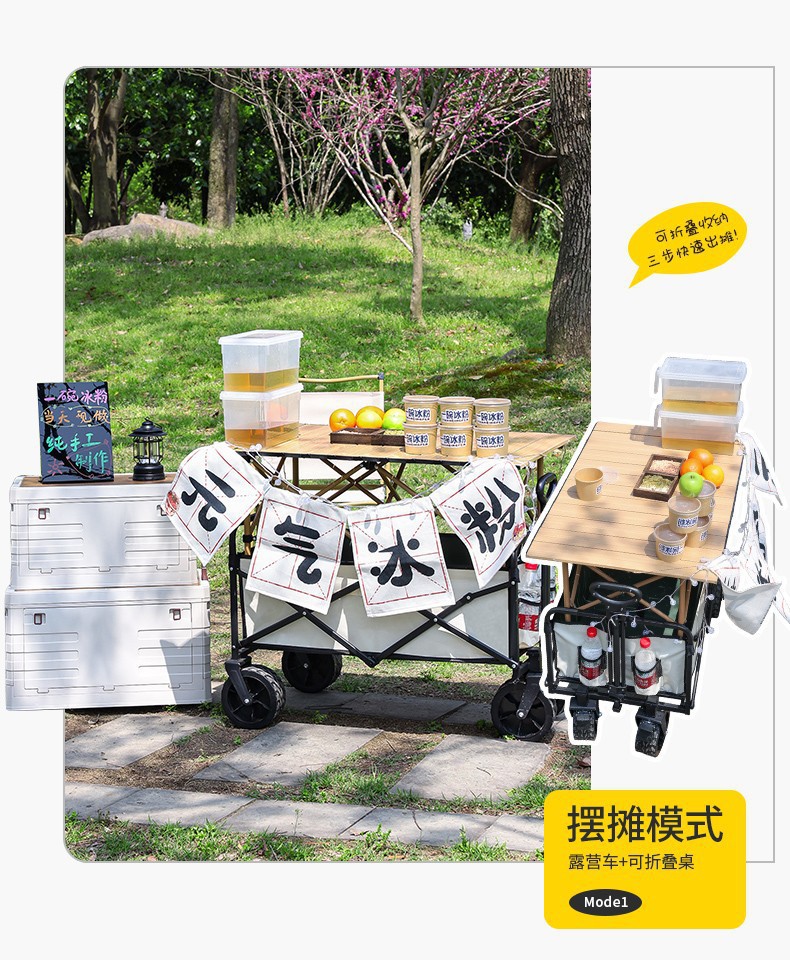 露营车手推带拖斗遮阳伞摆摊地摊小推车户外营地儿童可躺野营折叠