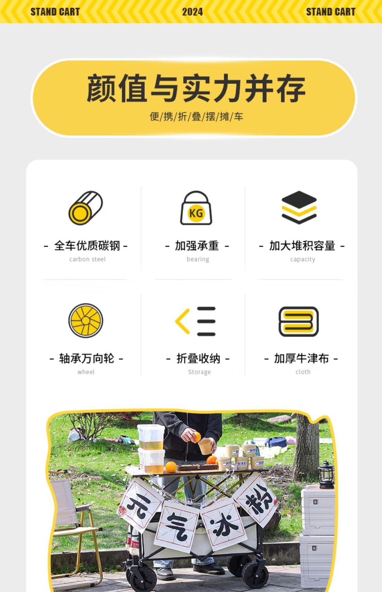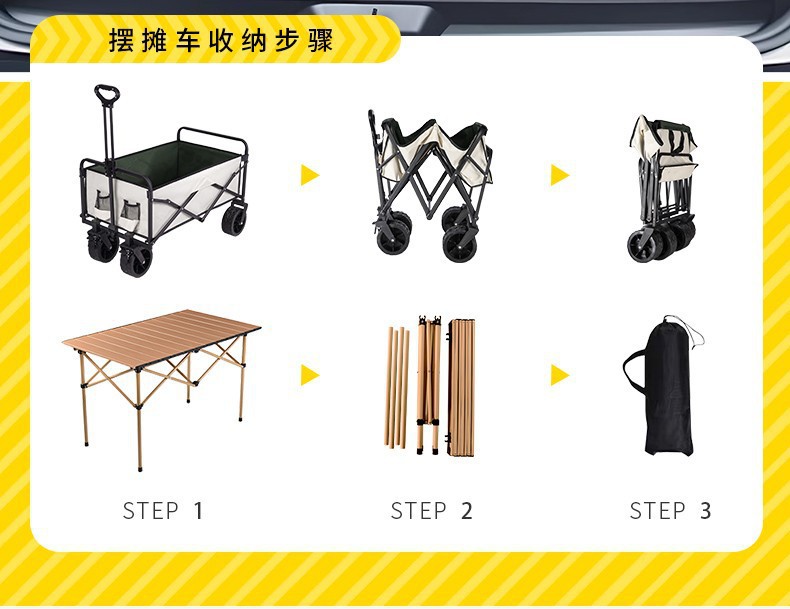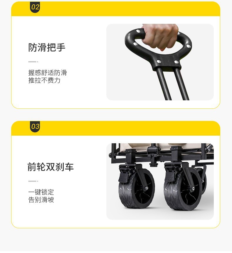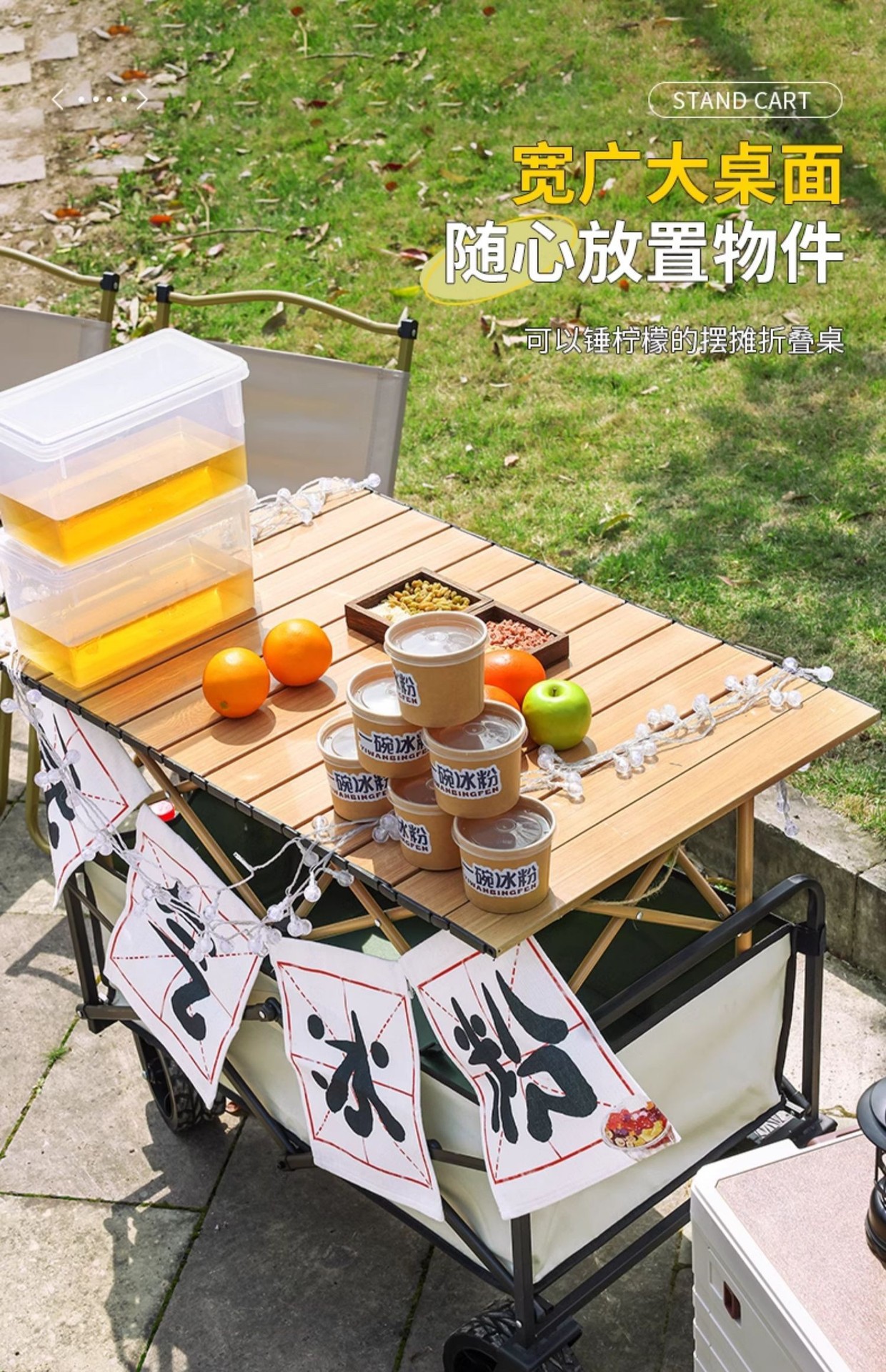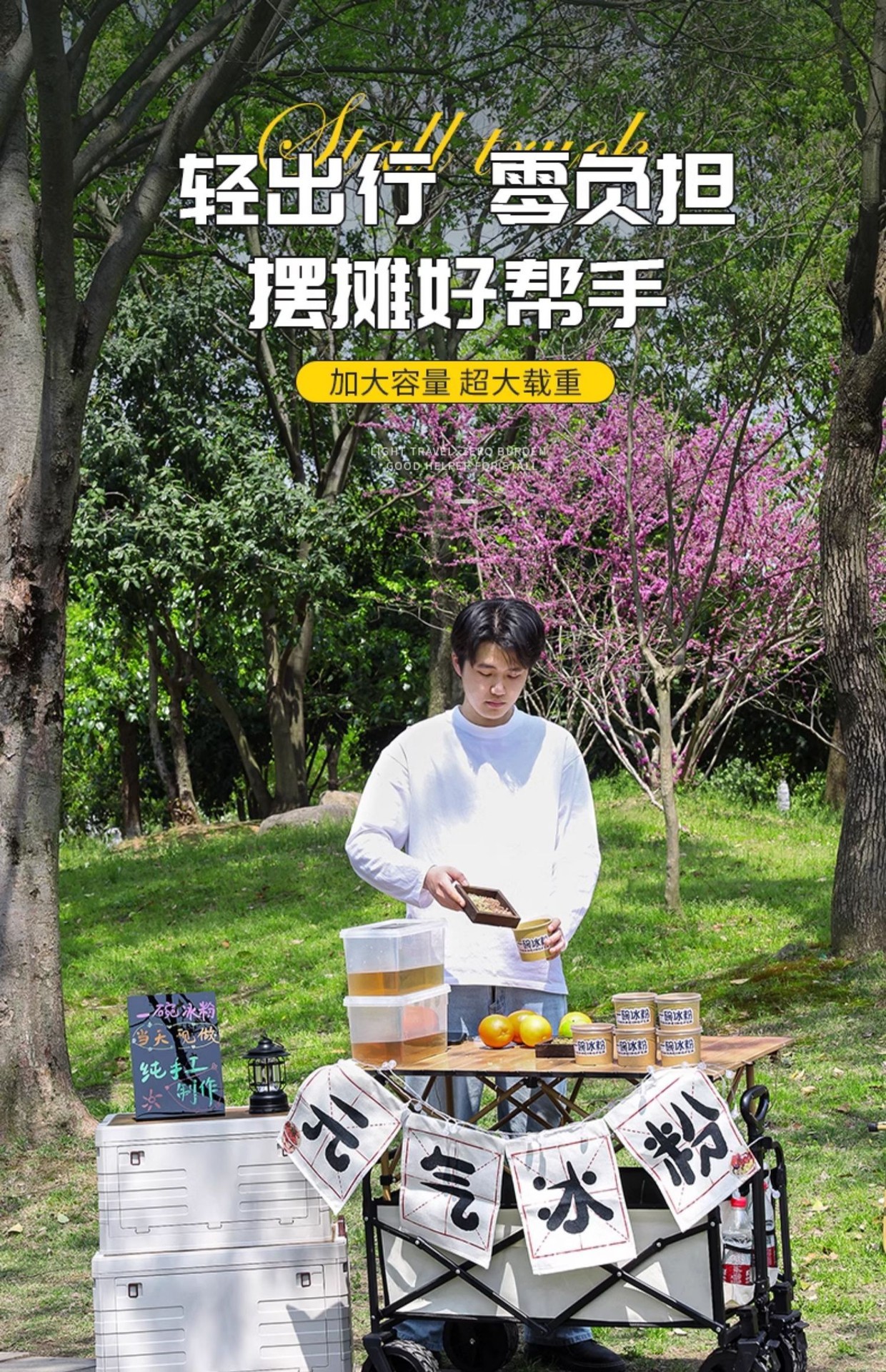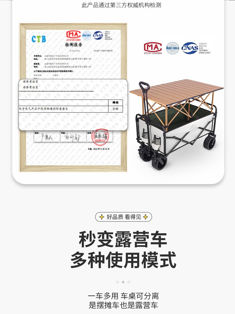 露营车手推带拖斗遮阳伞摆摊地摊小推车户外营地儿童可躺野营折叠