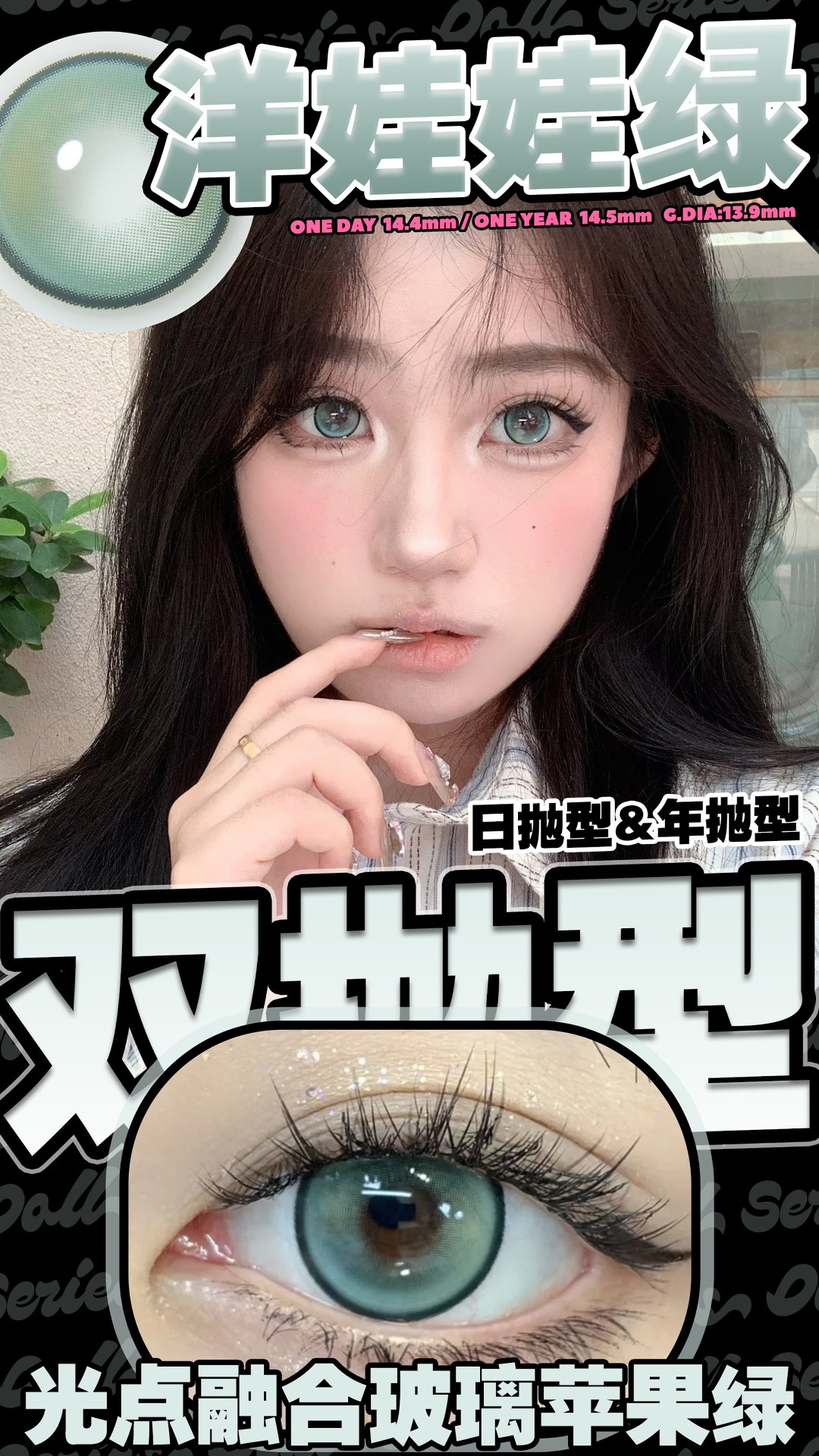 OCEAN GIRL 洋娃娃绿 日抛 十片 14.4mm 参考着色13.9mm 基弧8.6 含水40% 新锐国货