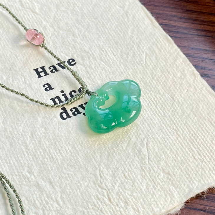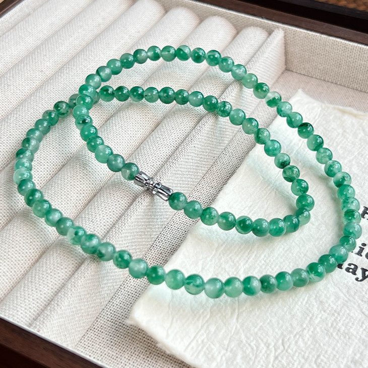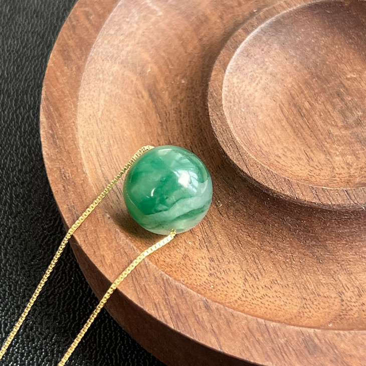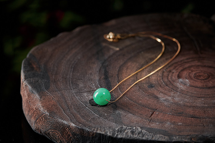 这款路路通吊坠项链,高冰种飘花阳绿或满绿,每一颗珠子都独一无二,色泽鲜艳。