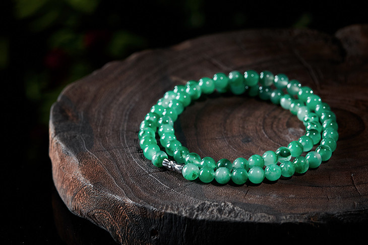 越大珠径的非洲翠手串,越值得你细细观赏与盘玩,每一颗珠子都有独特的纹理和色泽,像一幅天然画卷,每次你指尖拨动就能转换的风景。